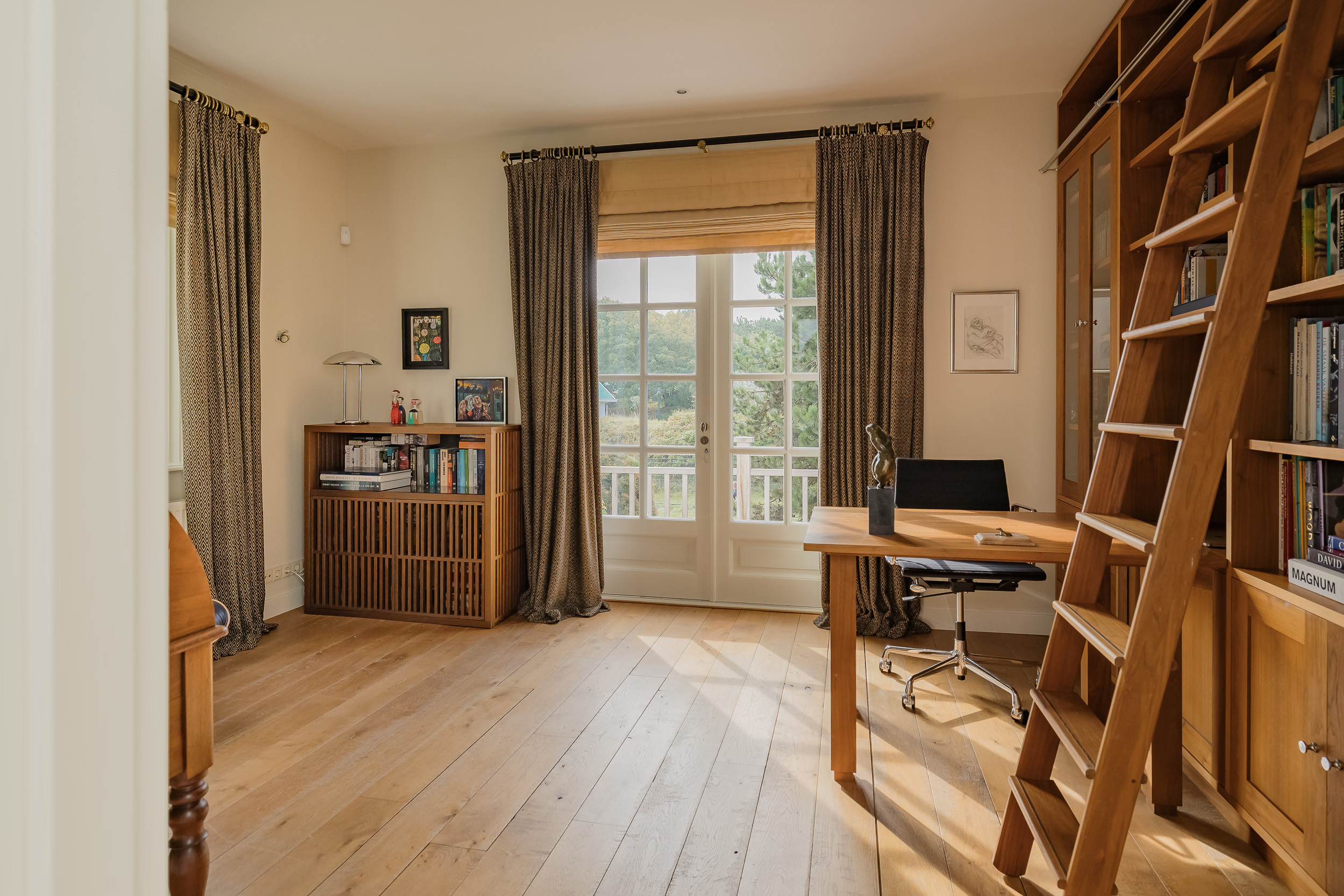 • Ruime study met maatwerk boekenkasten