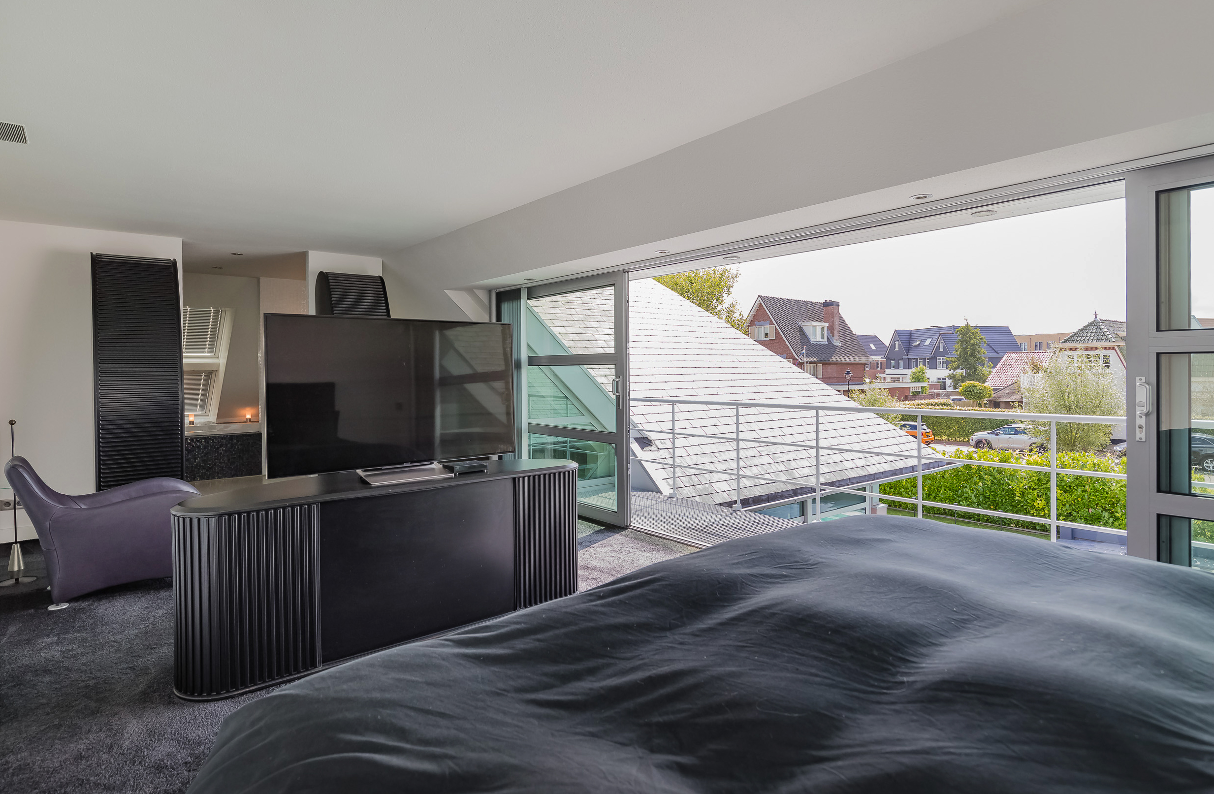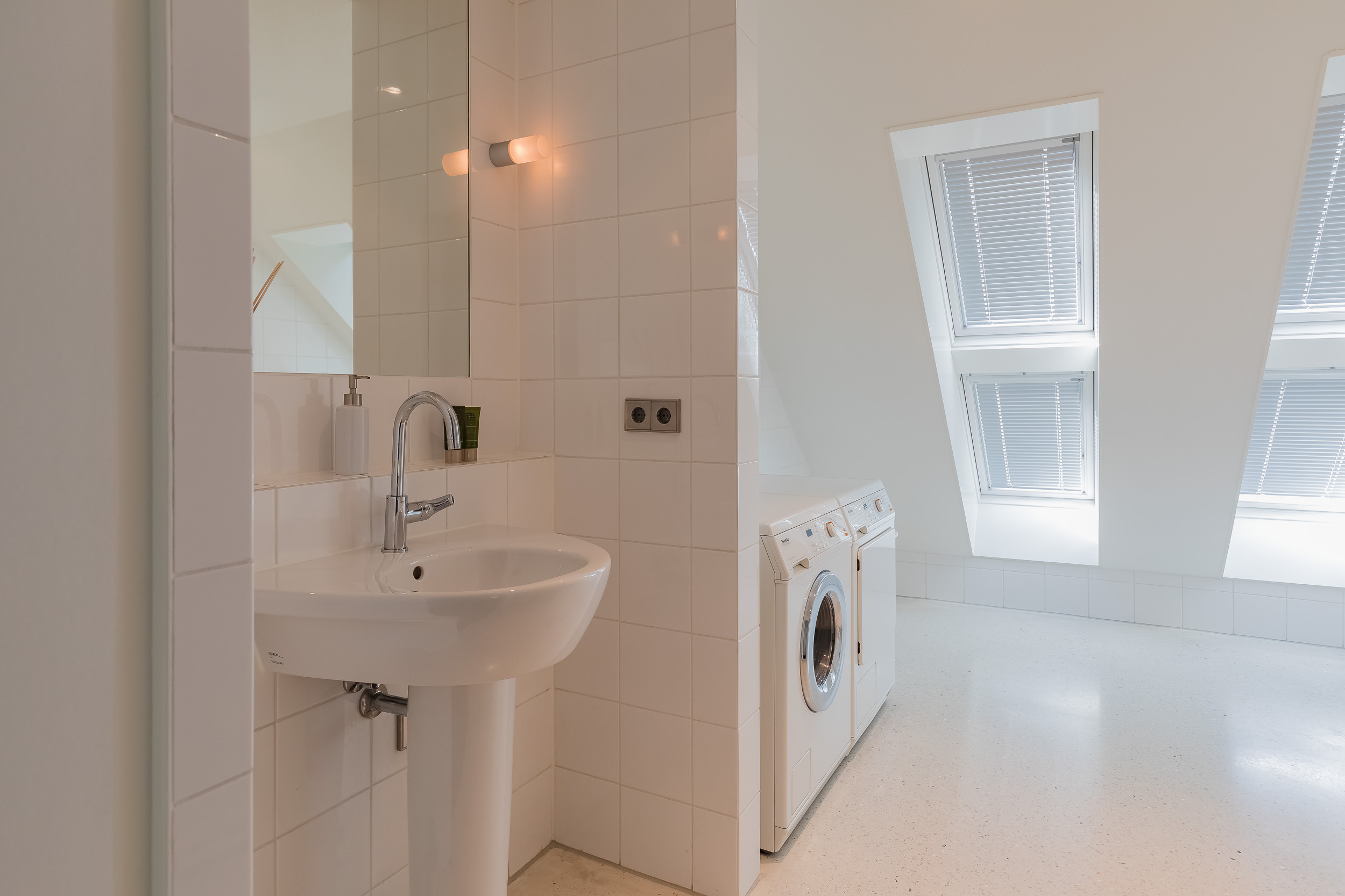 Op deze etage zijn 3 slaapkamers, 2 badkamers en een grote bergruimte. De zeer royale hoofdslaapkamer heeft een eigen luxe badkamer en een ruime kleedkamer. Het balkon is alleen vanuit deze kamer toegankelijk. 20 Dakramen zorgen voor extra lichtinval en ook hierin is de symmetrie doorgetrokken.