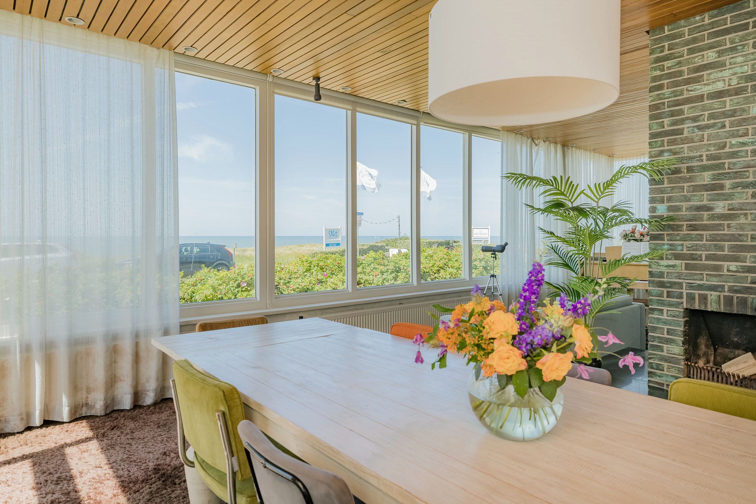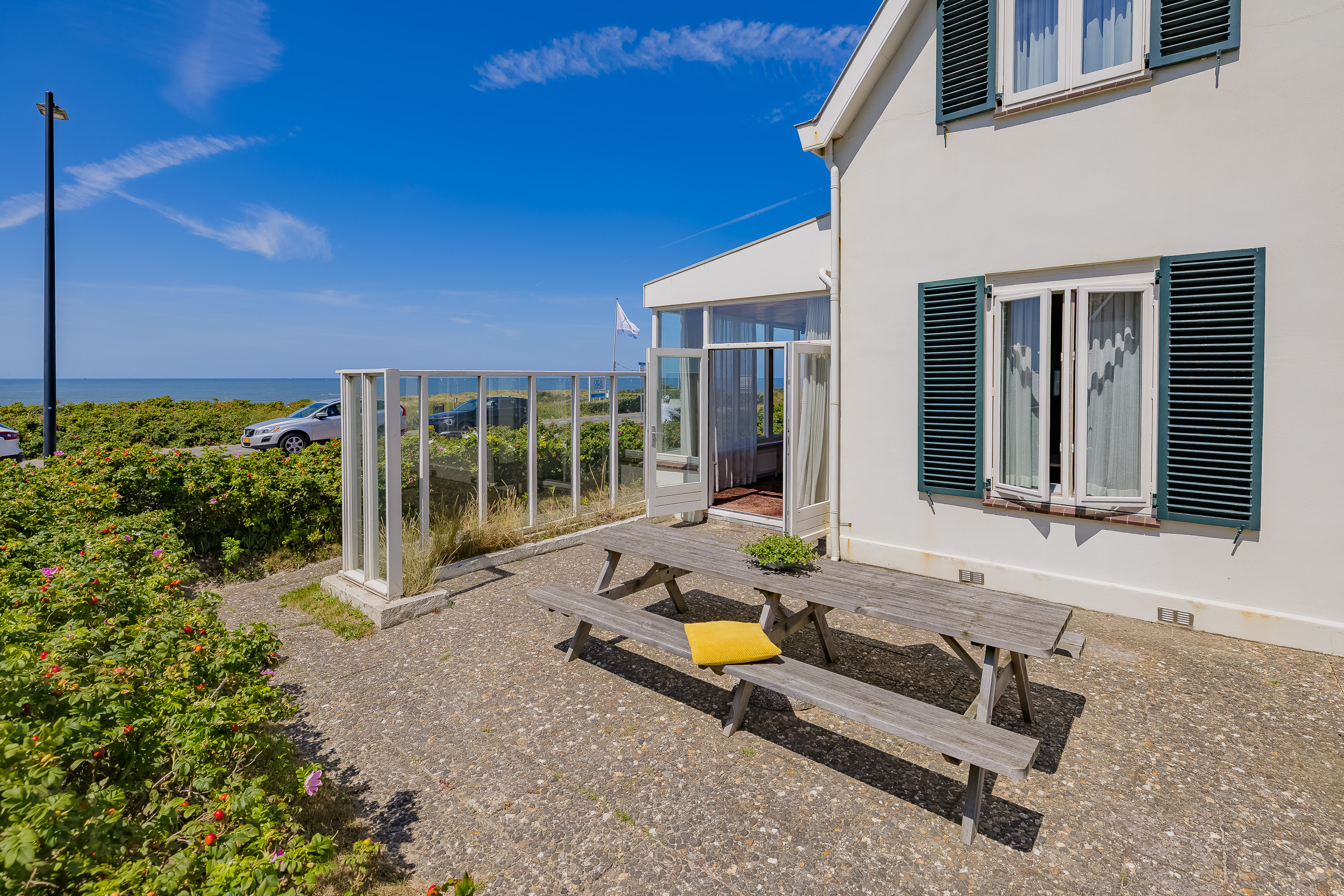 De keuken, voorzien van inbouwapparatuur, is praktisch ingericht met veel kastruimte. Verder vind je op de begane grond een lichte 2e woonkamer met een gashaard, ideaal voor ontspanning of als ruime werkkamer. Daarnaast beschikt de begane grond over een comfortabele slaapkamer met inbouwkast. Het ruime zonnige terras op het zuiden is bereikbaar via de beide woonkamers. De badkamer in de hal is ideaal om na een dagje strand het zand direct van je af te spoelen.