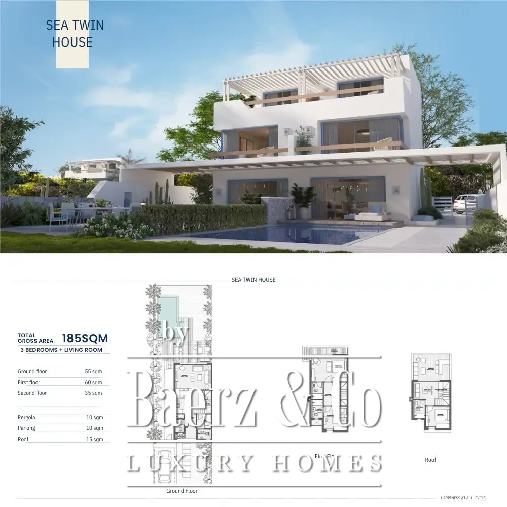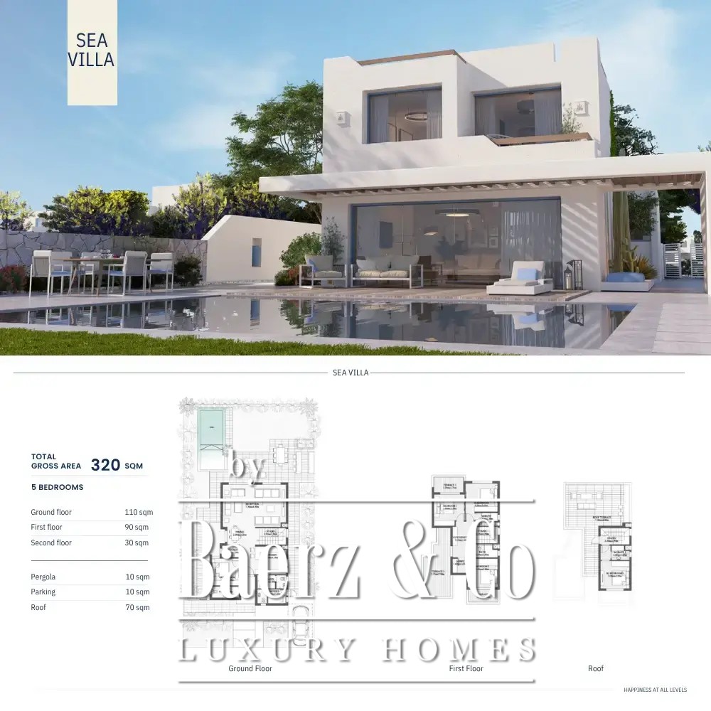 Deze Seaview villa aan de Noordkust van Egypte met privéstrand biedt een uitzonderlijke woonervaring aan zee, getypeerd door een onbelemmerd uitzicht op de Middellandse Zee en een sfeer van rust. De woning beschikt over 1.802 m² aan leefruimte, met drie slaapkamers en drie badkamers, wat zorgt voor een harmonieuze balans tussen ruimte en privacy. De architectuur van de villa verbindt het interieur naadloos met de omgeving, versterkt door een balkon, dakterras en een uitgestrekte tuin.