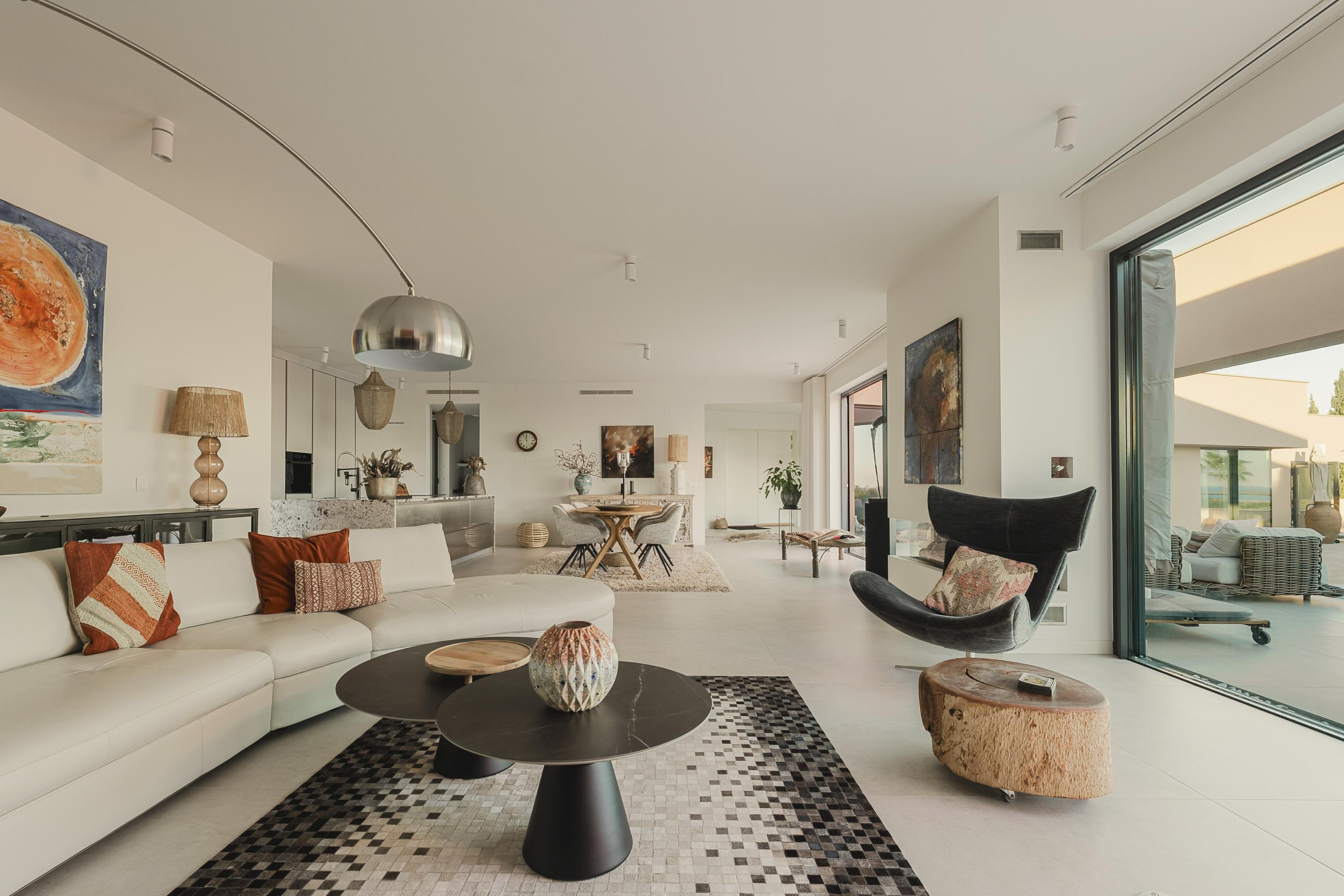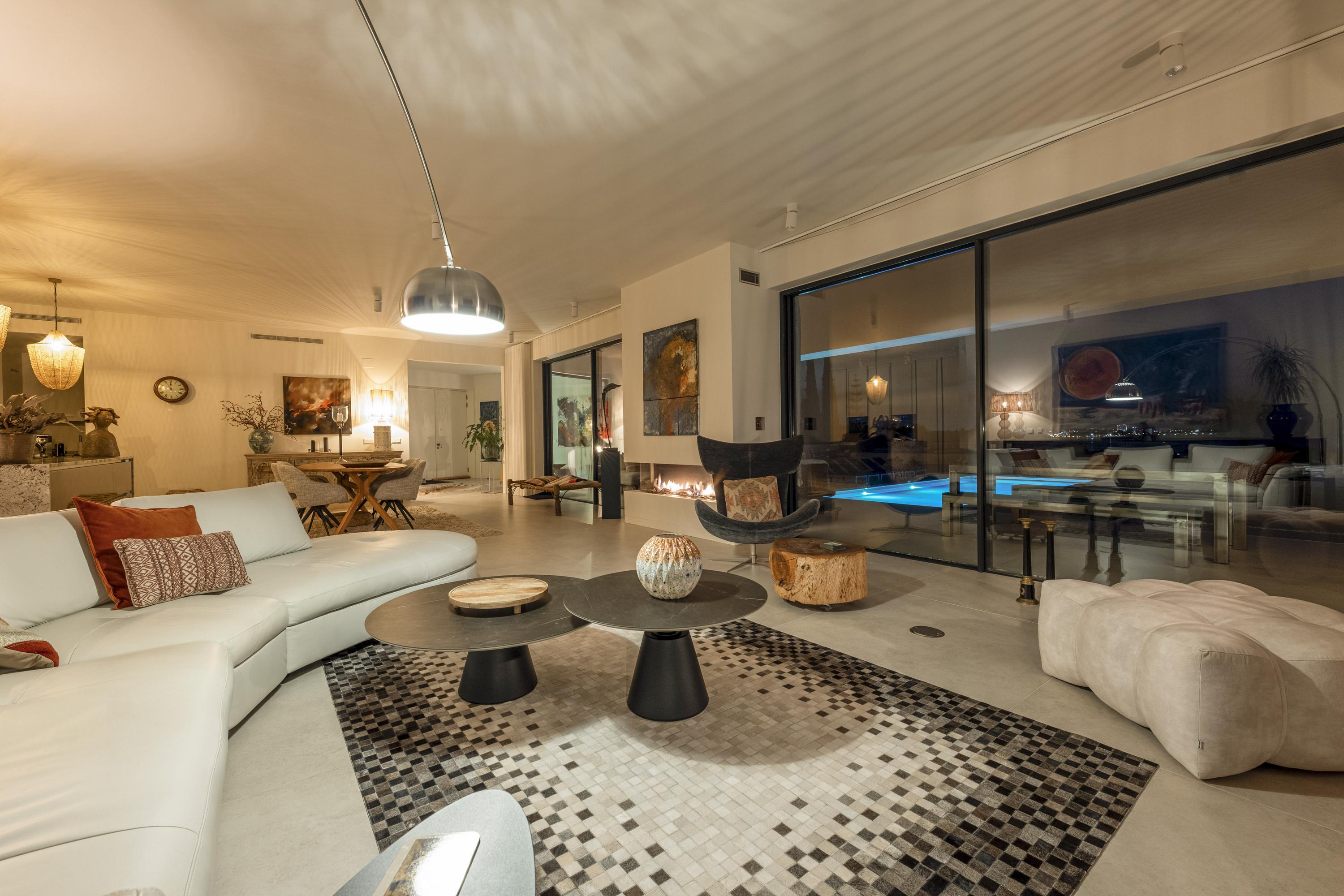 Gelegen op een royaal aangelegd perceel van circa ± 3.000 m², omarmt de villa haar omgeving met ruime terrassen, mediterrane tuinen en 170 m² aan verhoogde rooftop-terrassen die het veranderende licht gedurende de dag vangen. De lichte 384 m² grote begane grond en de veelzijdige 120 m² lower level zorgen voor een moeiteloze flow, geschikt voor zowel stijlvol ontvangen als comfortabel dagelijks wonen.