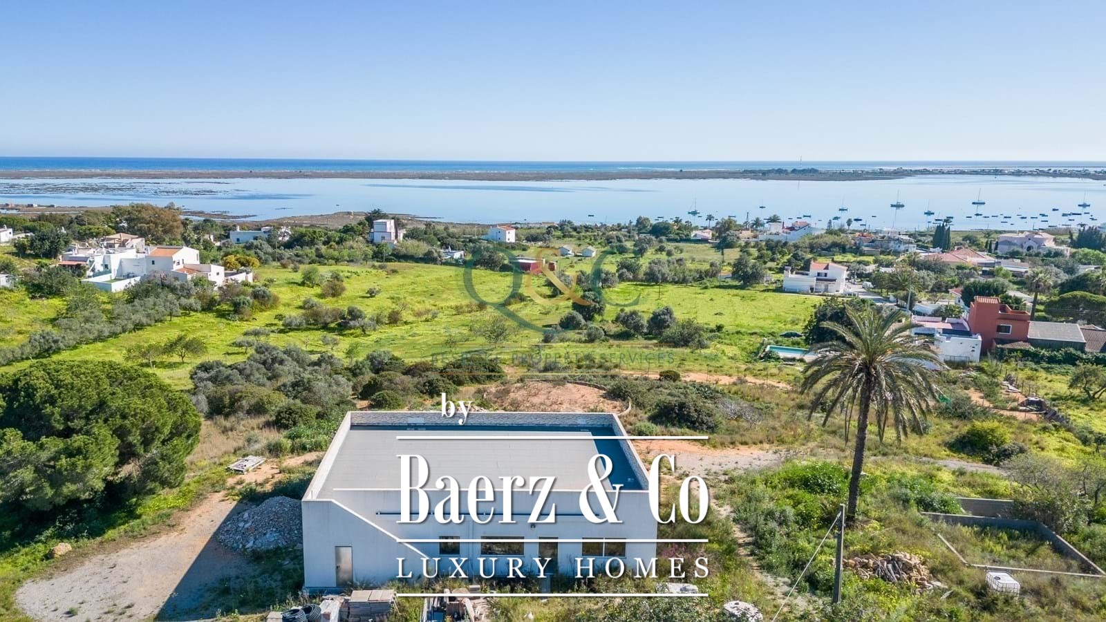 Villa Olhão met panoramisch zeezicht ligt te midden van het natuurpark Ria Formosa, op slechts 700 meter van de kustlijn en op loopafstand van Praia dos Cavacos. Dit landgoed van 1,9 hectare is gelegen op een hoger gelegen perceel in Aldeia Marim en biedt 120 graden onbelemmerd zeezicht, waarbij het dagritme van zonsopkomst tot zonsondergang wordt gevangen. De zuidelijke oriëntatie van het landgoed versterkt zowel het licht als het weidse uitzicht.
