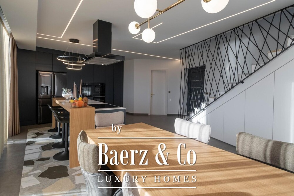 Appartement Opatija definieert op ingetogen wijze het kustleven, op slechts 350 meter van de Adriatische kust. Dit penthouse van 228 m² is verdeeld over twee verdiepingen en maakt deel uit van een kleinschalig gebouw met drie woningen, waarvan elke woning een eigen ingang biedt voor maximale privacy en discretie. Panoramisch zeezicht bepaalt het dagelijks leven op beide niveaus en verbindt het doordacht ontworpen interieur met zijn unieke omgeving.