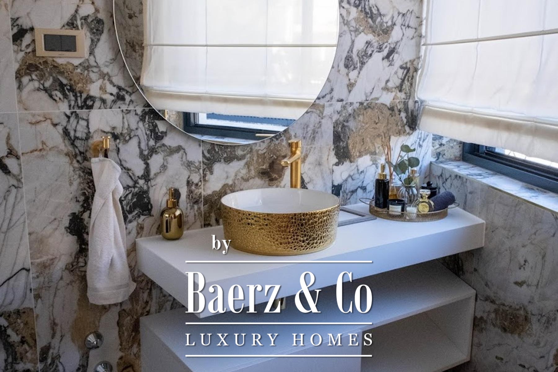 Op de bovenste verdieping vindt u twee extra slaapkamers, elk met een eigen badkamer, waaronder een master suite met een glazen badkamer, inloopkast en privéterras. Dit terras kan dienen als wellnessruimte of fitness, flexibel aanpasbaar aan uw levensstijl. De fraai aangelegde tuin biedt discreet parkeergelegenheid, terwijl het dakterras ruimte biedt voor een toekomstige zwembad of extra terras, wat bijdraagt aan de langetermijnwaarde. Dit appartement in Opatija is een doordachte keuze voor wie zoekt naar authenticiteit, privacy en licht van de Adriatische Zee.