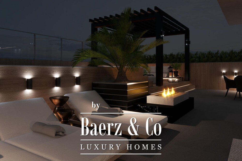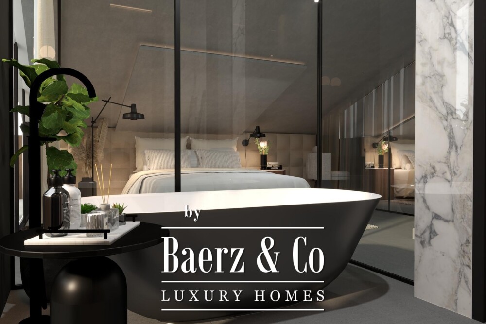 Bij binnenkomst creëren natuurlijke tinten en open volumes een omgeving die comfort en energiezuinigheid uitstraalt. De keuken en eetruimte vloeien over in een uitnodigende woonkamer waar het licht gedurende de dag steeds anders is. Twee terrassen—één overdekt, één open—bieden uitgelezen uitzichtspunten op de rustgevende horizon van de baai, terwijl drie garageplaatsen moeiteloze bereikbaarheid bieden.