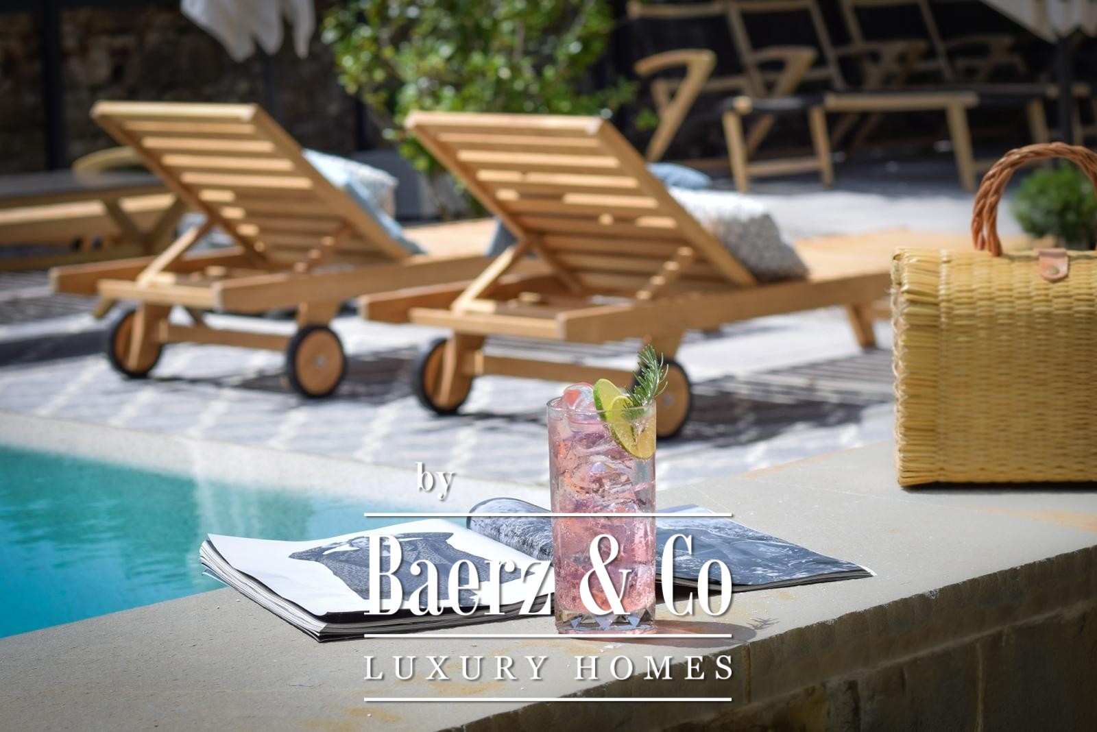 Op de bovenverdieping bieden zes tweepersoonsslaapkamers privé-heiligdommen, bekroond door een Deluxe suite met uitzicht op het glooiende landschap. Elke suite combineert authentiek vakmanschap met moderne voorzieningen als vloerverwarming op warmtepomp, airconditioning en volledige multimedia-integratie. Vijf badkamers staan borg voor verfijnd comfort.