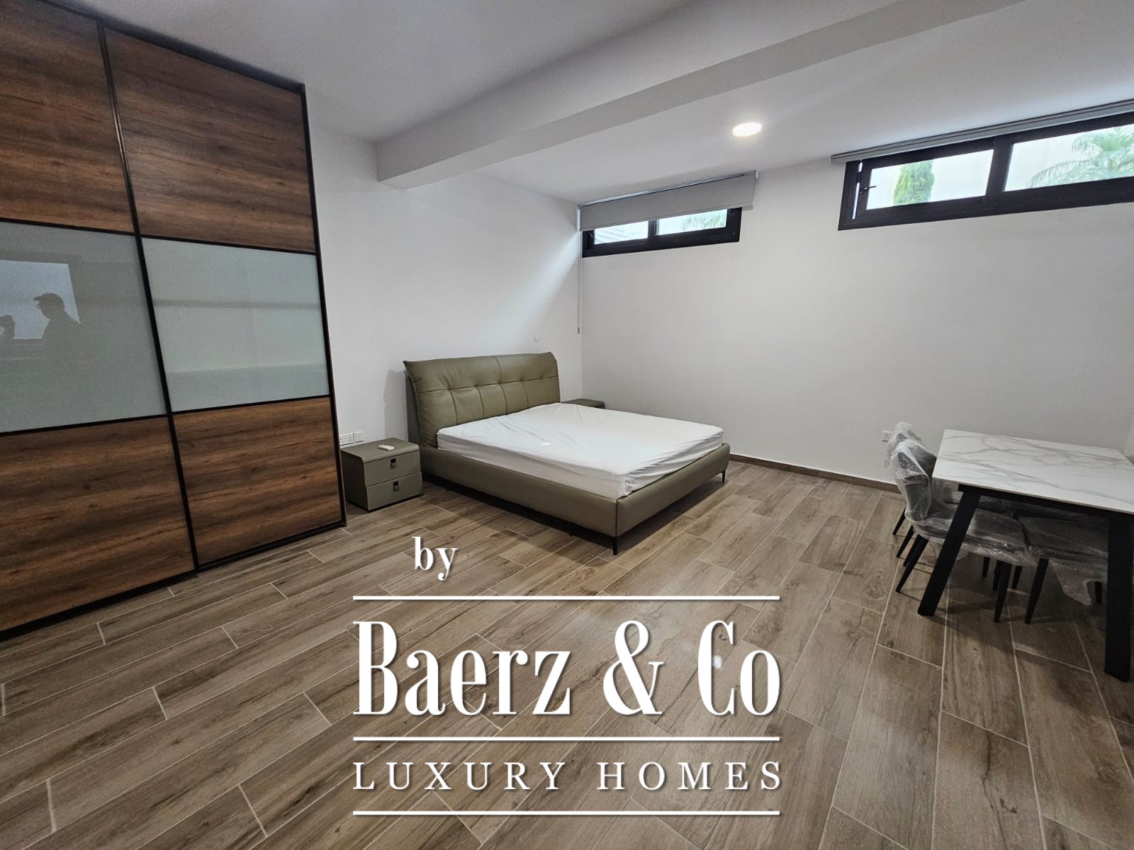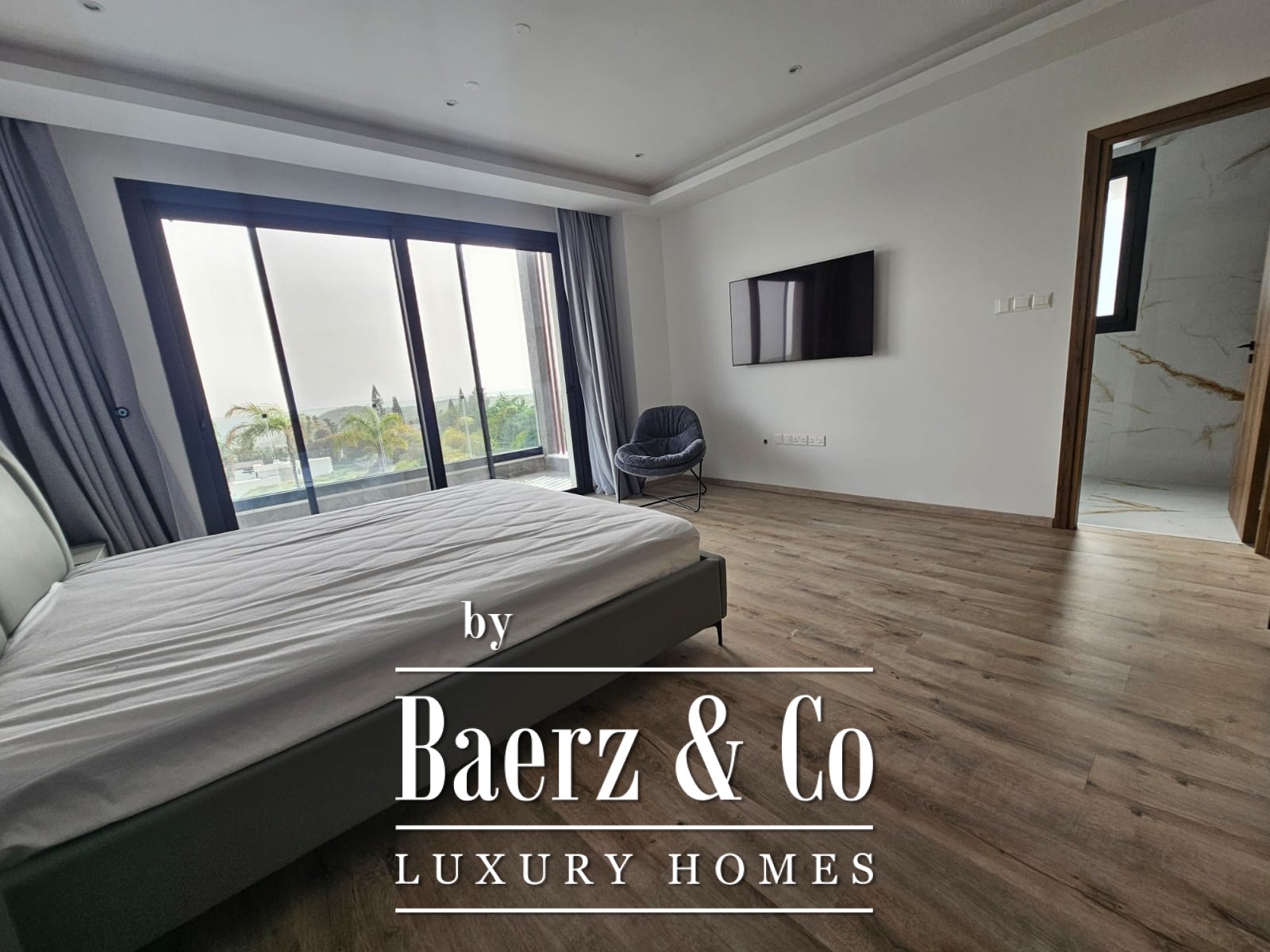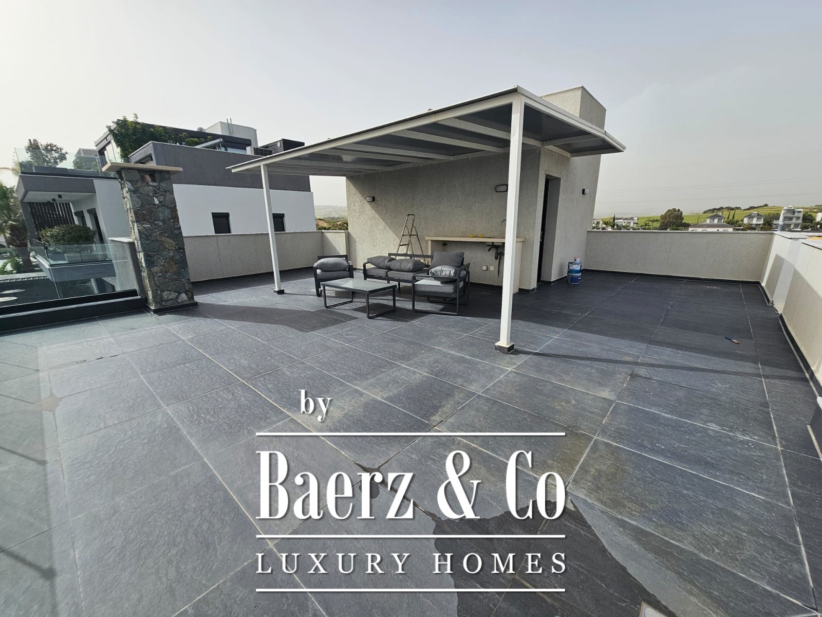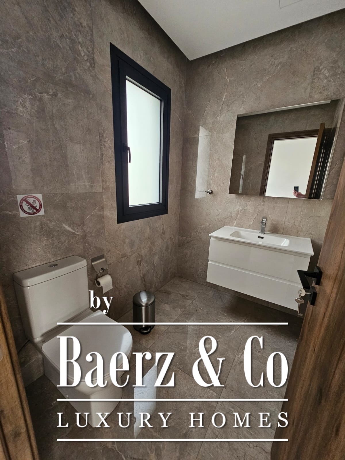 Gebouwd op een fraai aangelegd perceel van 888 m² biedt de villa bewoners de mogelijkheid om in alle rust te genieten langs het privézwembad, samen te komen in de zonnige BBQ-ruimte of te ontspannen in de bijzondere leefruimten. De indeling omvat vier slaapkamers, drie badkamers en twee aparte gastentoiletten, met een extra servicekamer voor extra gemak. De interieurs zijn afgewerkt tot in detail, met grootformaat tegels, aluminium ramen met dubbel glas voor thermische en akoestische isolatie, en een volledig geïntegreerde vloerverwarming en airconditioning.