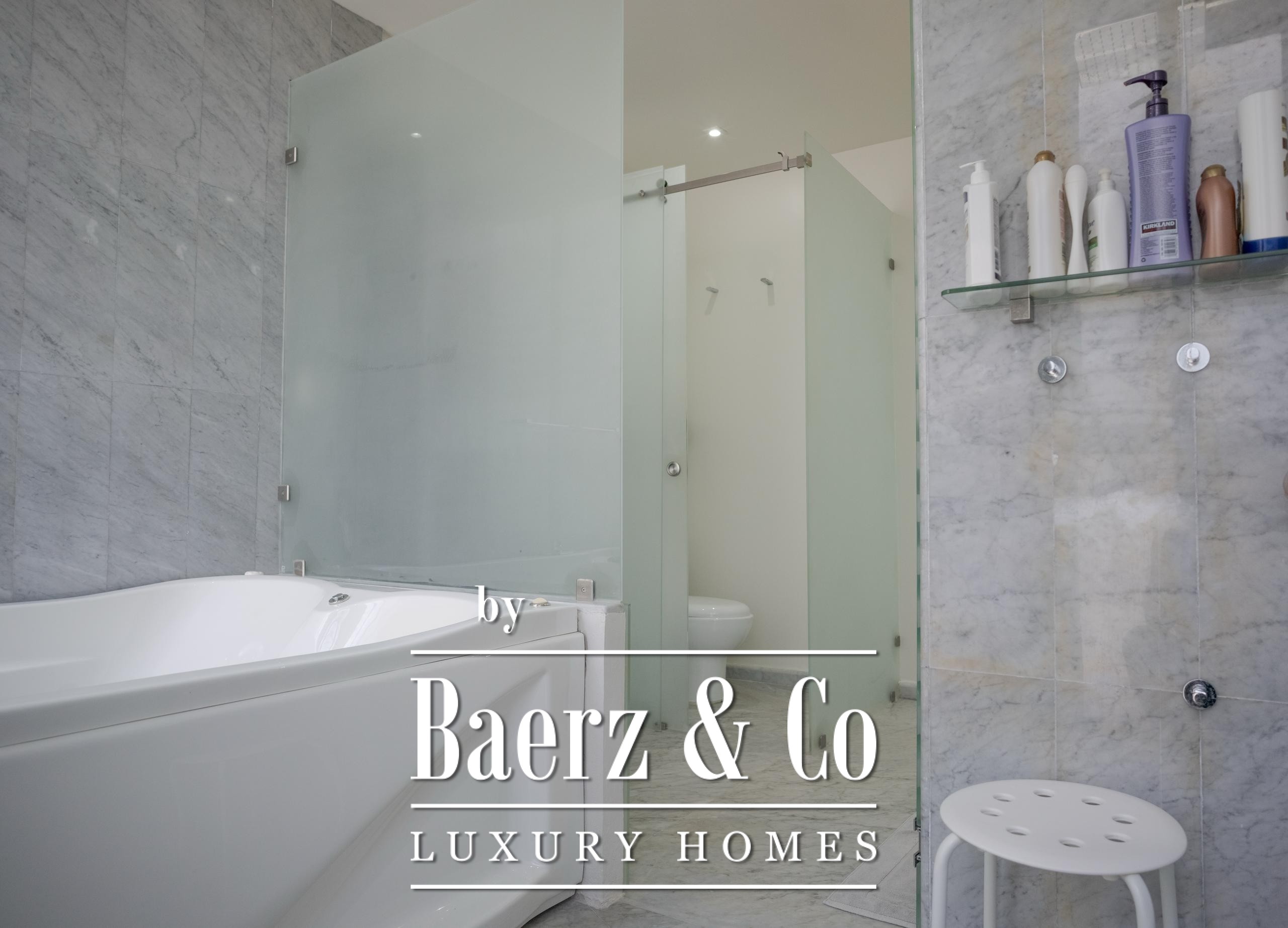 La recámara principal es un verdadero oasis: amplio walk-in closet, baño con doble lavamanos, ducha y un elegante jacuzzi para dos personas. Además, encontrarás dos recámaras adicionales, cada una con baño privado, clósets y ventanas panorámicas que llenan los espacios de luz natural.