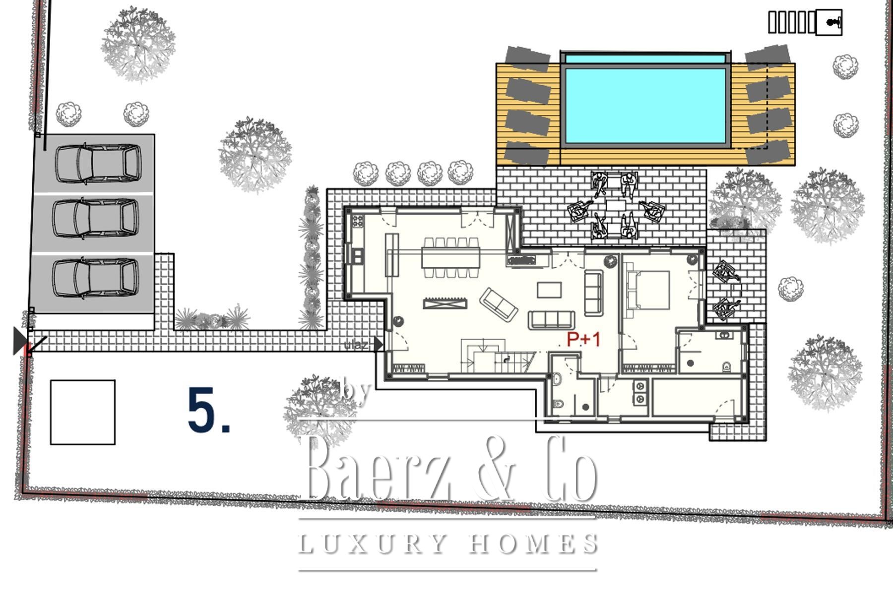Villa Poreč in mediterrane stijl bevindt zich net achter de historische kustlijn van Istrië en combineert heldere architectuur met de warmte van het zuiden. De villa beschikt over 203 m² woonoppervlak en een fraai aangelegde kavel van 1.013 m², waar balans tussen licht, privacy en het buitenleven centraal staat.