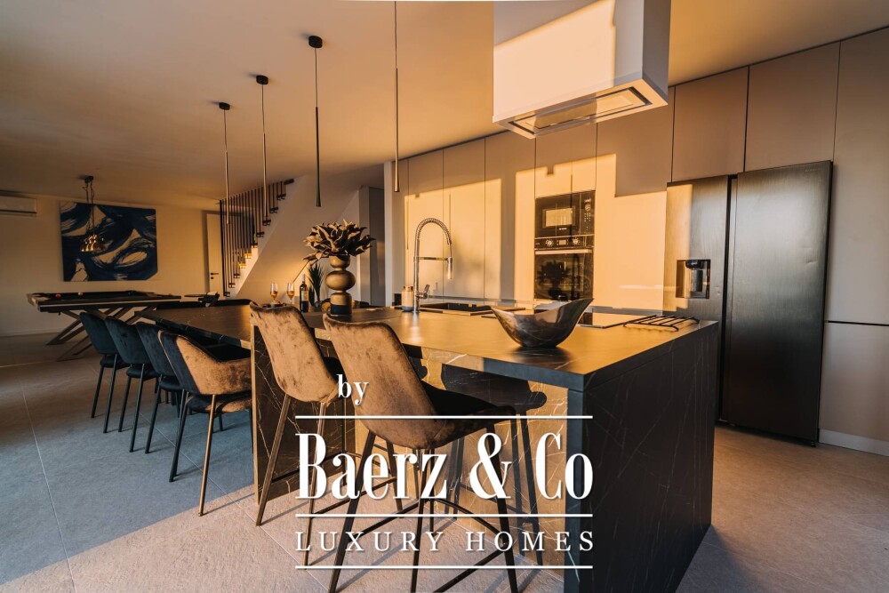 De villa is in 2023 gebouwd met hoogwaardige materialen en uitgerust met zonnepanelen, geavanceerde apparatuur en smaakvol meubilair. Tot de wellnessvoorzieningen behoren een verwarmd zwembad van 60 m² met hydromassage, een royale jacuzzi op het zonneterras en een interne sauna. Het balkon op de verdieping biedt uitzicht op rustgevende vergezichten, terwijl de buitenruimtes uitnodigen tot ontspanning – op het zonneterras of in de overdekte lounge. Elk element is samengesteld voor een rustige levensstijl, met privacy en veel daglicht als basis.