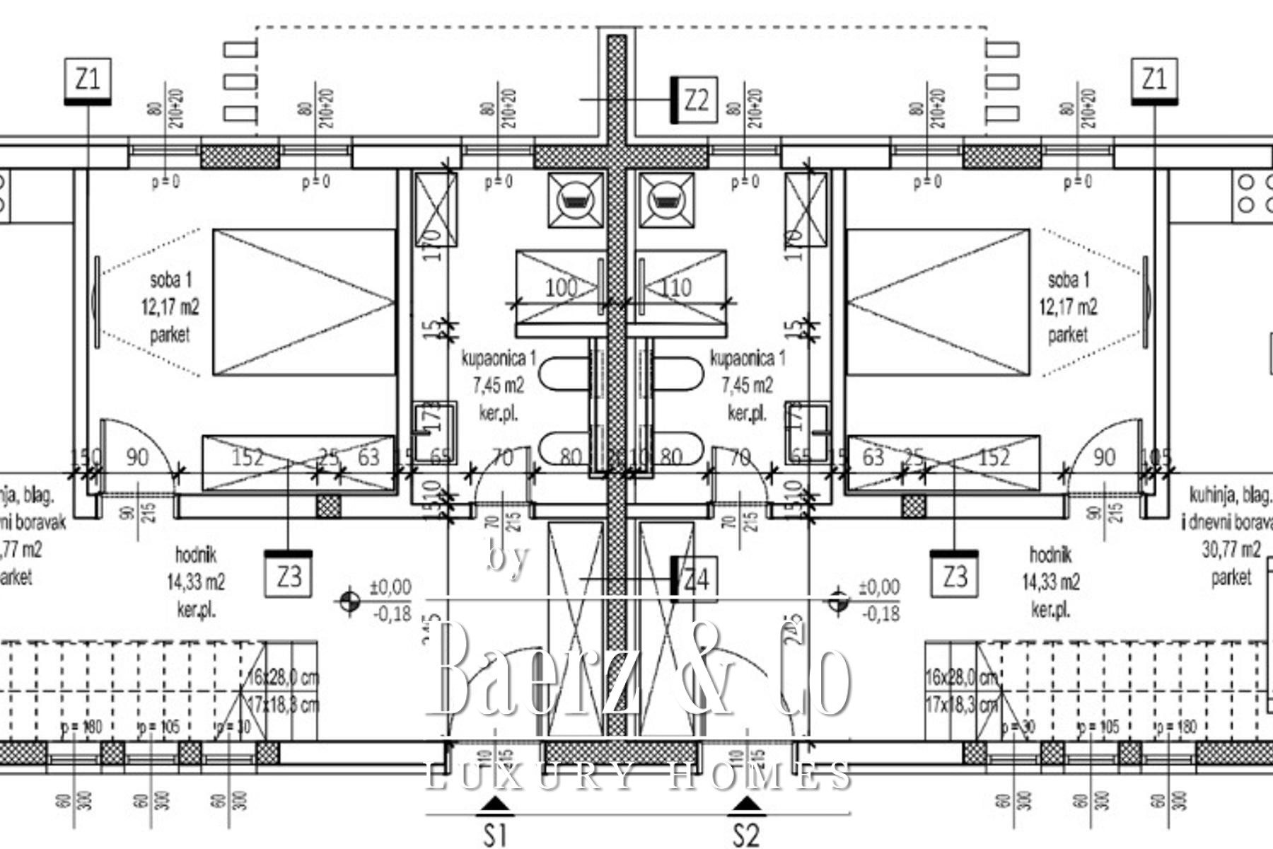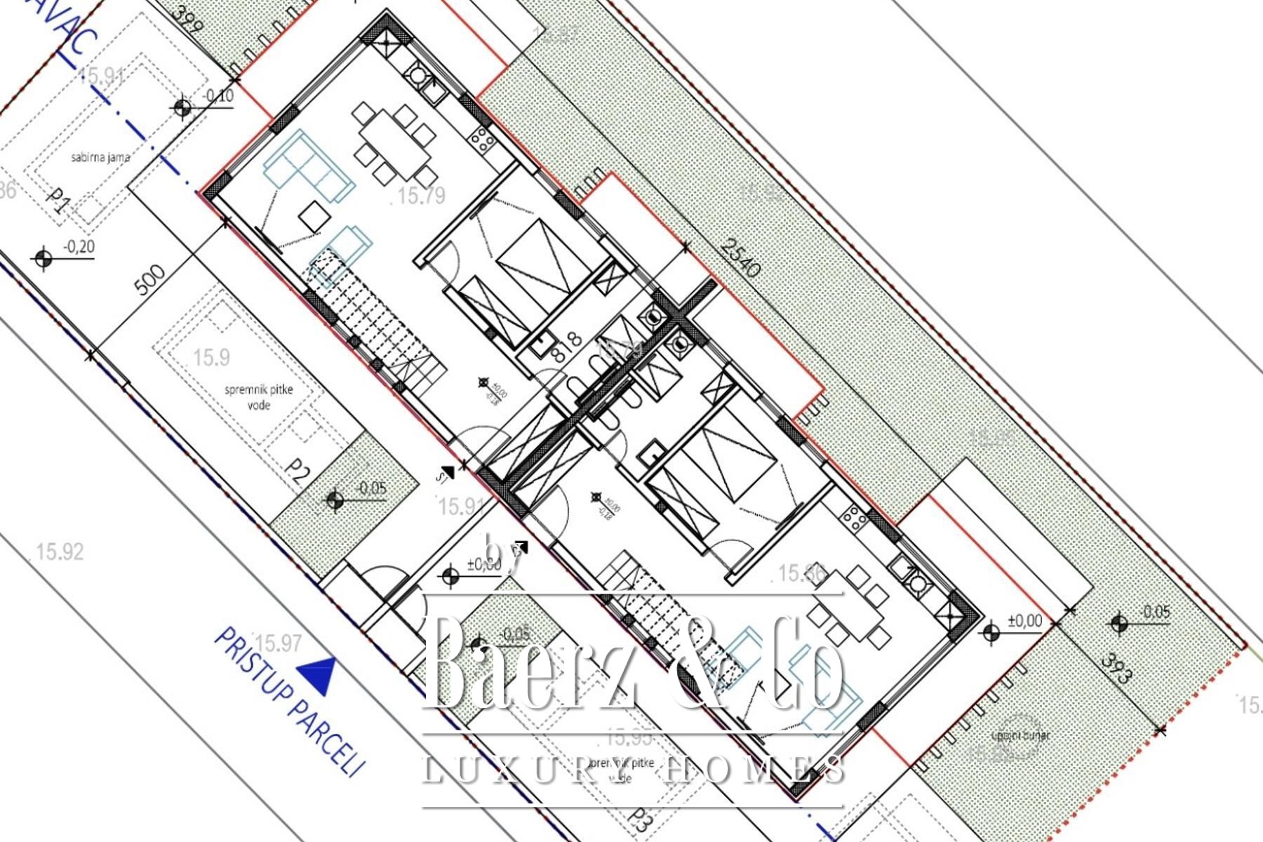Gelegen op een perceel van 400 m² in een rustige woonwijk in Kroatië is deze nieuwbouw gepland voor oplevering in het voorjaar van 2026 en ideaal voor verfijnd wonen aan de Dalmatische kust.