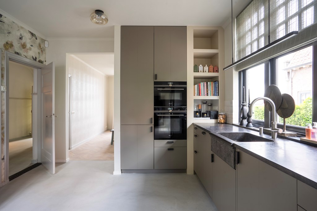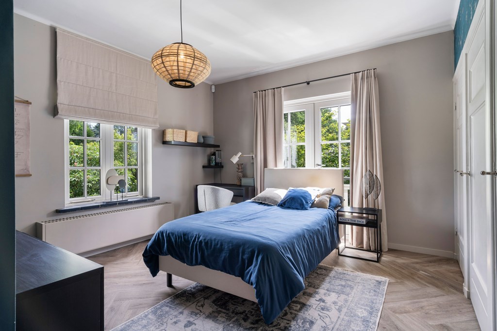 De woonkamer is een ware blikvanger met zijn visgraatvloer en elegante inrichting. Deze riante ruimte is slim ingedeeld en biedt meerdere gezellige zitplekken, waardoor u kunt genieten van de verschillende hoeken en uitzichten in de kamer. De overvloed aan ramen zorgt voor een prachtige lichtinval gedurende de dag, wat bijdraagt aan een lichte en open sfeer. Hier kunt u ontspannen met een goed boek of gasten ontvangen in een stijlvolle setting.
