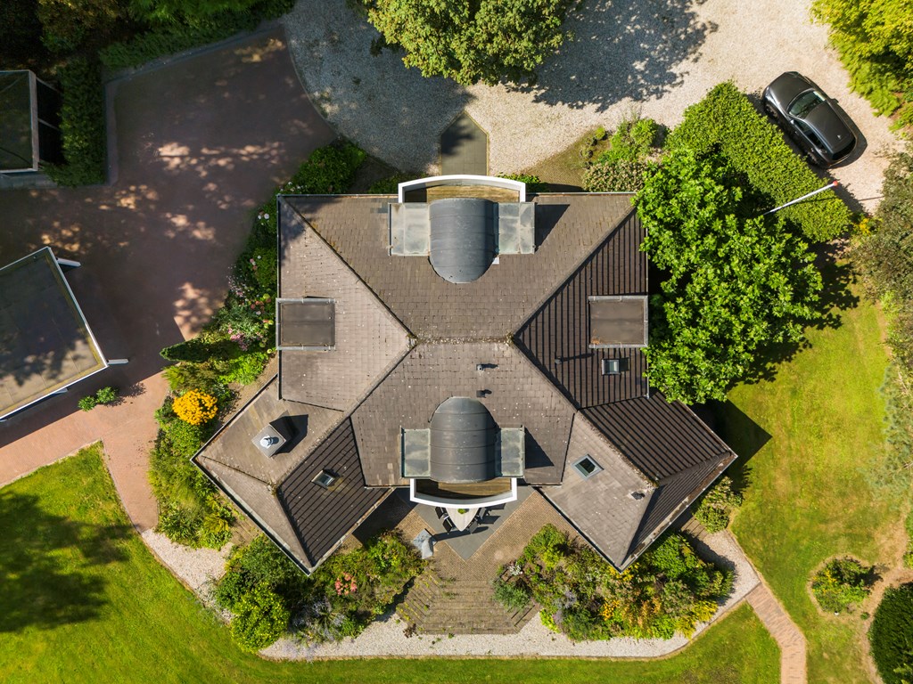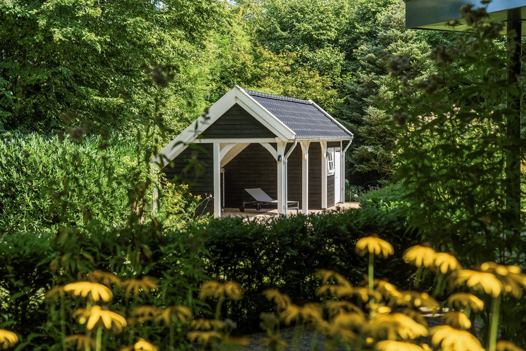 De oprit brengt u naar het prachtige perceel omzoomd door planten en bomen. De weelderige achtertuin op het zuidoosten biedt een groen en open landschap. Met een groot gazon hebben kinderen hier alle ruimte om te spelen of geniet u van de rust, zon en privacy. Een bestraat terras aan het huis biedt een schitterend uitzicht over de tuin. Daarnaast is er een tweede, overdekt terras, waar u op warme dagen in de schaduw kunt ontspannen. Dit terras is onderdeel van de in 2022 nieuw gebouwde kapschuur met bergruimte voor tuingereedschap, tuinstoelen e.d.. Een grote houten schuur (wanden en dak geïsoleerd) met carport en grote berging (2022) zorgen voor voldoende ruimte voor het stallen en/of opbergen van een auto, motor, fietsen, grasmaaier, gereedschap e.d.. Er is nog een derde schuur aanwezig welke o.a. wordt gebruikt voor het stallen van een aanhangwagen. In de tuin is een irrigatiesysteem voor besproeiing van de tuin aanwezig (middels een grondwaterpomp).