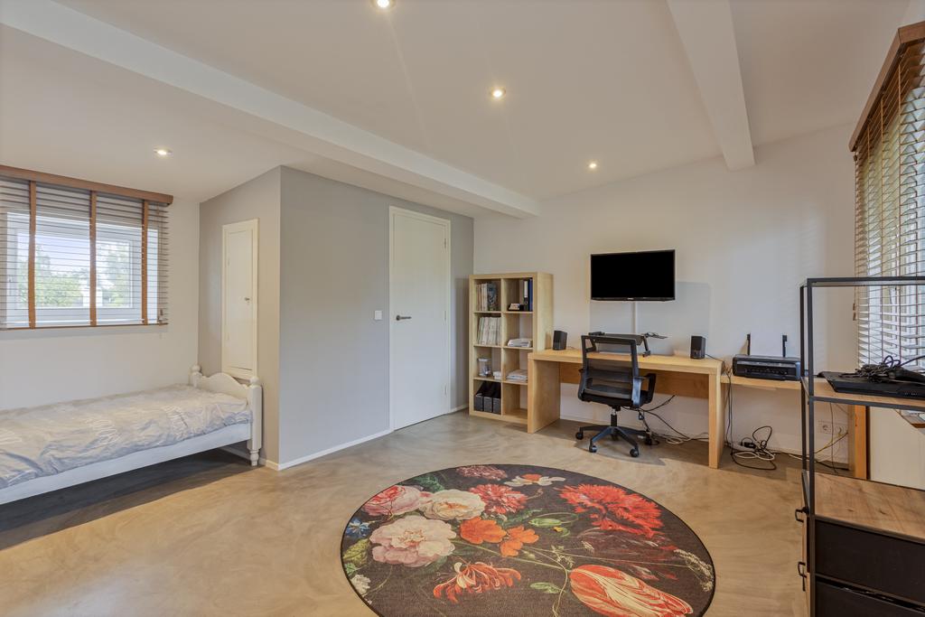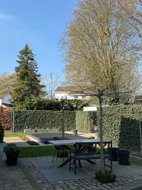 Los van de vrijstaande garage rechts achter in de tuin is er links achter in de tuin een waar "gastenverblijf" gerealiseerd (ook ideaal voor opgroeiende kinderen of werken aan huis?). Dit verblijf is ca. 20 m2 groot en bestaat uit een woon- of werkkamer, doucheruimte, toilet, keukenwand en overdekt terras.