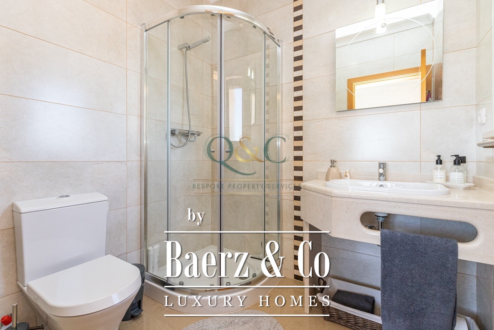Een ommuurd perceel van 400 m² met privé-tuinen en volwassen beplanting zorgt voor privacy en een gevoel van rust, terwijl de charme van het dorp op loopafstand blijft. Praktische voorzieningen zijn onder meer airconditioning, dubbele beglazing, inbouwkasten en aansluiting op het hoofdriool. De nabijheid van Faro Airport, op minder dan 20 minuten afstand, en de kust van de Gouden Driehoek, op slechts 15 minuten, bieden een moeiteloze balans tussen afzondering en bereikbaarheid. Deze luxe villa te koop in Santa Bárbara de Nexe nodigt uit tot een verfijnd en ingetogen leven in de Algarve.