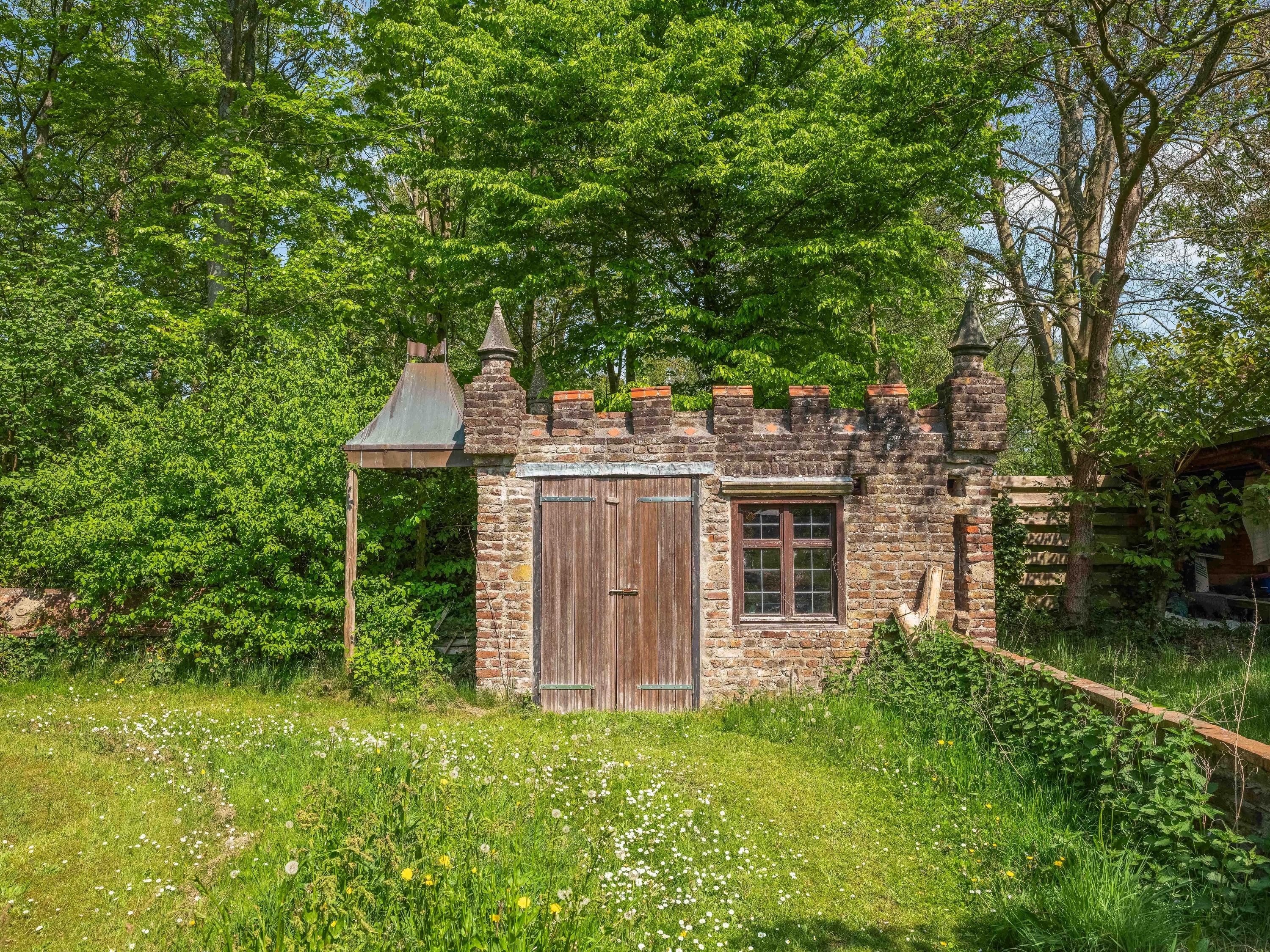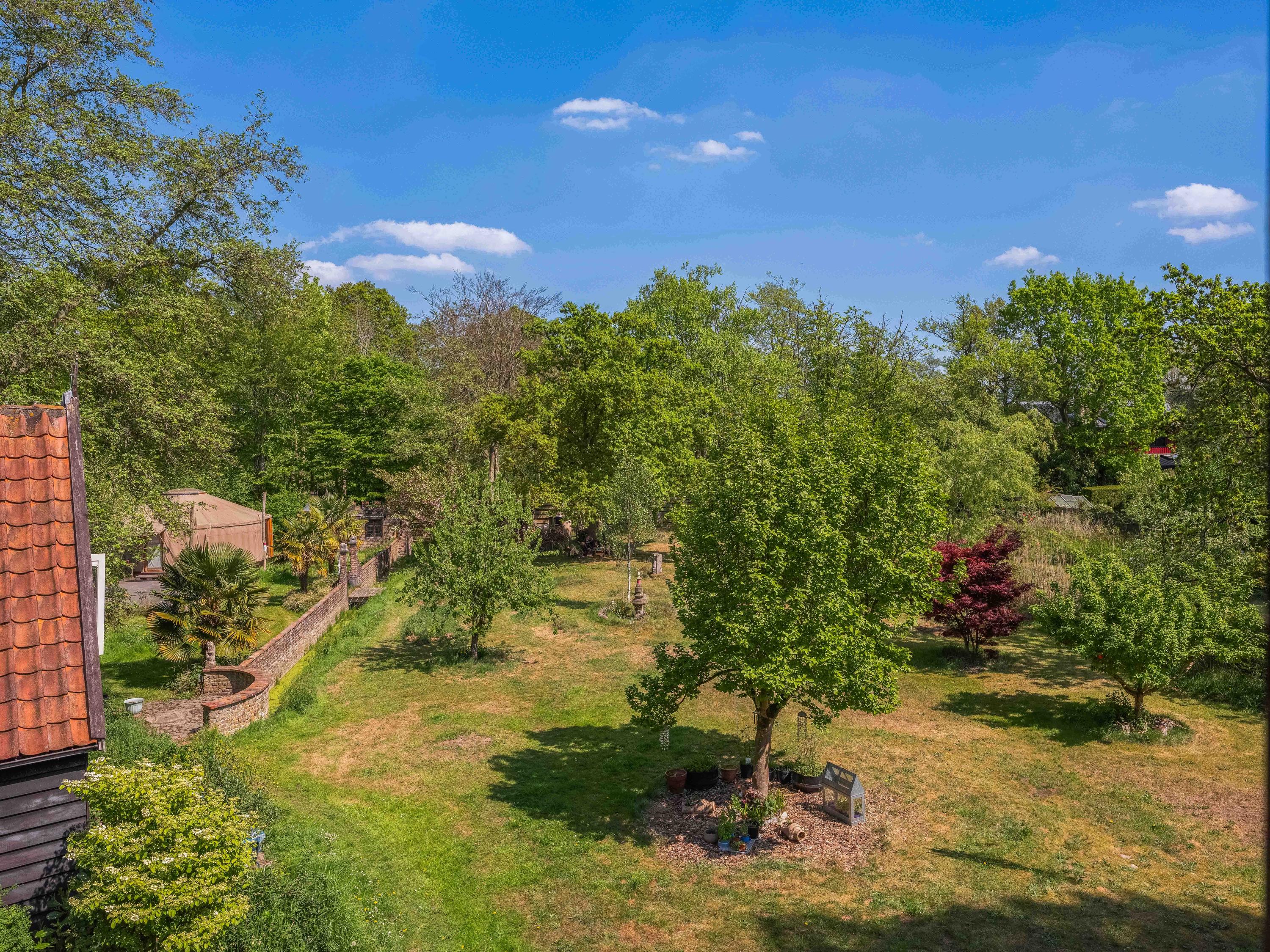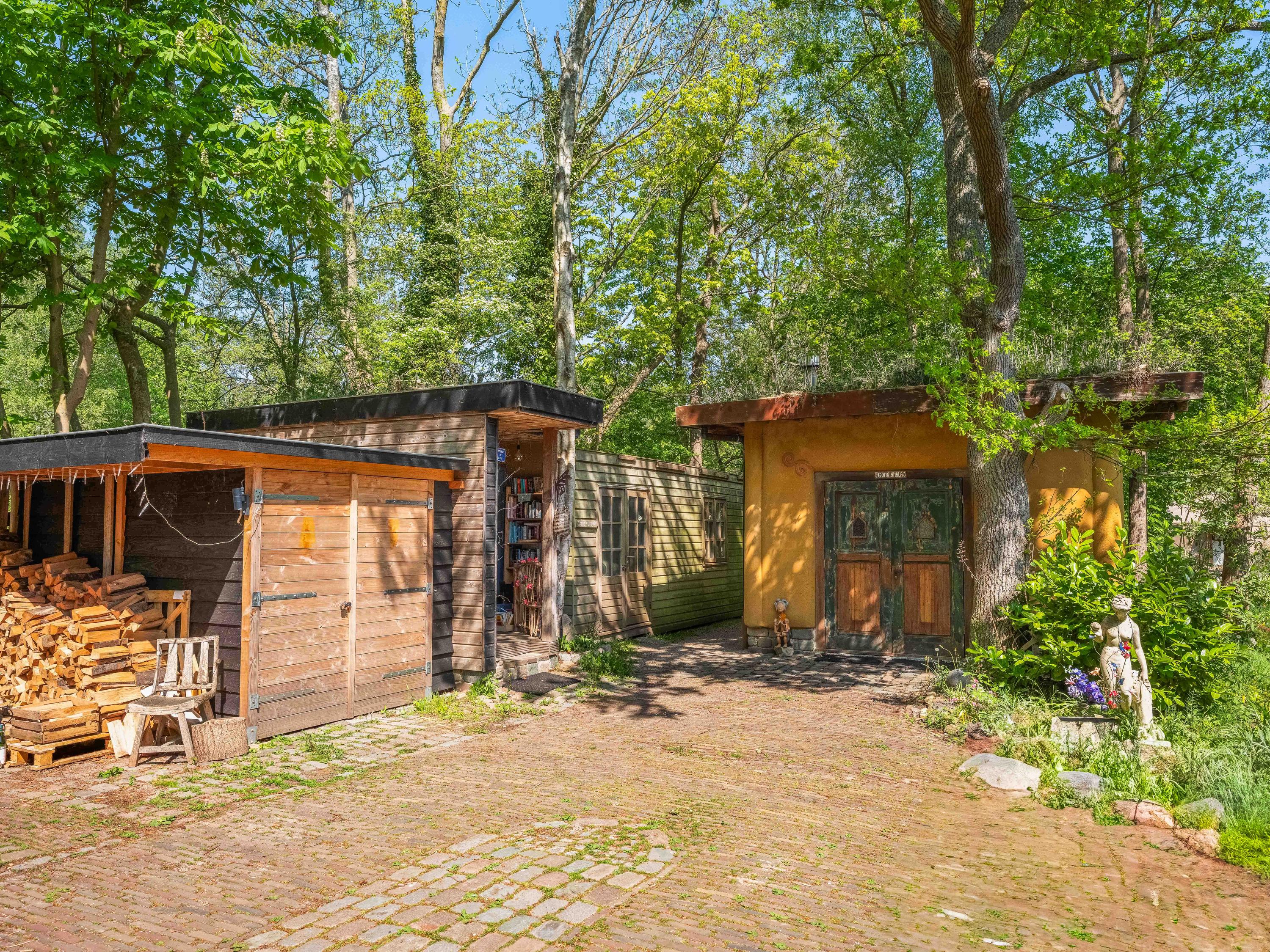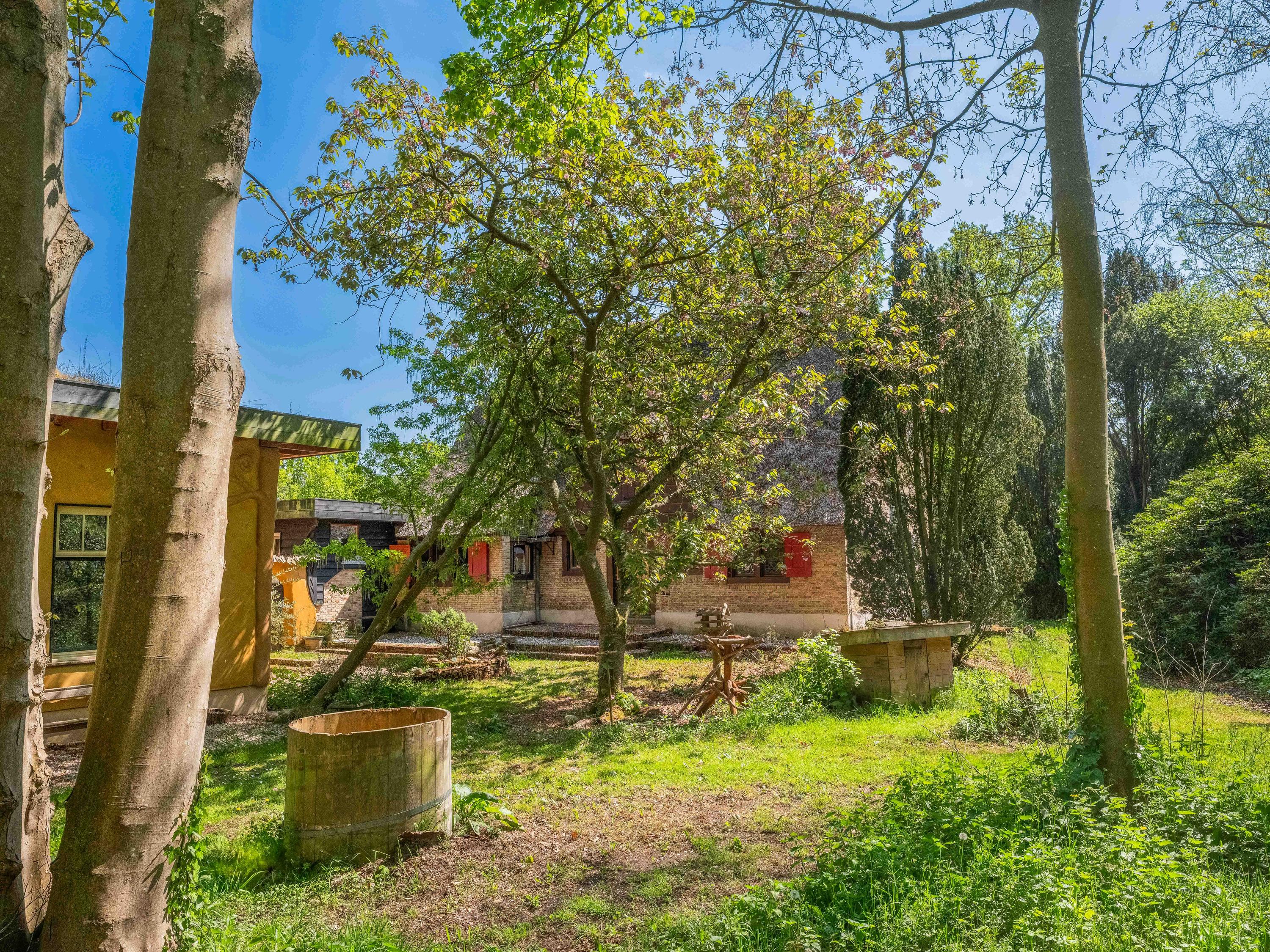 Het riante perceel van bijna 7.500 m² is een oase van rust, volledig omsloten door een sloot met meerdere duinrellen en ingericht met bijzondere boomgroepen in een doordacht patroon. Naast het hoofdhuis vindt u onder andere een separaat en functioneel gastenverblijf en diverse charmante bijgebouwen en overkappingen, wat deze plek tot een uniek geheel maakt. Of u nu wilt ontspannen, inspiratie zoekt, gasten wilt ontvangen, een kopje thee wilt drinken in het sfeervolle theeprieel of een pizza wilt bakken in uw eigen lemen buitenoven – het kan hier allemaal.