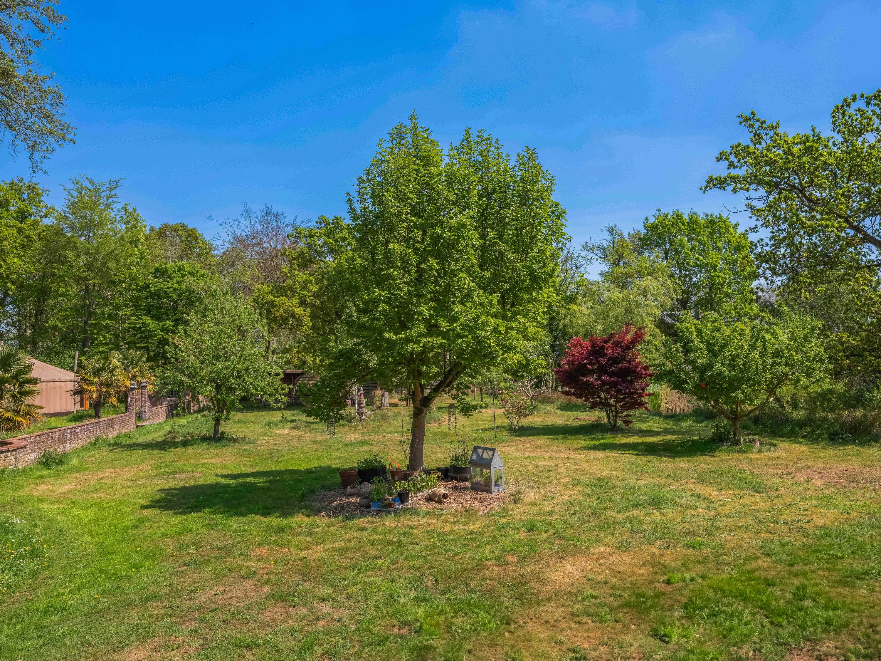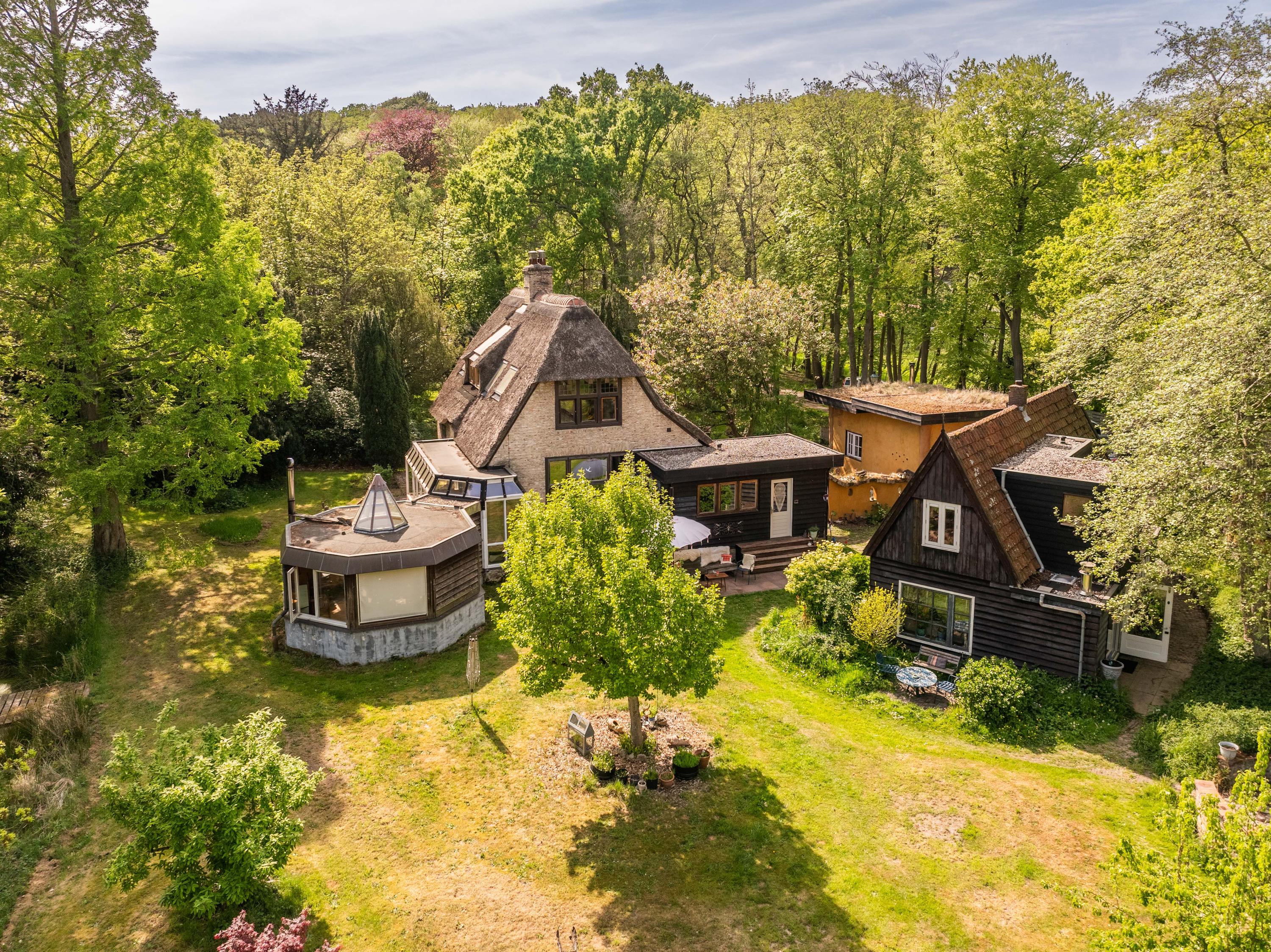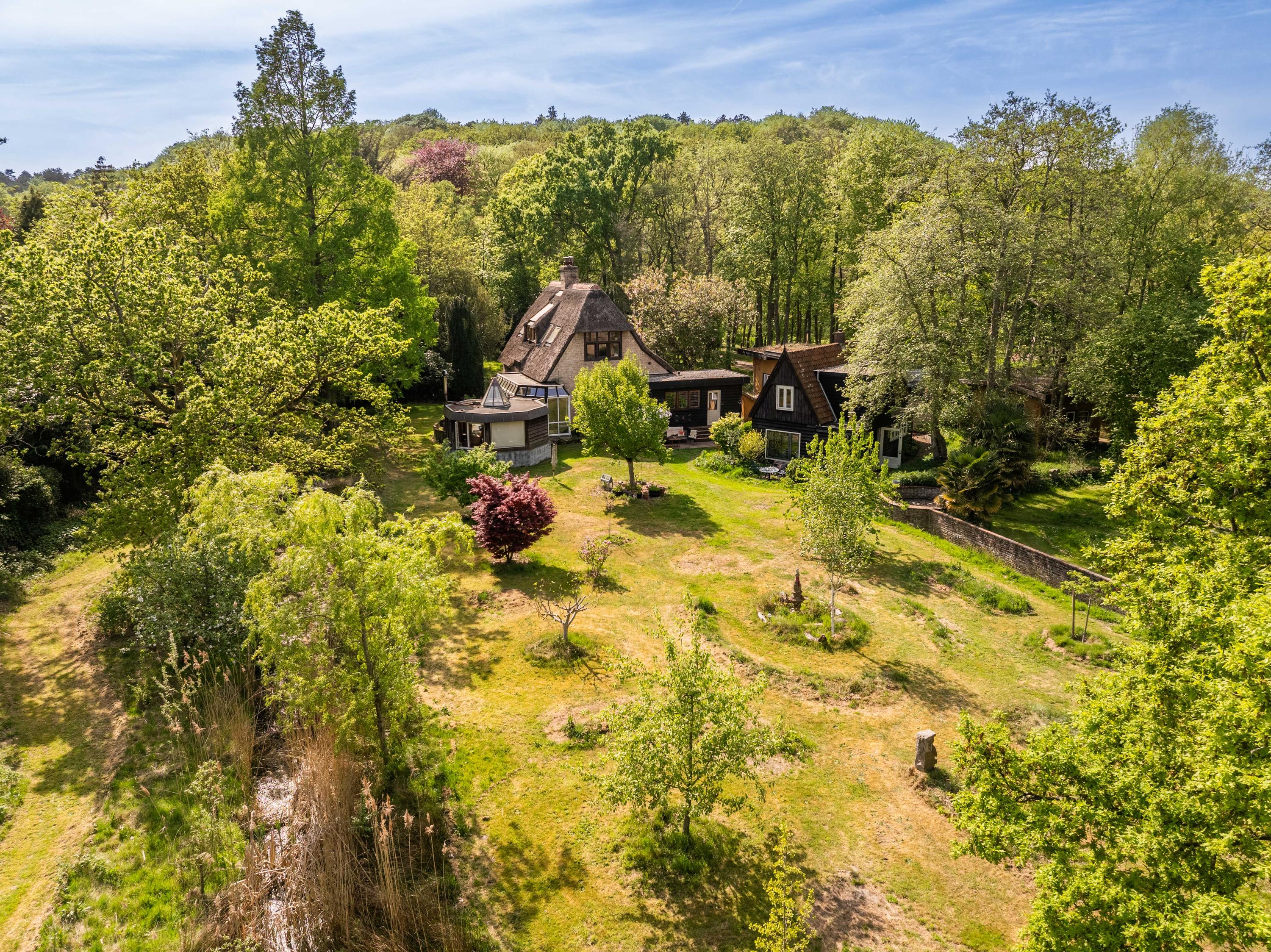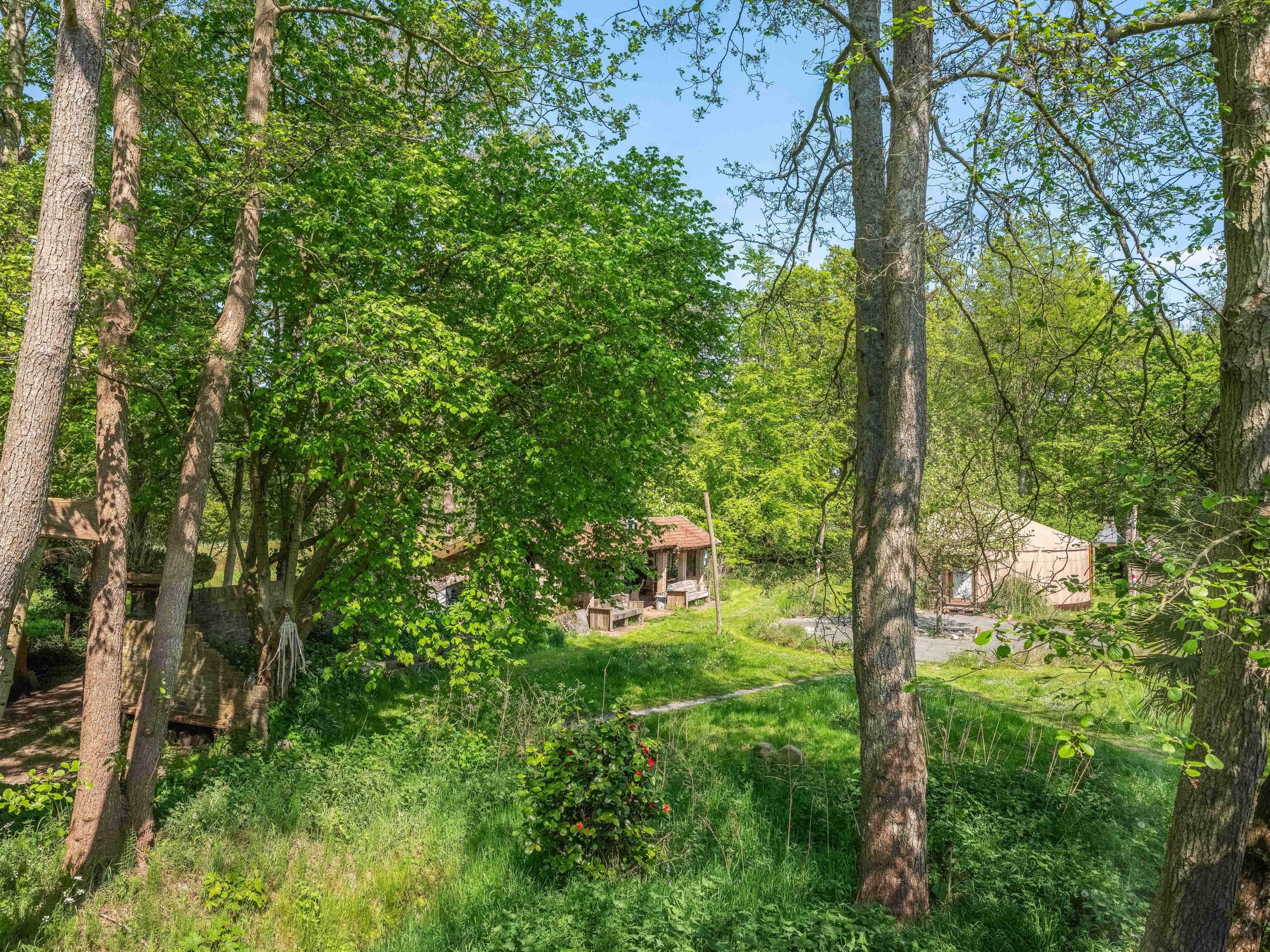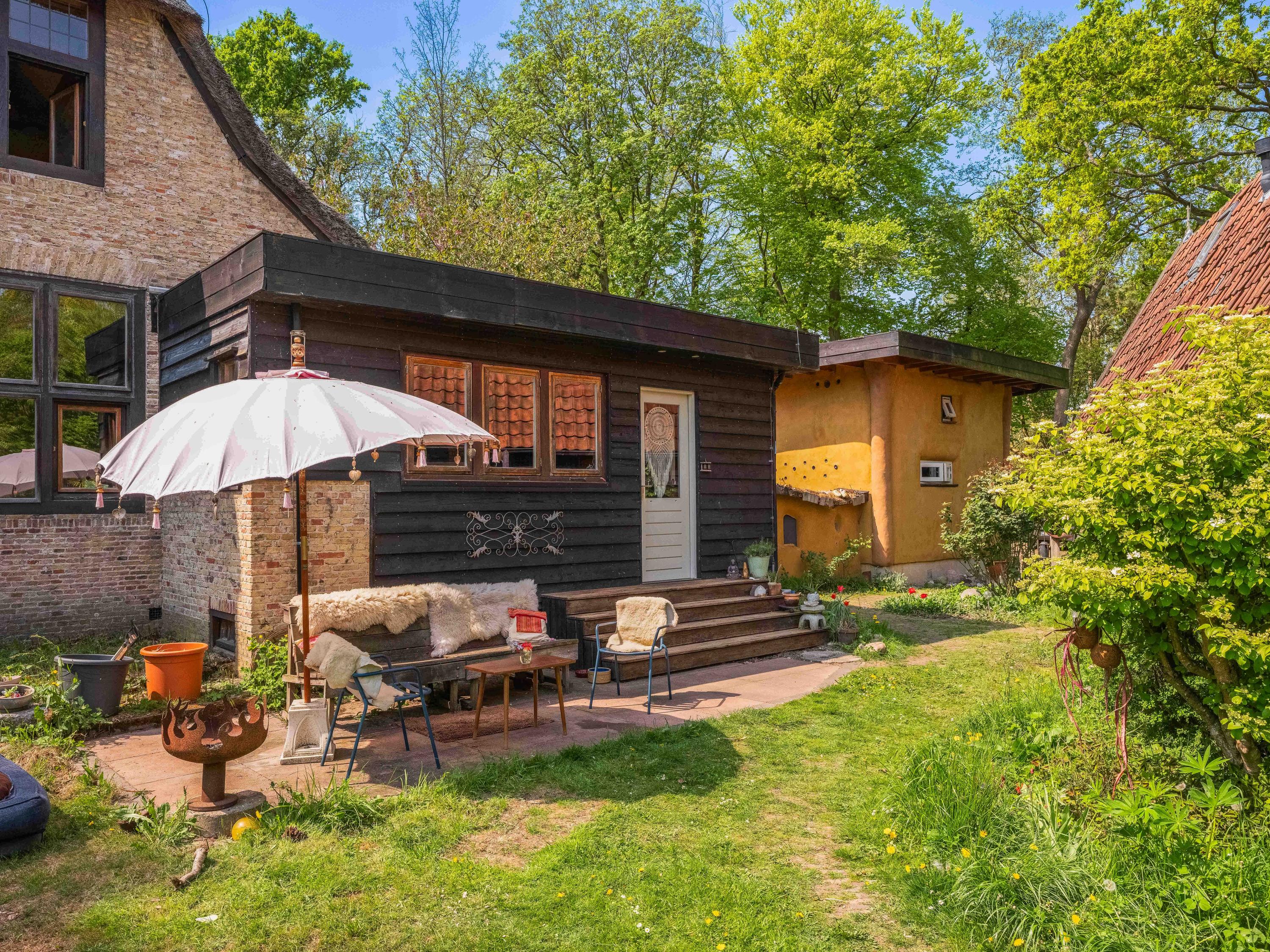 Het riante perceel van bijna 7.500 m² is een oase van rust, volledig omsloten door een sloot met meerdere duinrellen en ingericht met bijzondere boomgroepen in een doordacht patroon. Naast het hoofdhuis vindt u onder andere een separaat en functioneel gastenverblijf en diverse charmante bijgebouwen en overkappingen, wat deze plek tot een uniek geheel maakt. Of u nu wilt ontspannen, inspiratie zoekt, gasten wilt ontvangen, een kopje thee wilt drinken in het sfeervolle theeprieel of een pizza wilt bakken in uw eigen lemen buitenoven – het kan hier allemaal.