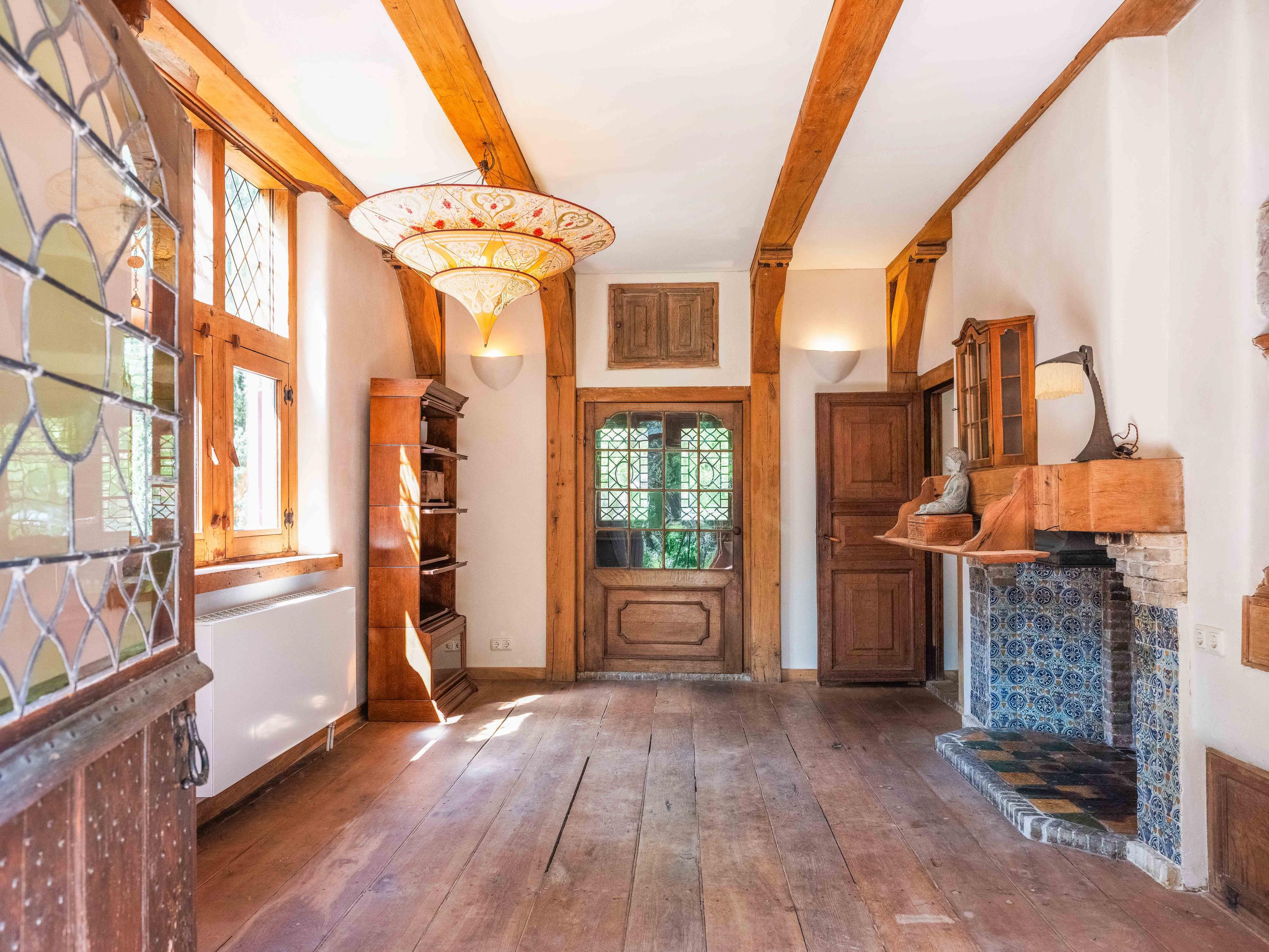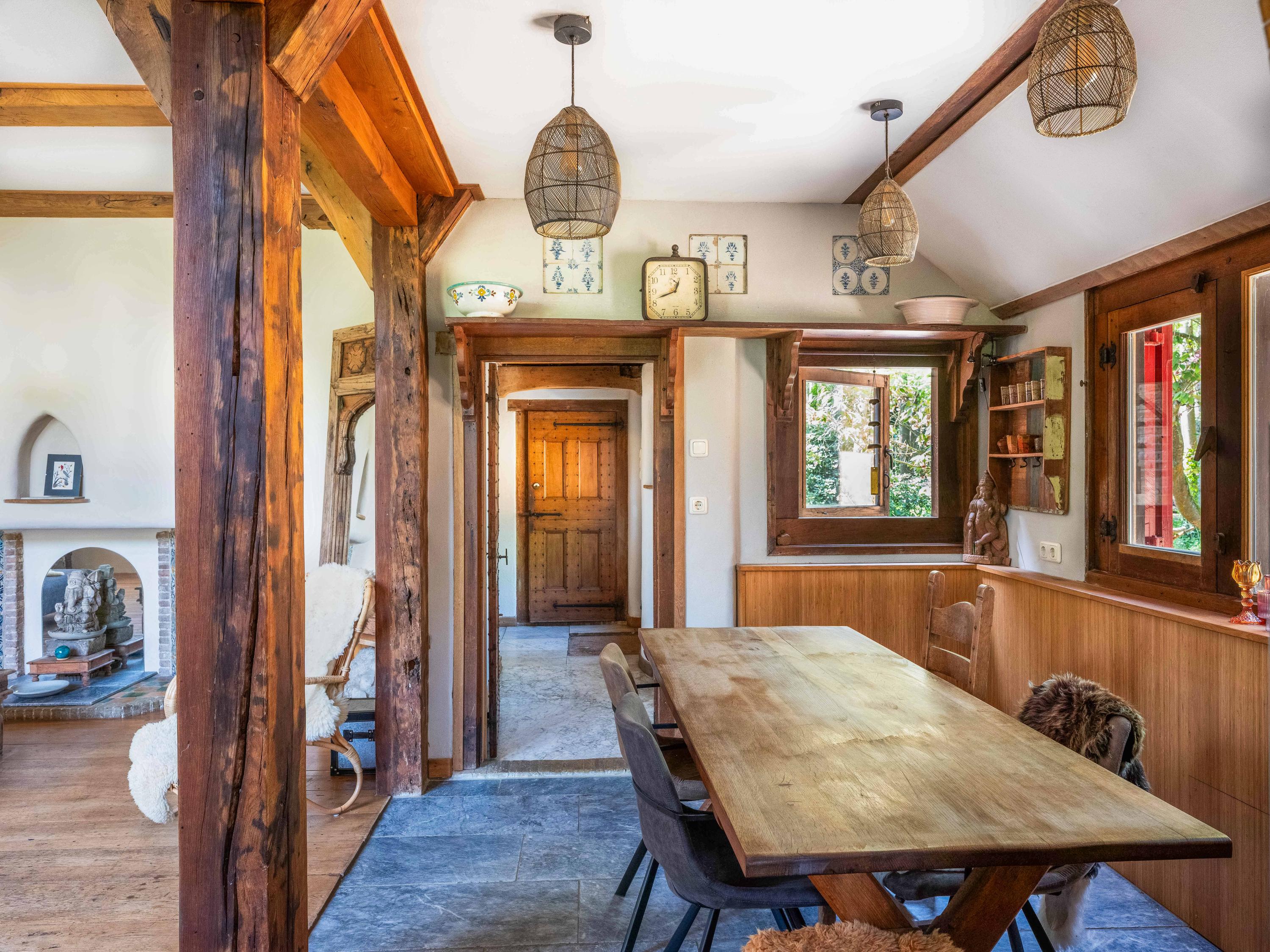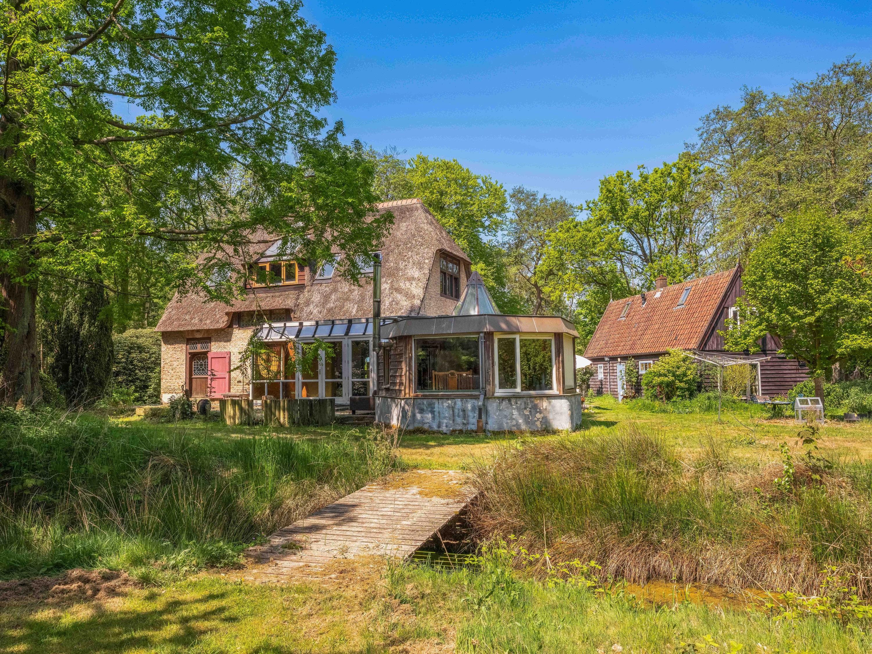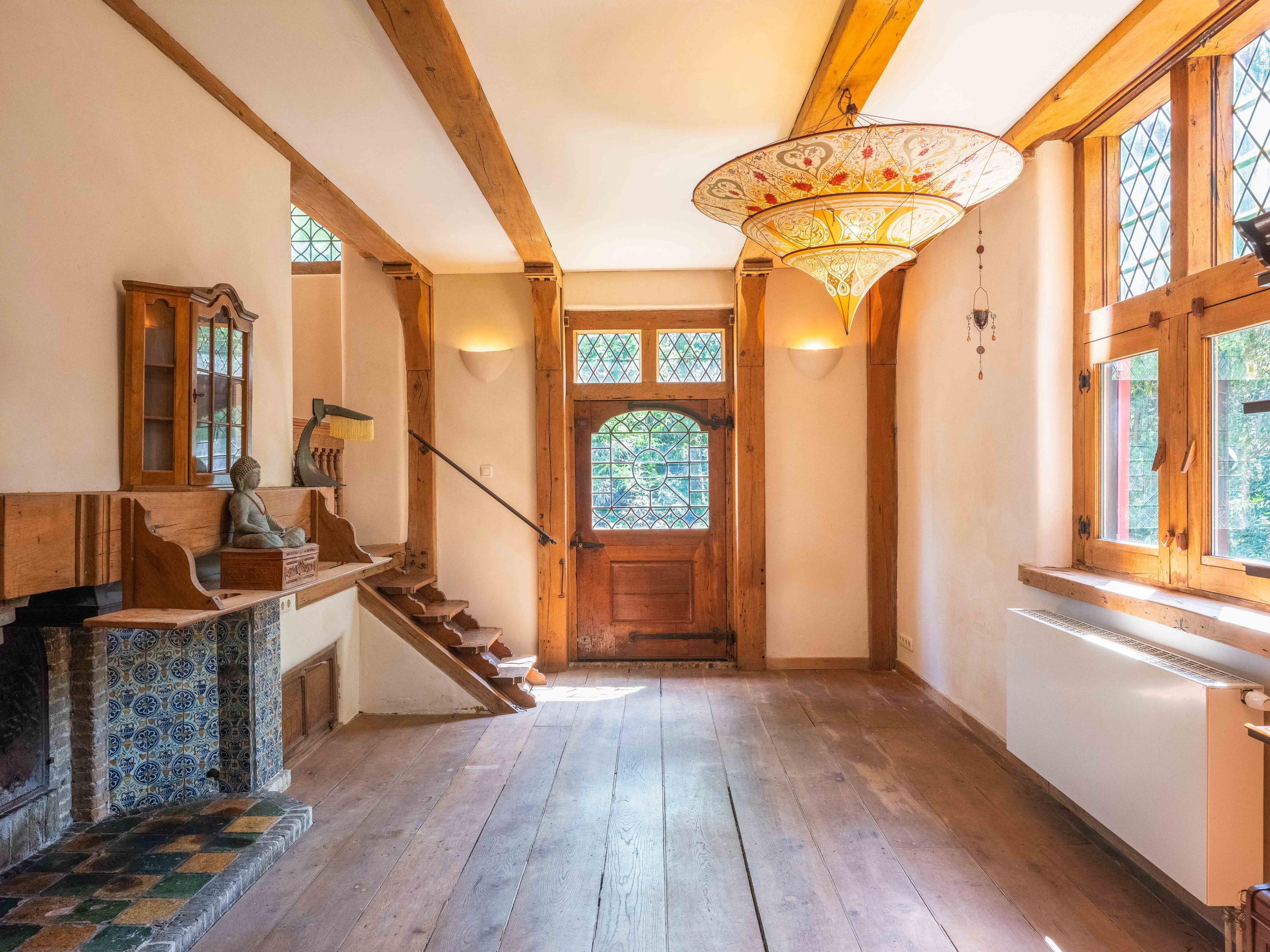 Via een langgerekt bospad bereikt u dit markante pand, gebouwd in 1935 met 17e-eeuwse bouwmaterialen naar een ontwerp van architect Royaards. Het huis ademt karakter en historie: robuuste open haarden, die momenteel niet functioneel zijn maar verbouwd mogen worden, antieke elementen zoals robuuste eikenhouten balken en vloeren, en lemen muren die zorgen voor een behaaglijk woonklimaat en een weldadige nachtrust. Hier ervaart u de luxe van stilte, ruimte en privacy, omgeven door de geur van het bos, het zachte ruisen van de bomen én het gezang van talloze vogels – dit is werkelijk een vogelparadijs.