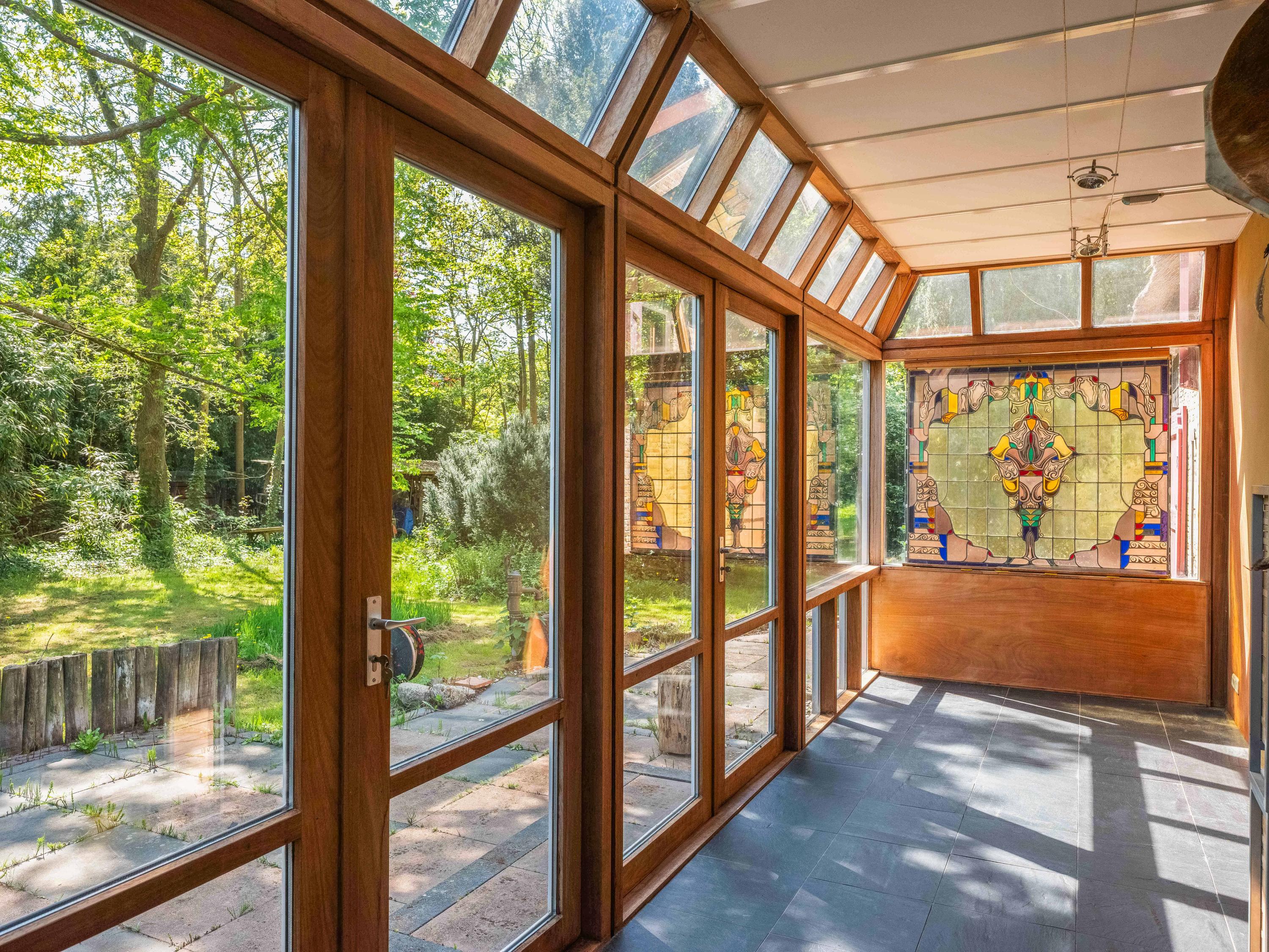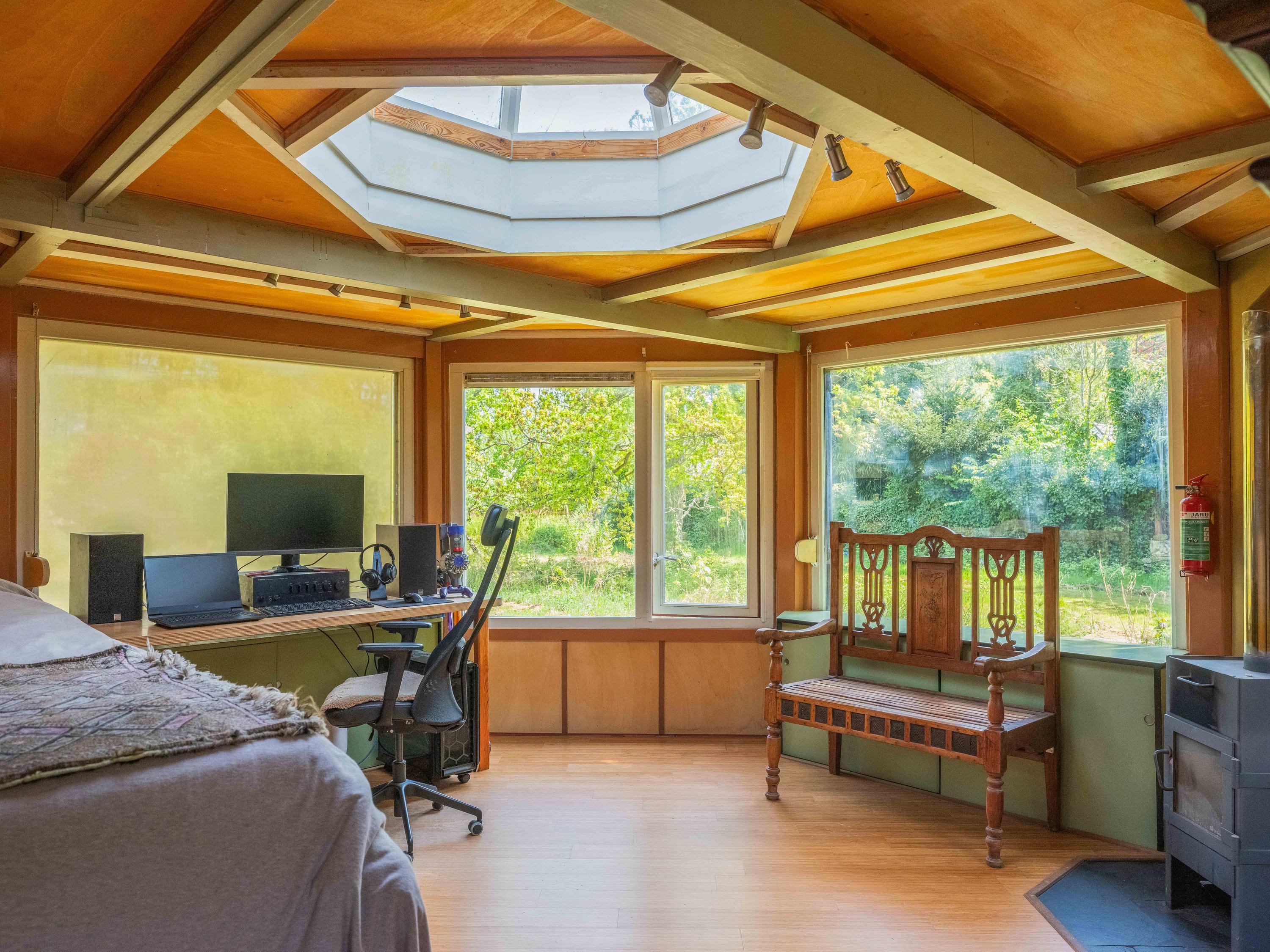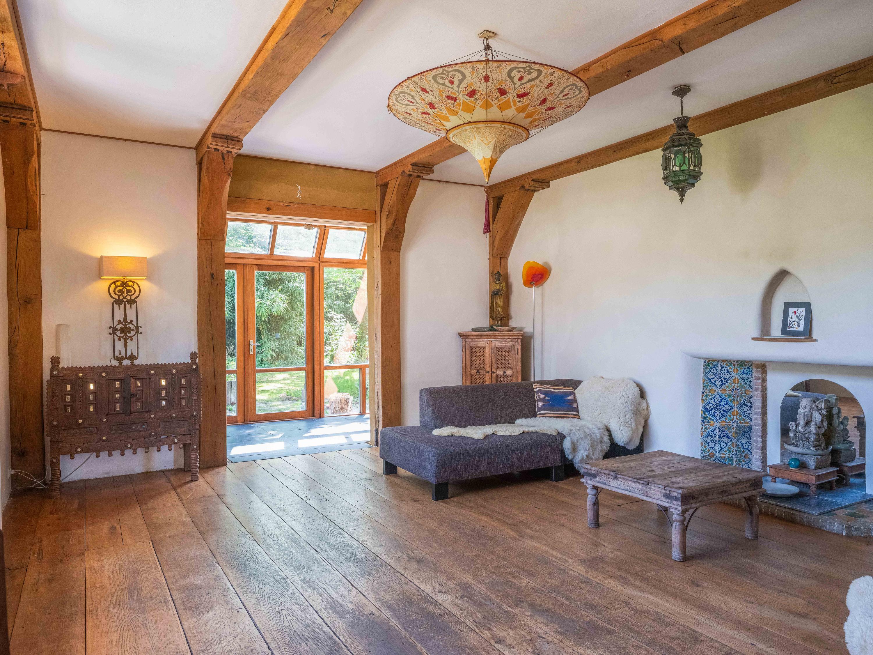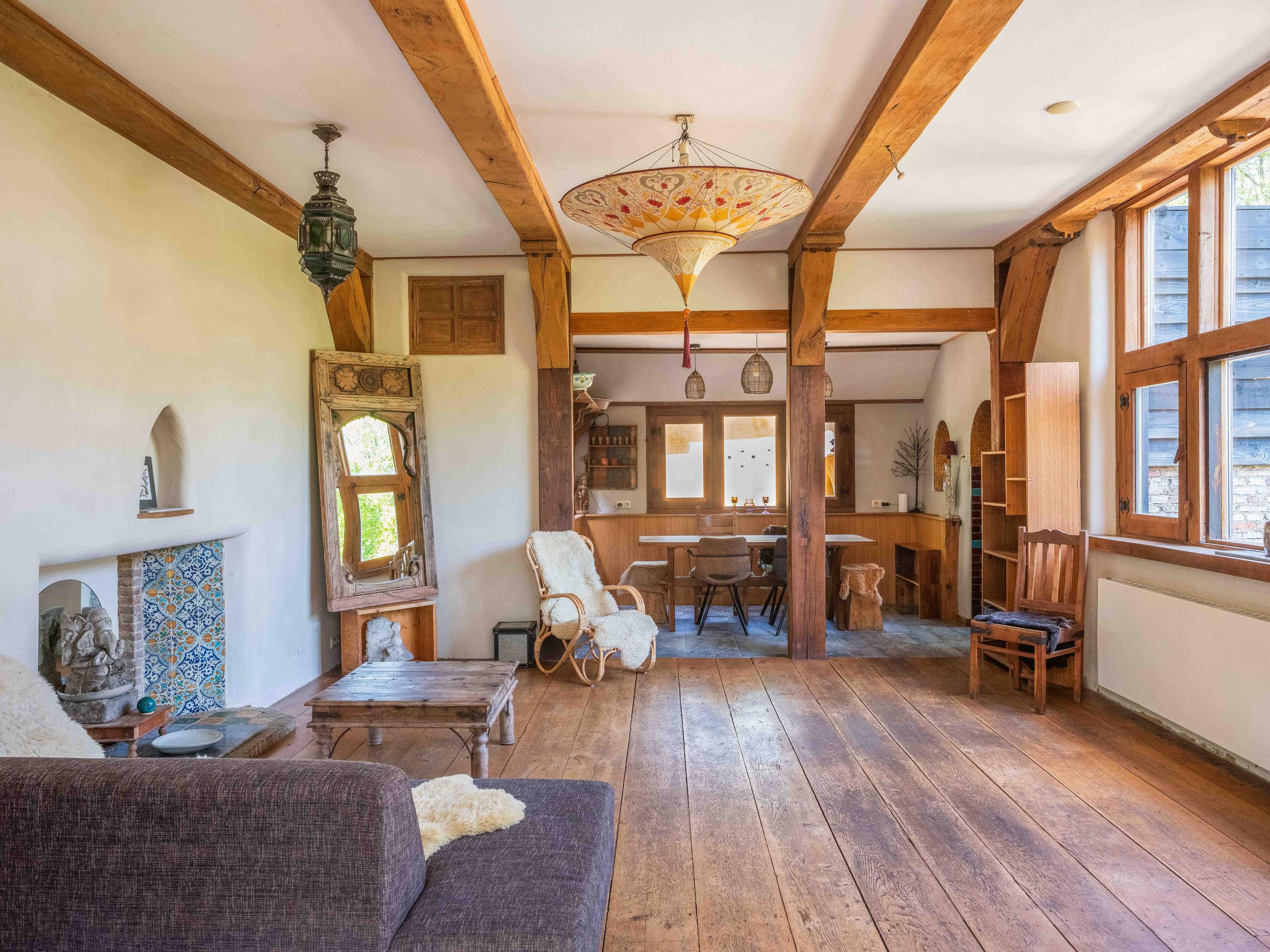 Via een langgerekt bospad bereikt u dit markante pand, gebouwd in 1935 met 17e-eeuwse bouwmaterialen naar een ontwerp van architect Royaards. Het huis ademt karakter en historie: robuuste open haarden, die momenteel niet functioneel zijn maar verbouwd mogen worden, antieke elementen zoals robuuste eikenhouten balken en vloeren, en lemen muren die zorgen voor een behaaglijk woonklimaat en een weldadige nachtrust. Hier ervaart u de luxe van stilte, ruimte en privacy, omgeven door de geur van het bos, het zachte ruisen van de bomen én het gezang van talloze vogels – dit is werkelijk een vogelparadijs.
