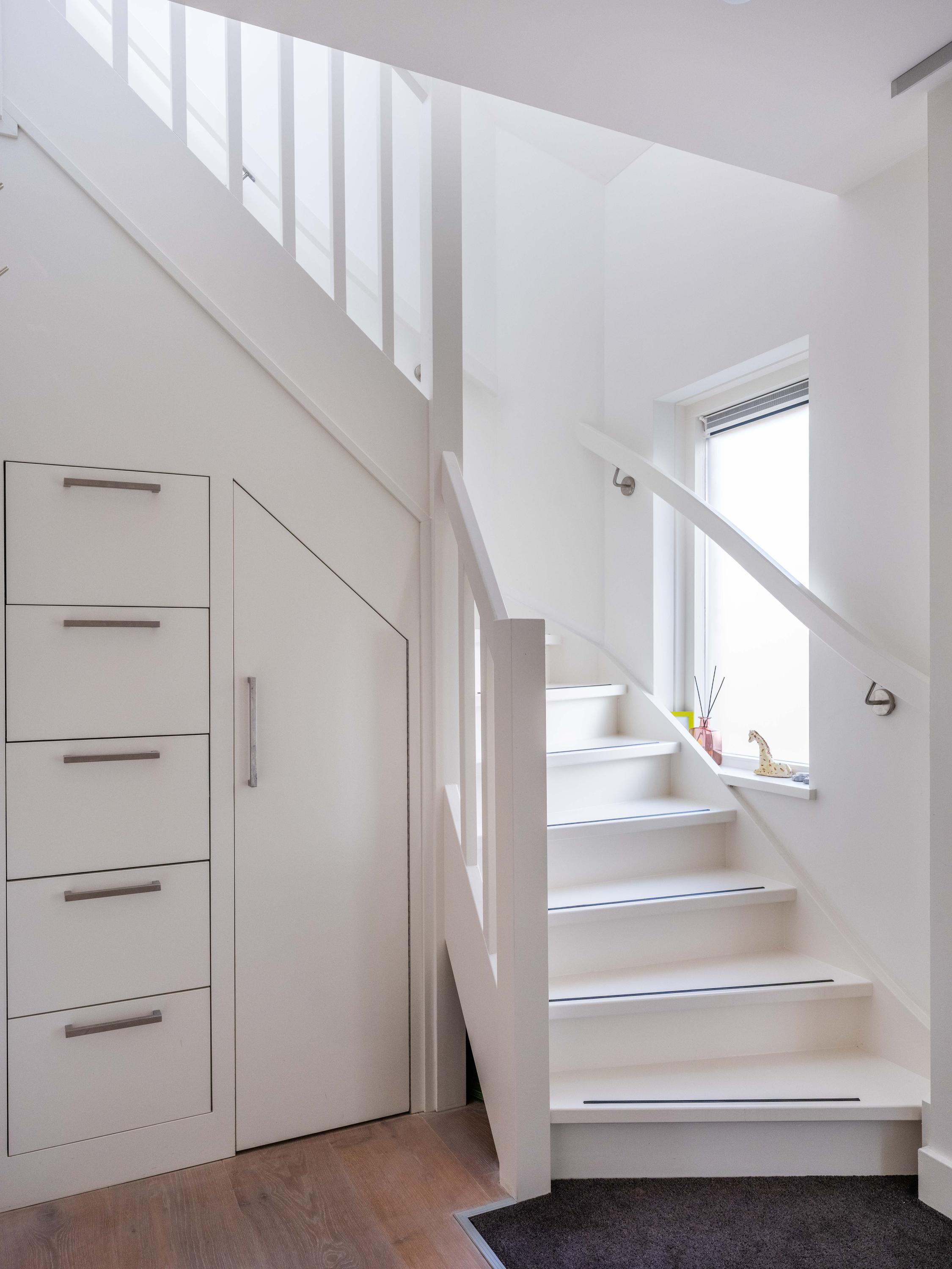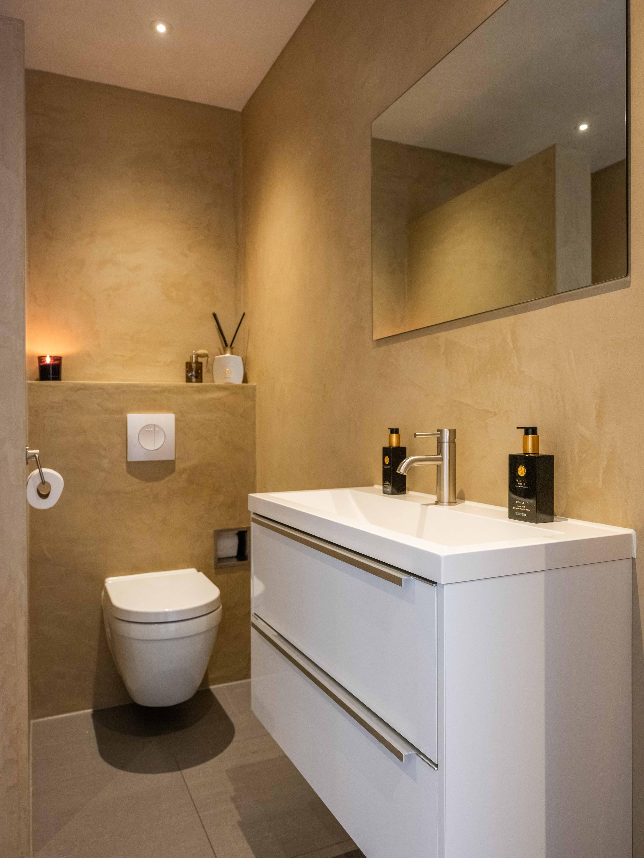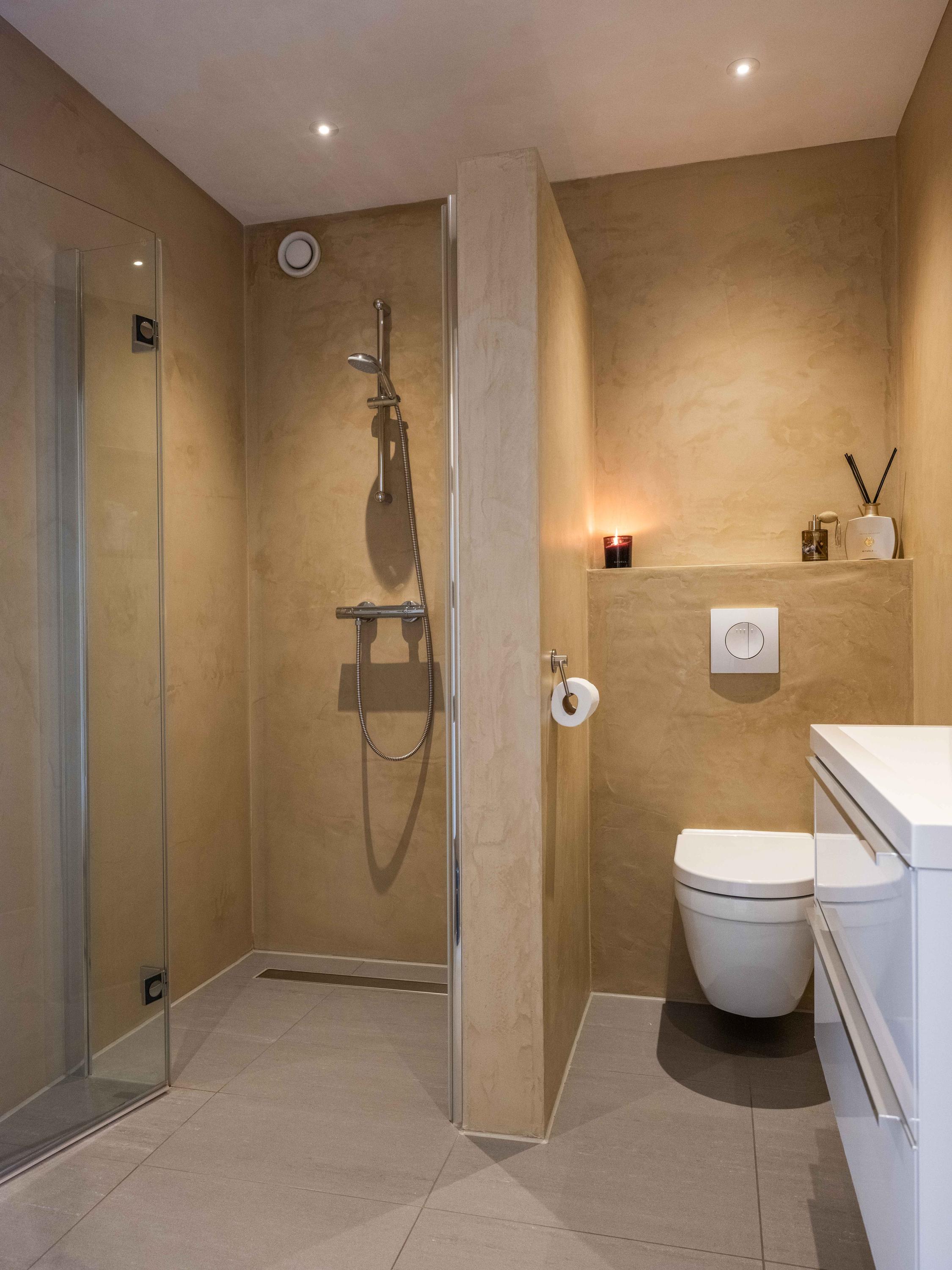 Bij binnenkomst valt direct de ruime hal op, met meterkast, extra badkamer en de trap naar boven. Onder de trap bevindt zich een praktische bergruimte. De luxe badkamer is ruim opgezet en uitgerust met een douche, toilet, wastafel en radiator.