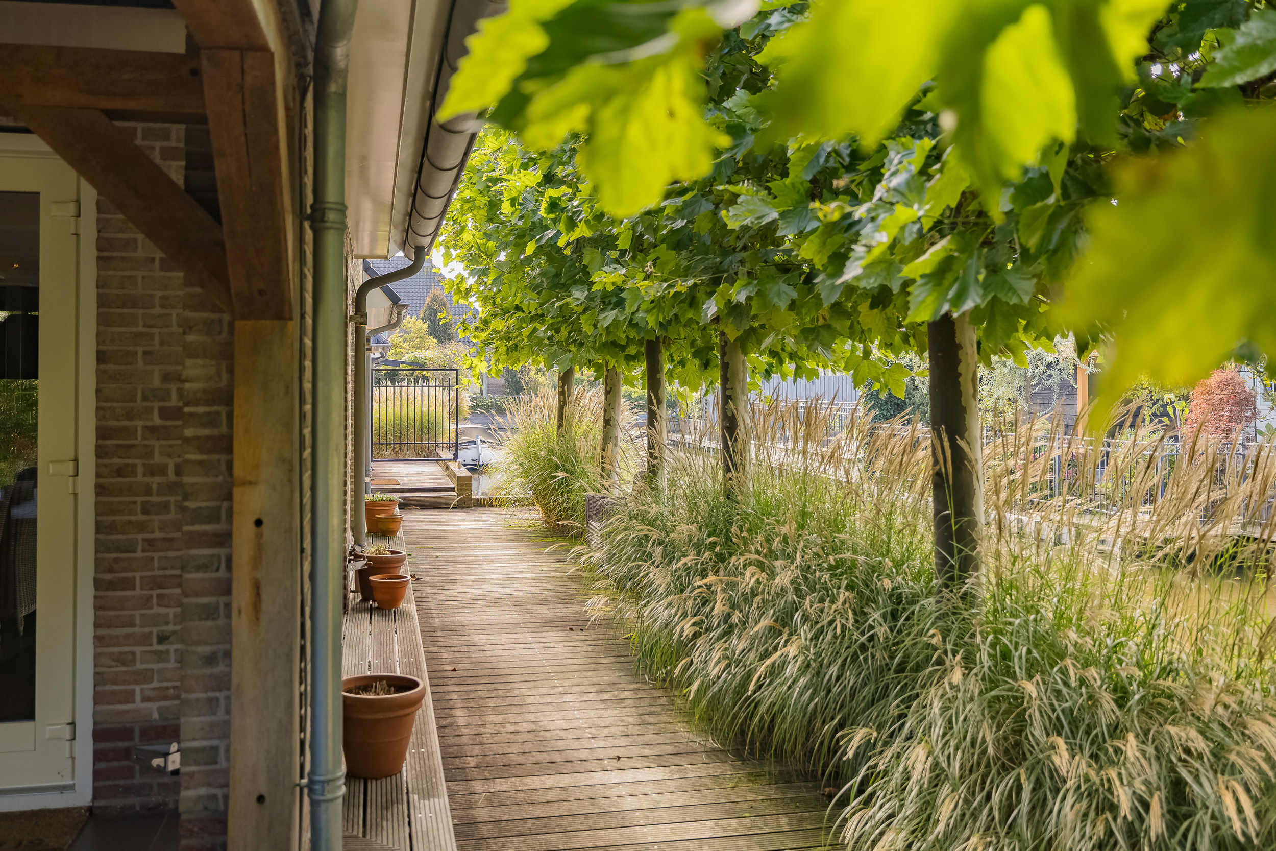 Rondom de villa ligt een fraai aangelegde tuin met volop privacy, een grote rozenboog, een tuinhuis met overkapping én een prachtige eikenhouten veranda. Hier geniet je het hele jaar door van het buitenleven; een fraaie uitbreiding van de woonkamer.