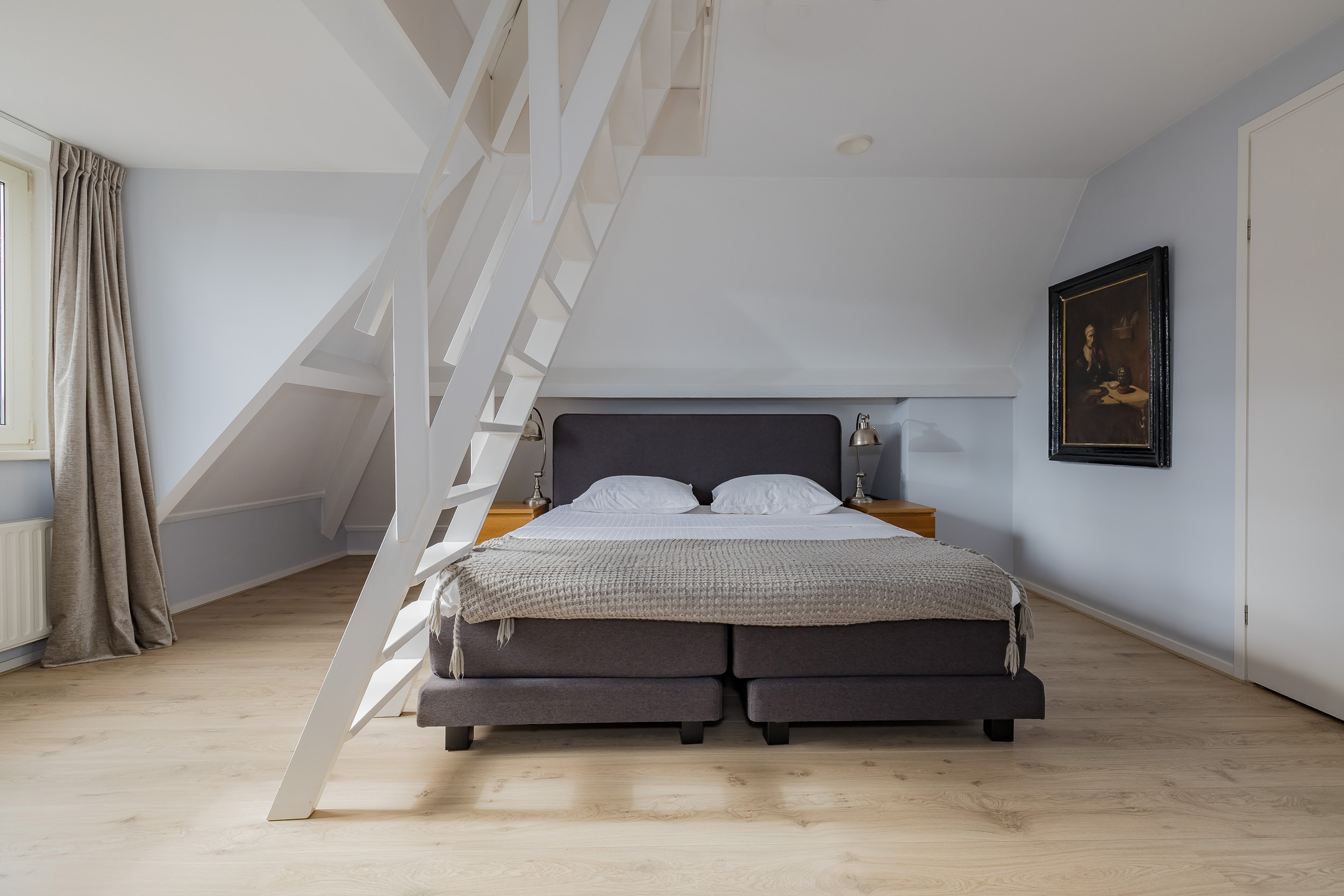 Een vaste trap brengt je naar de tweede verdieping met nog eens twee (slaap)kamers, die momenteel in gebruik zijn als kantoorruimte. Vanuit de achterkamer heb je toegang tot de stookruimte met cv-installatie (2016) en het WTW-ventilatiesysteem.