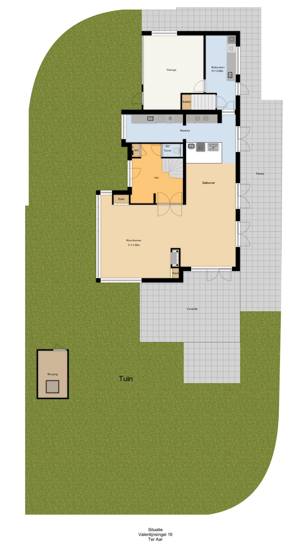 Naast de keuken ligt de praktische bijkeuken die is voorzien van een keukenblok met spoelbak en hier zijn ook de aansluitingen voor de wasmachine en droger. Van hieruit is er toegang tot de garage en het vlonderterras met aanlegplaats. Via een vaste trap bereik je de ruime, droge kelder (2,29 m hoog!), ideaal als extra opslagruimte of wijnkelder.