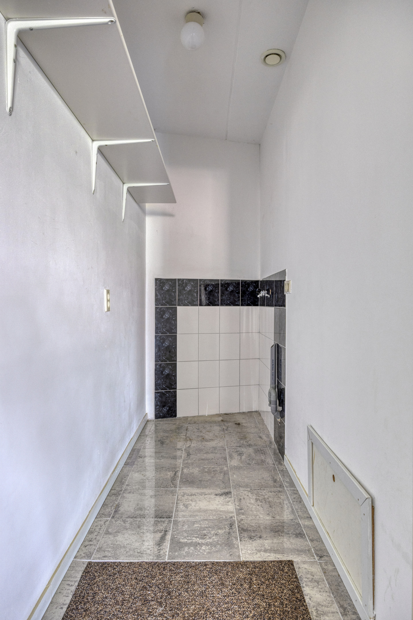 bijkeuken met luik naar de kruipruimte, opstelplaats wasmachine-/droger, wandafwerking stucwerk, tegelvloer, plafond afgewerkt met spuitwerk;