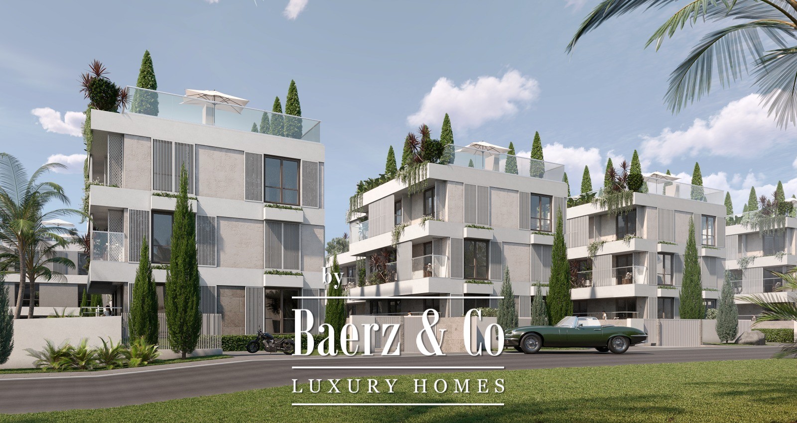 De woning maakt deel uit van een nieuw gerealiseerd project met negen laagbouwcomplexen en combineert een intieme sfeer met doordachte architectuur. Het appartement heeft een oppervlakte van 122,38 m² met twee slaapkamers, een badkamer, een gastentoilet en een lichte woonkamer die uitkomt op een royaal terras. Boven is er een privé dakterras van 99,92 m², met een weids uitzicht over de baai en de omliggende bergen, ideaal voor rustige momenten of stijlvol vermaak. De overgang tussen binnen en buiten is naadloos, bepaald door natuurlijk licht en de texturen van het landschap.