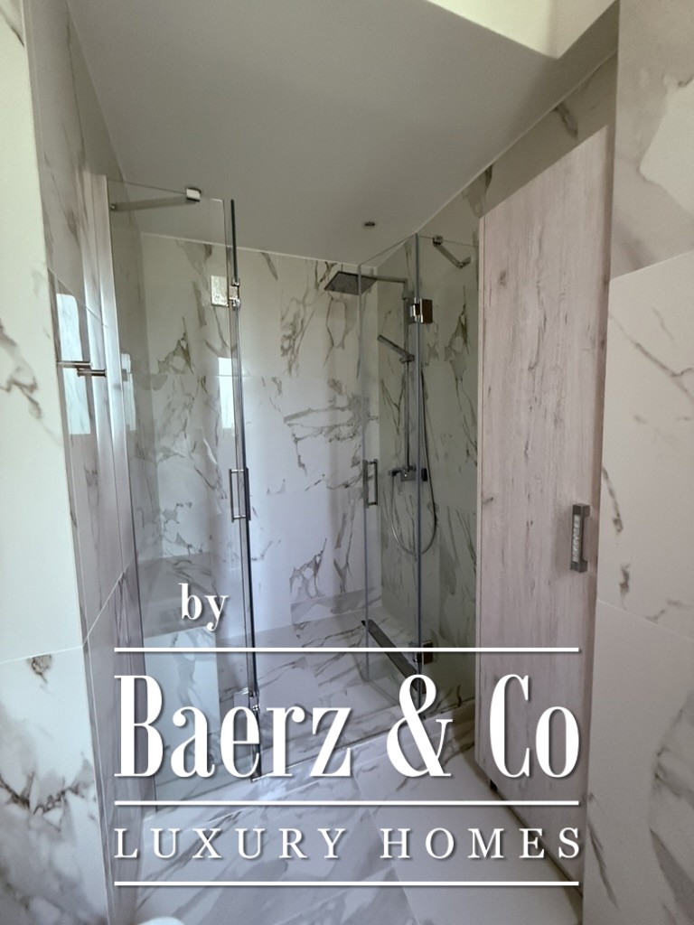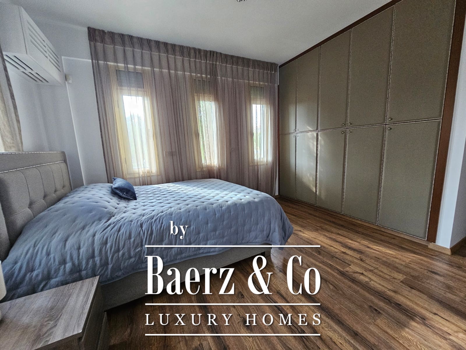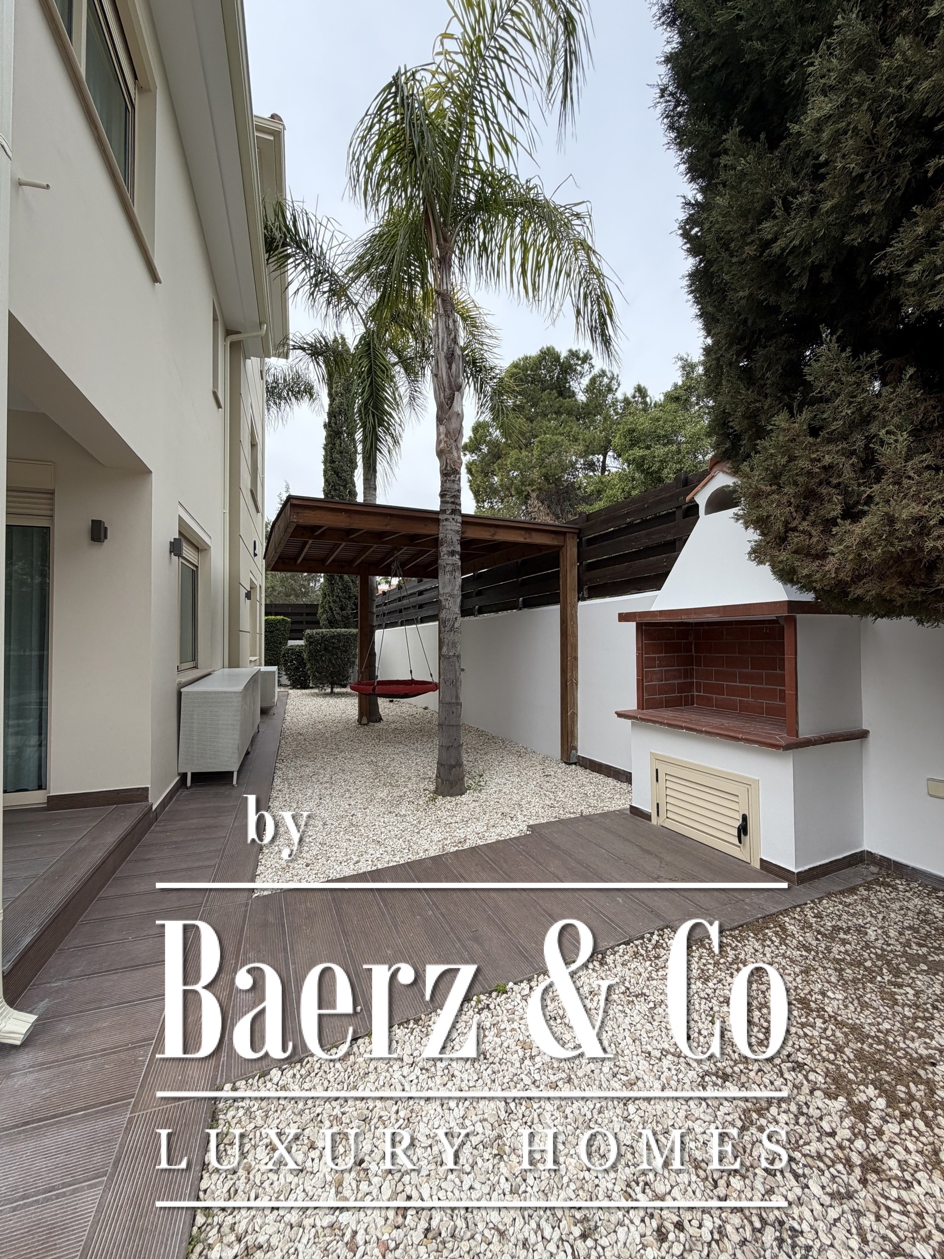 De woning is licht en luchtig, voorzien van airconditioning, centrale verwarming op diesel en energiezuinige, dubbel beglaasde aluminium ramen. Extra voorzieningen zijn onder meer een wasruimte en berging, wijnkoelkast, geavanceerde beveiliging met een veiligheidsdeur en camerabewaking, evenals geluids- en thermische isolatie. Buiten bevindt zich een privézwembad in de aangelegde tuin, harmonieus passend bij de rustige woonomgeving. Twee overdekte parkeerplaatsen maken het geheel compleet.
