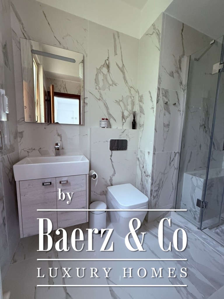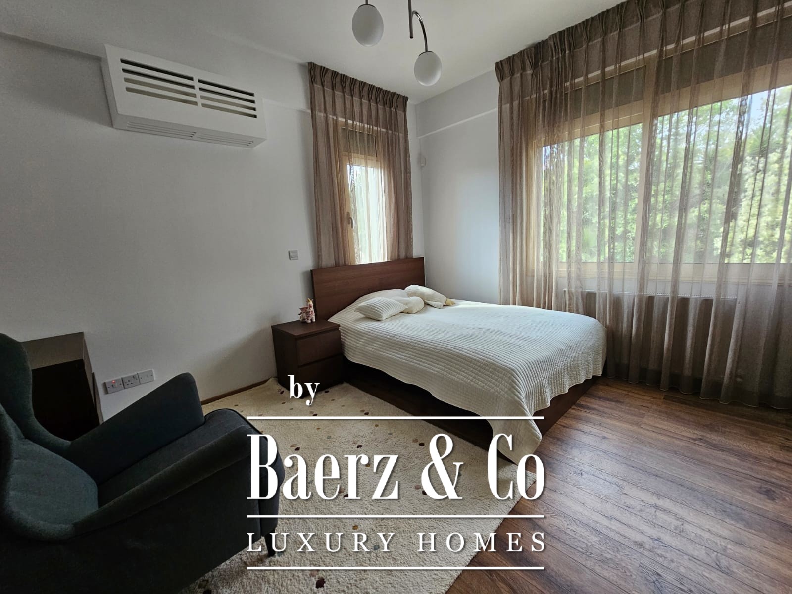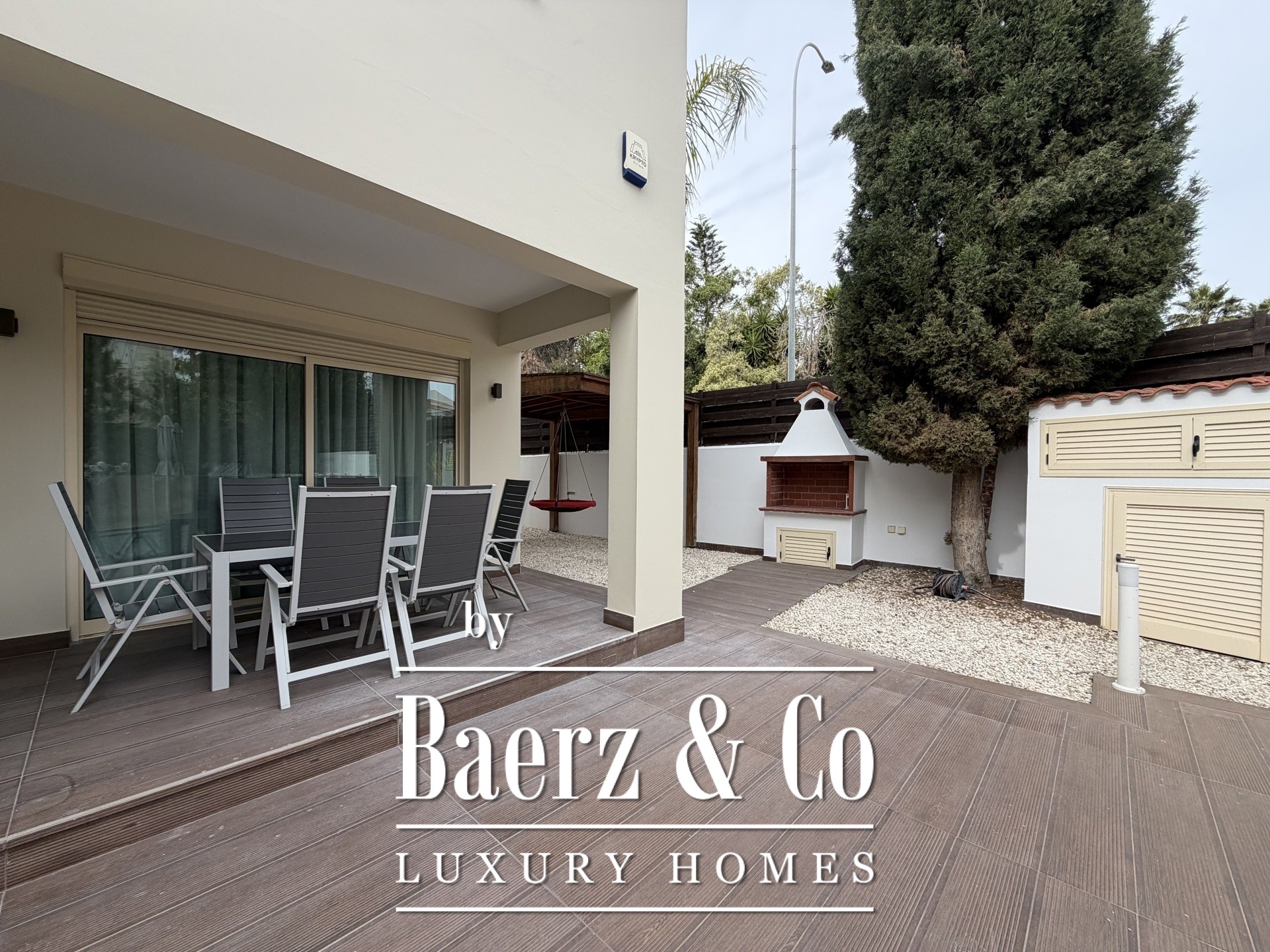 De woning is licht en luchtig, voorzien van airconditioning, centrale verwarming op diesel en energiezuinige, dubbel beglaasde aluminium ramen. Extra voorzieningen zijn onder meer een wasruimte en berging, wijnkoelkast, geavanceerde beveiliging met een veiligheidsdeur en camerabewaking, evenals geluids- en thermische isolatie. Buiten bevindt zich een privézwembad in de aangelegde tuin, harmonieus passend bij de rustige woonomgeving. Twee overdekte parkeerplaatsen maken het geheel compleet.