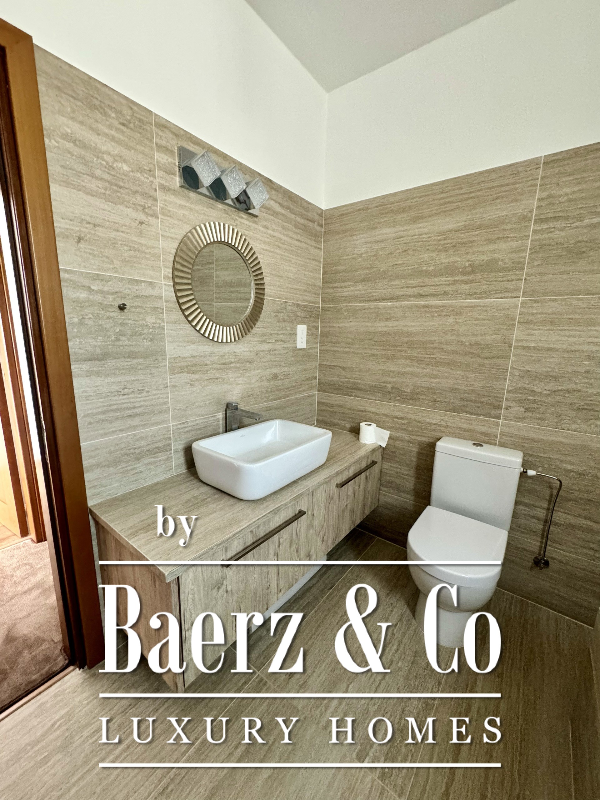 De volledig gemeubileerde villa strekt zich uit over drie verdiepingen, met een interne woonoppervlakte van 214 m² op een perceel van 463 m². In 2024 geheel gerenoveerd, beschikt de villa over vijf slaapkamers, vijf badkamers en een gastentoilet. Vier slaapkamers bevinden zich op de tweede verdieping, terwijl de royale master suite met eigen badkamer en privéberging de bovenste etage beslaat. De keuken kijkt uit op de fraai aangelegde tuin en wordt aangevuld door een aparte eetkamer en een sfeervolle woonkamer met stoomhaard. Materialen zoals tegels, marmer en laminaat zijn stijlvol op elkaar afgestemd.