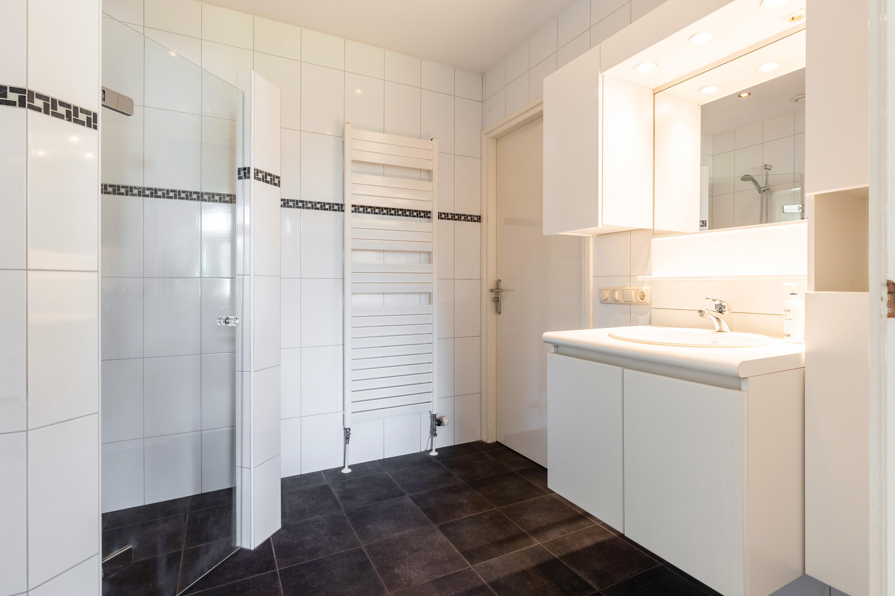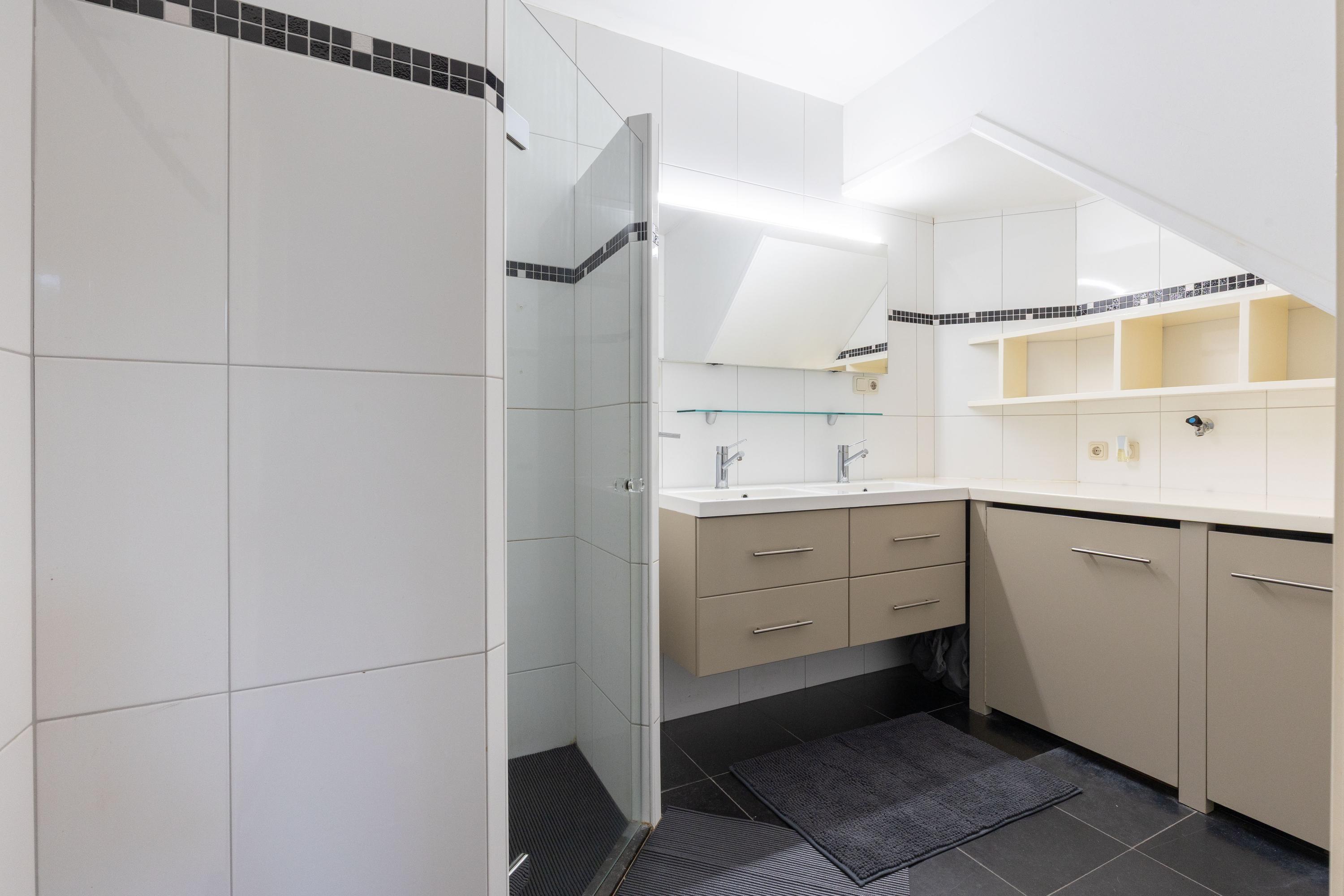 De eerste verdieping telt twee ruime slaapkamers. De grootste kamer beschikt over airconditioning, grote dakkapellen en een royale lichtinval. Daarnaast is er een tweede slaapkamer en een moderne badkamer met inloopdouche, wastafel en tweede toilet. Op deze verdieping is tevens een technische ruimte aanwezig met de cv-installaties.