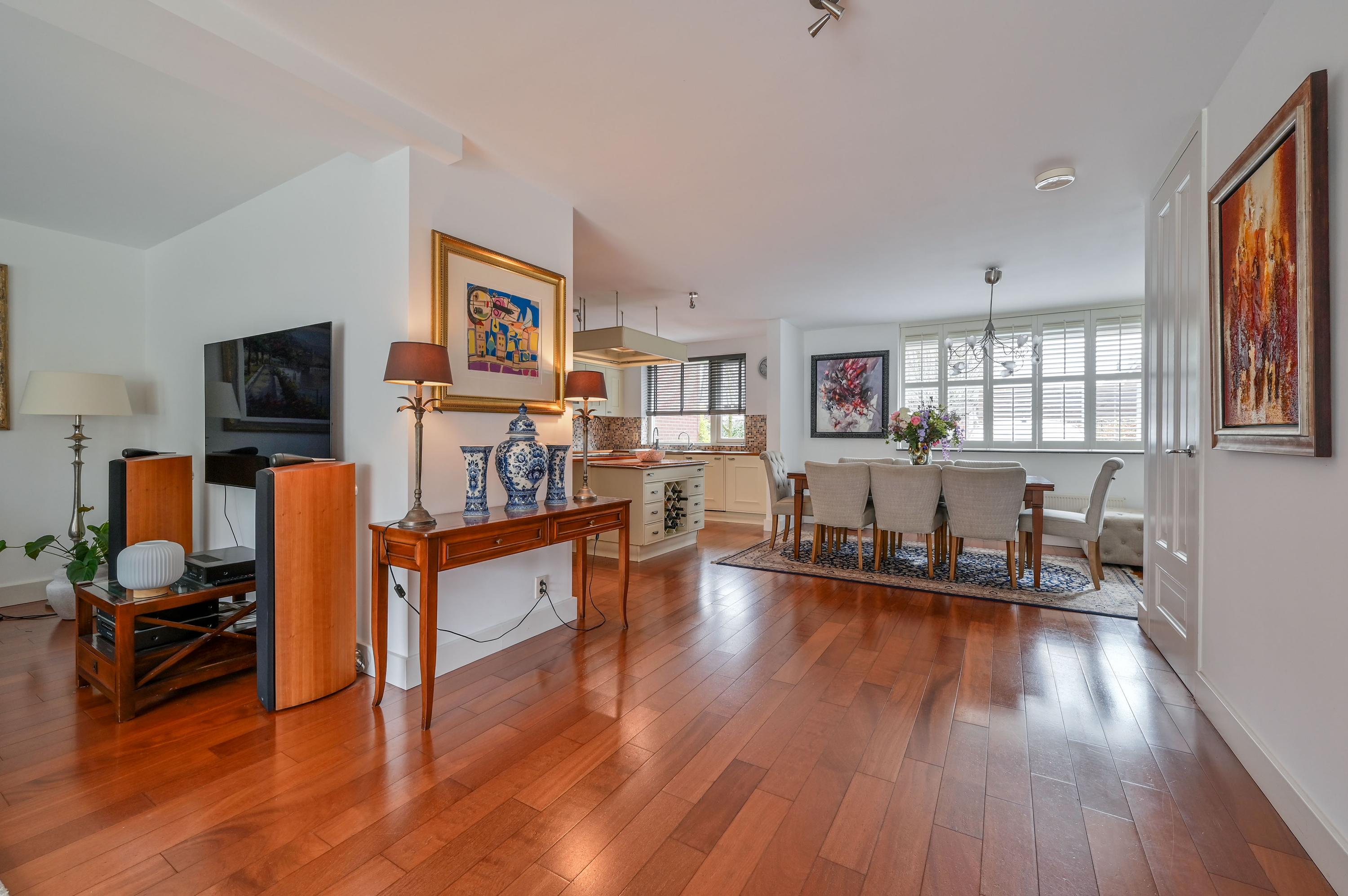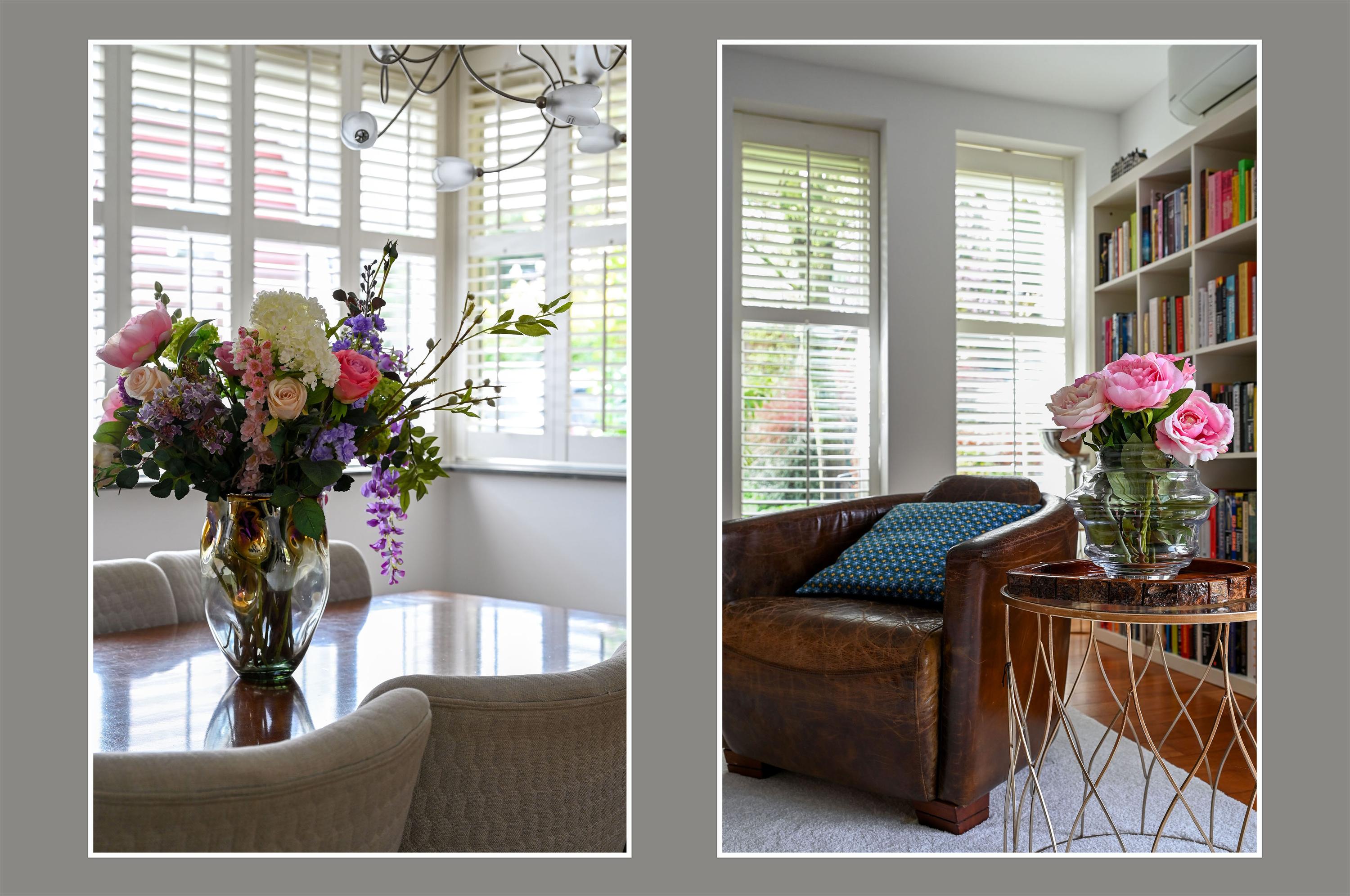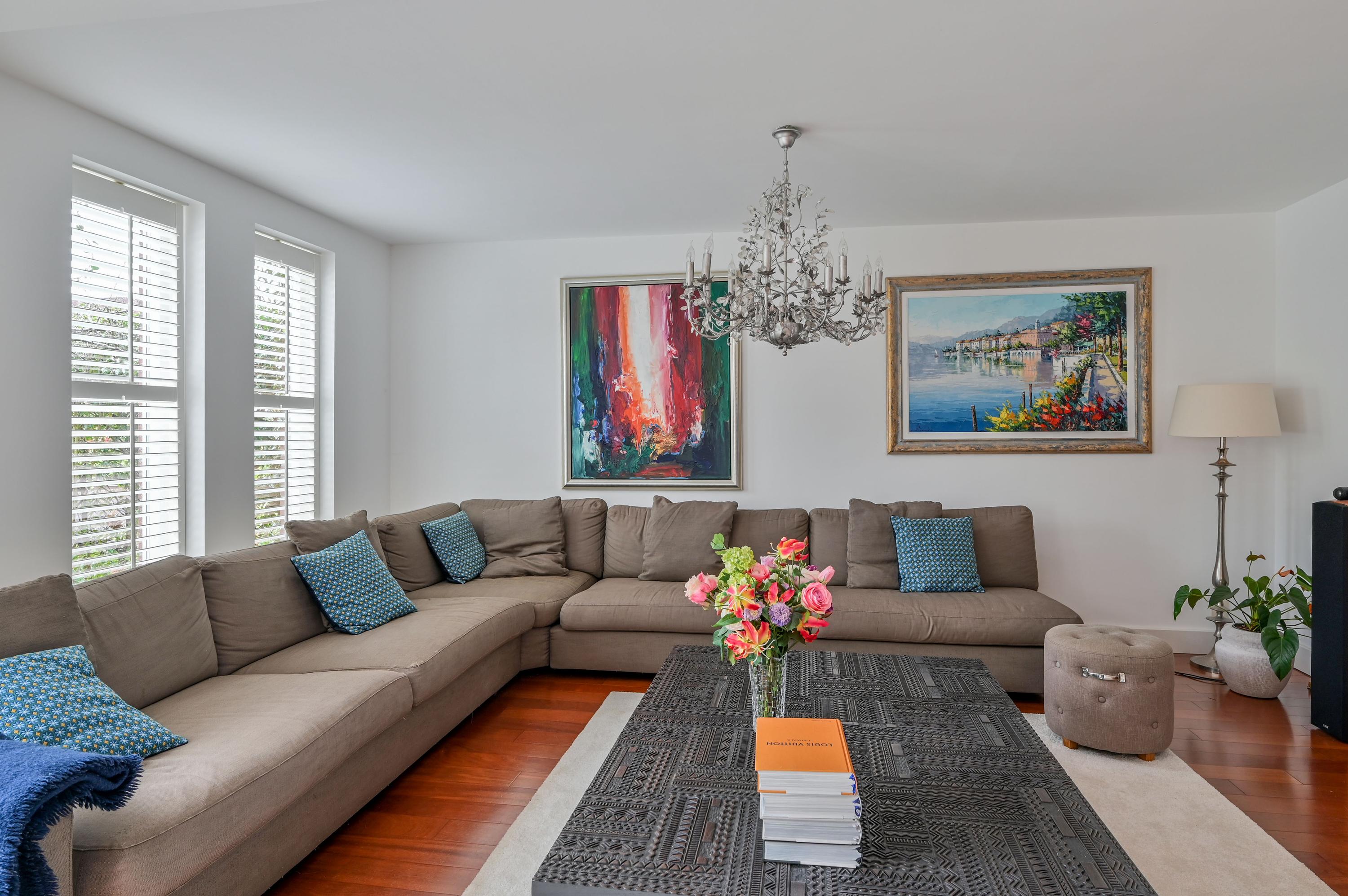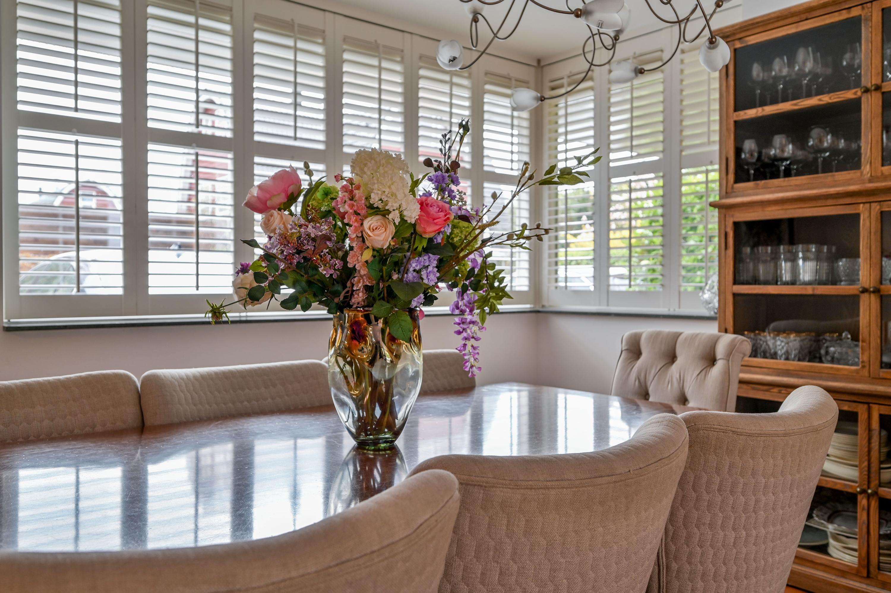 De L-vormige woonkamer met riante zithoek aan de achterzijde biedt prachtig uitzicht over de tuin en een brede schuifpui naar buiten. De royale zithoek en een een sfeervolle leeshoek met houtkachel maken het tot een plek om volledig tot rust te komen. Het grote zijraam biedt zicht op de zijtuin, terwijl shutters, sunscreens en airconditioning zorgen voor comfort in elk seizoen. De hele benedenverdieping is afgewerkt met een warme, luxe houten vloer.