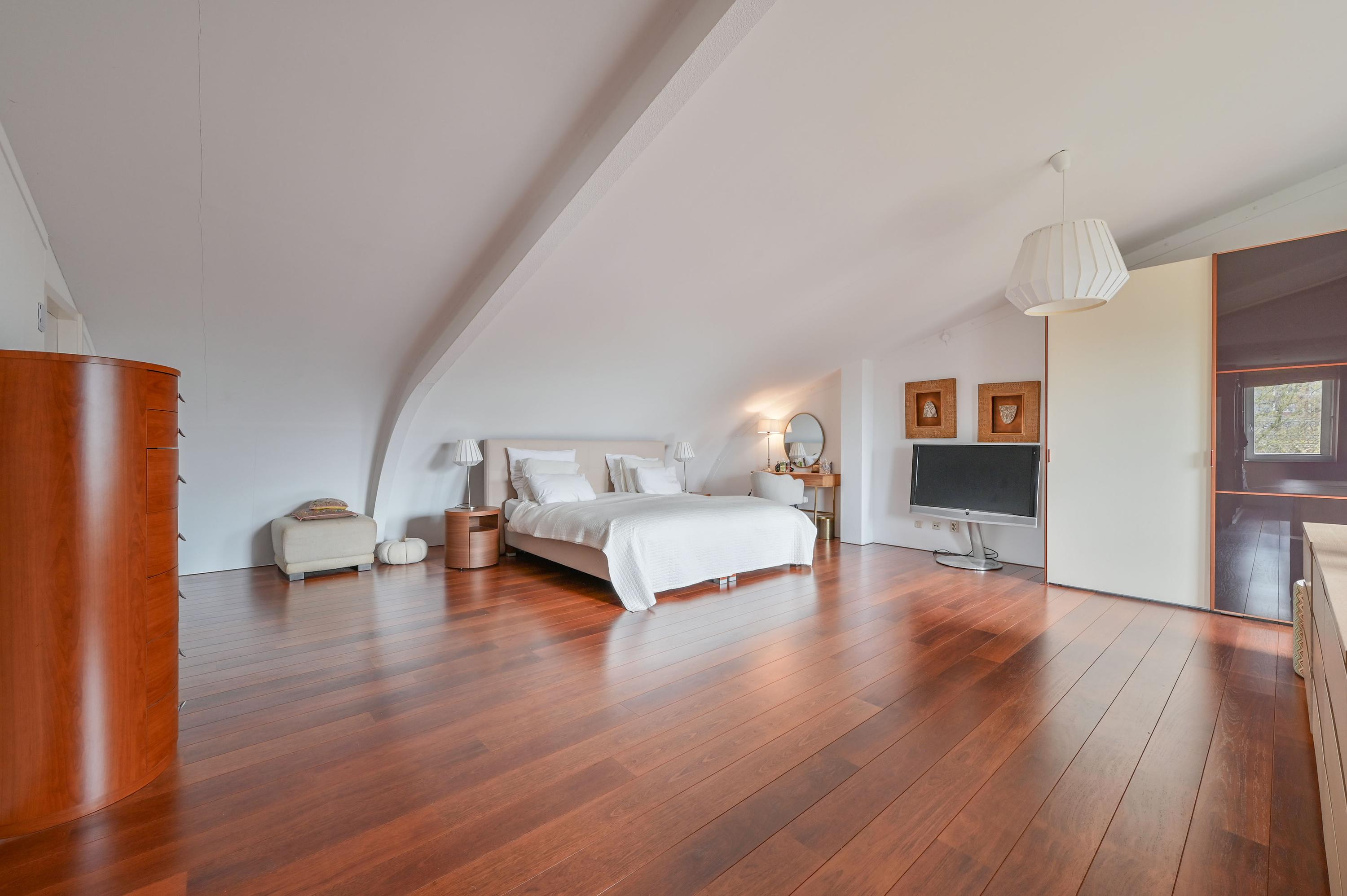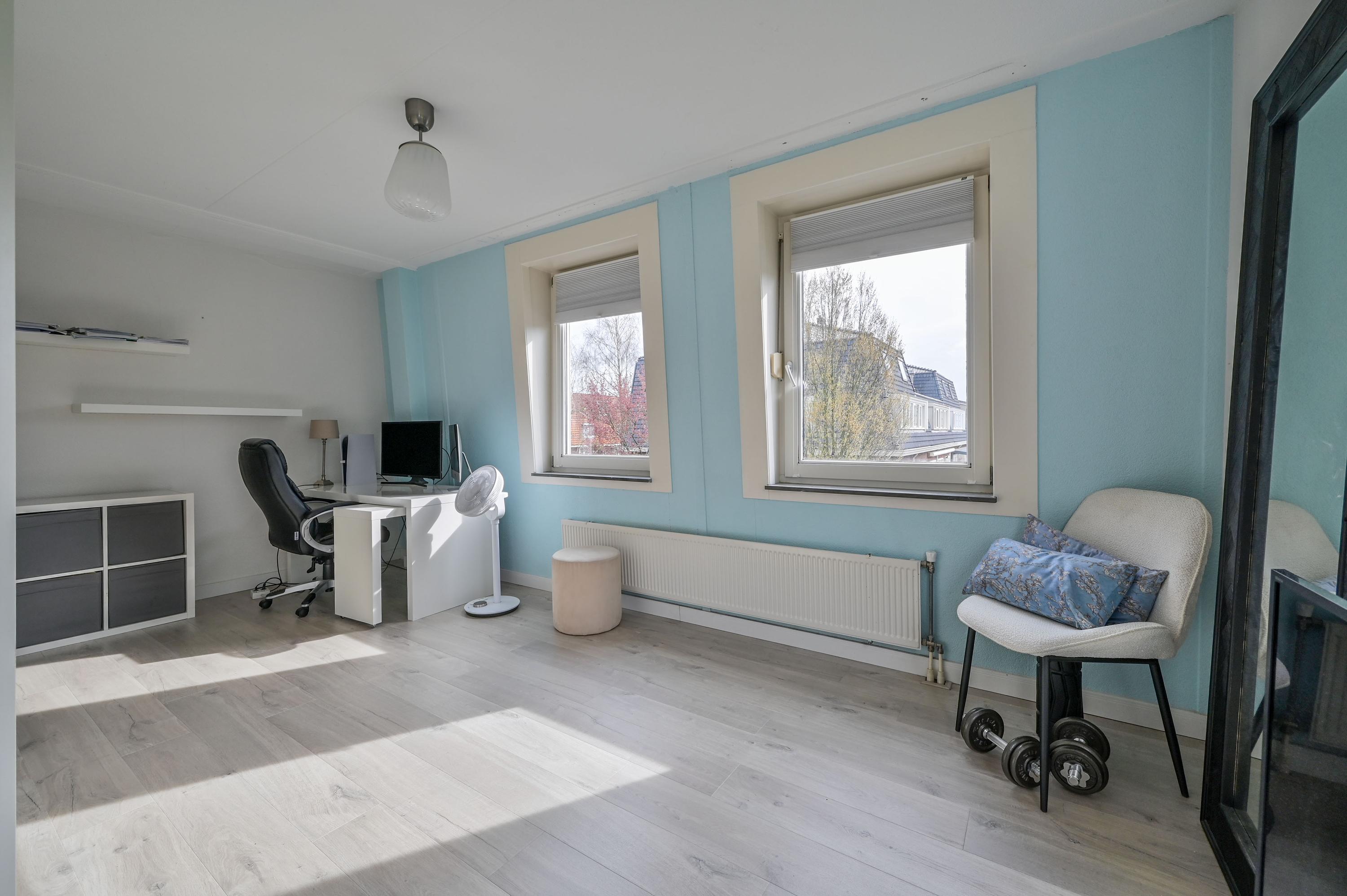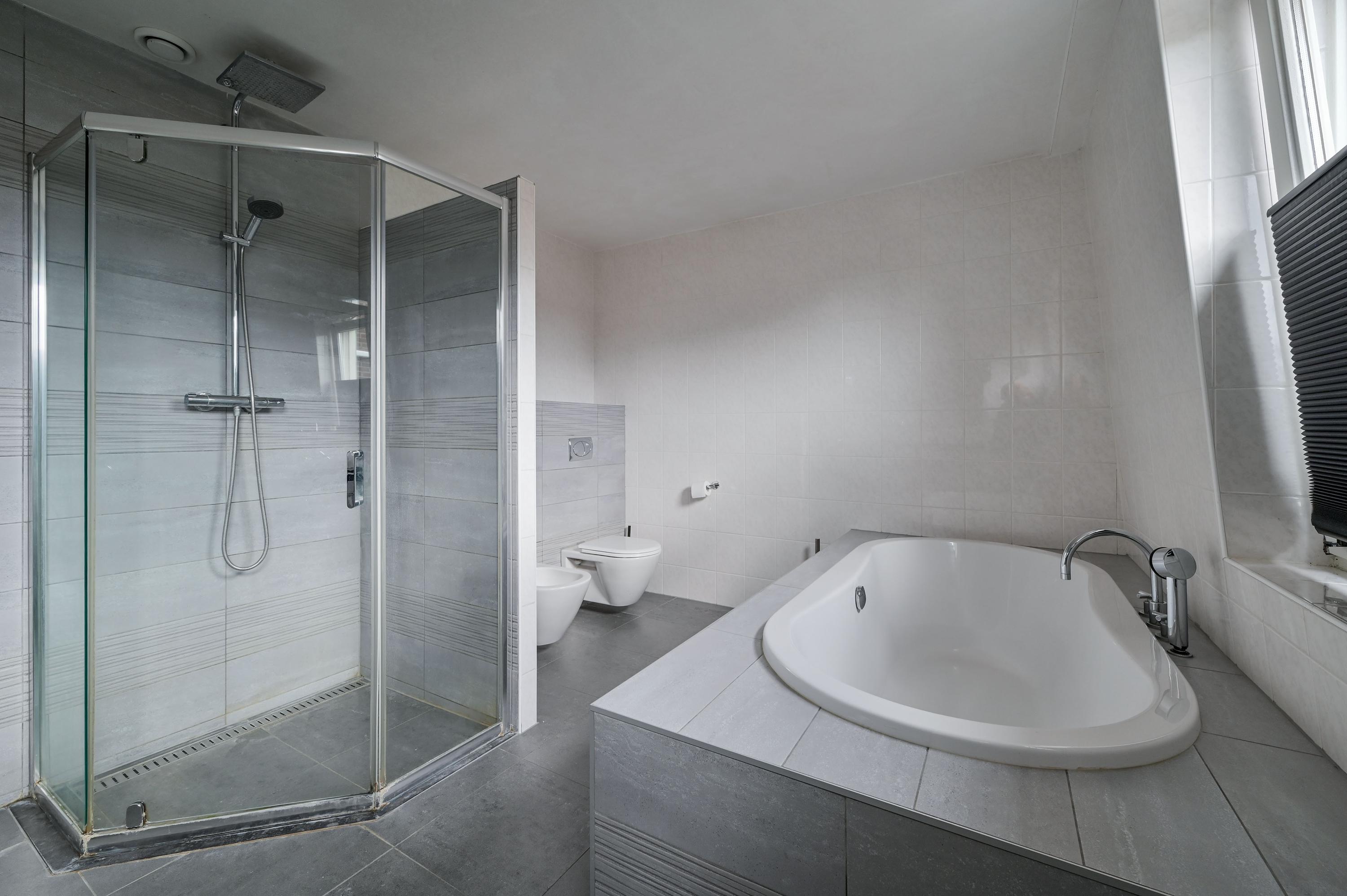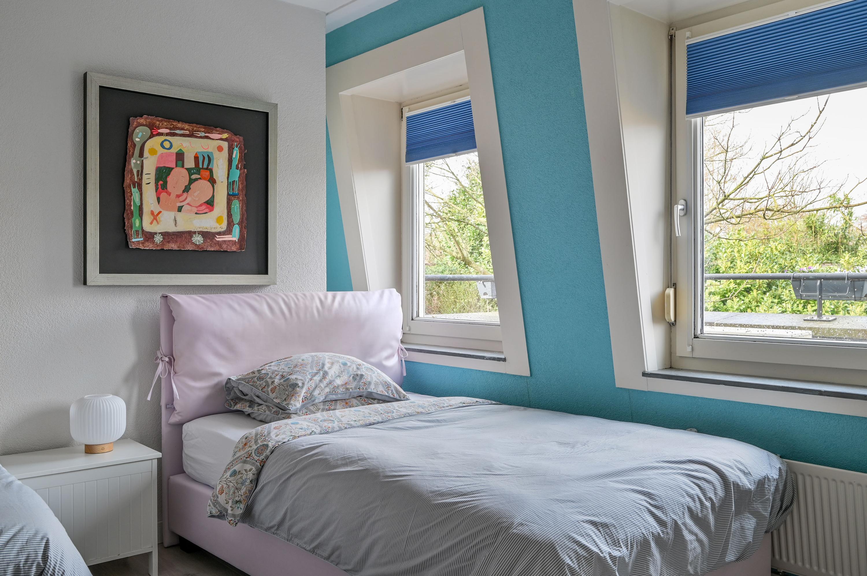 Via een open trap kom je op de tweede verdieping, waar de master bedroom een ware blikvanger is. Deze royale kamer biedt volop mogelijkheden voor een luxe en praktische indeling. De kamer beschikt over een open inloopkast met raam en uitzicht over de zijkant van de tuin, én een vaste kastenwand – beide van het Italiaanse merk Poliform – waardoor stijlvol en efficiënt opbergen gegarandeerd is. Twee ramen aan de voorzijde en het zijraam zorgen voor veel natuurlijk licht en zijn voorzien van sunscreens. Laminaat en airconditioning maken het geheel af. Deze royale verdieping biedt vanwege de grootte nog extra mogelijkheden om de indeling te veranderen met bijvoorbeeld twee zolderkamers. Daarnaast is er een ruime berging met CV-opstelling en mechanische ventilatie unit, ideaal voor extra opslag en praktische voorzieningen.