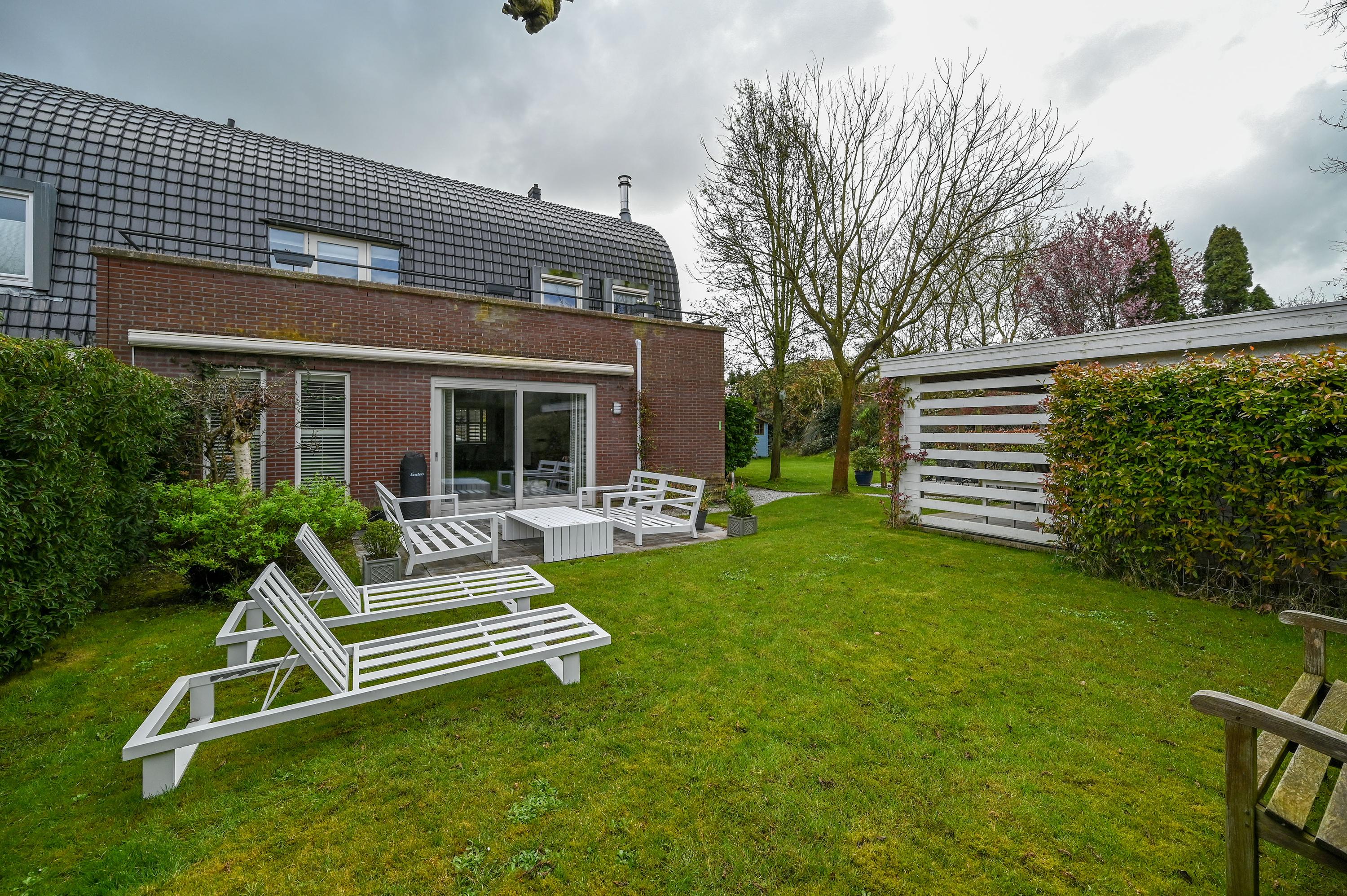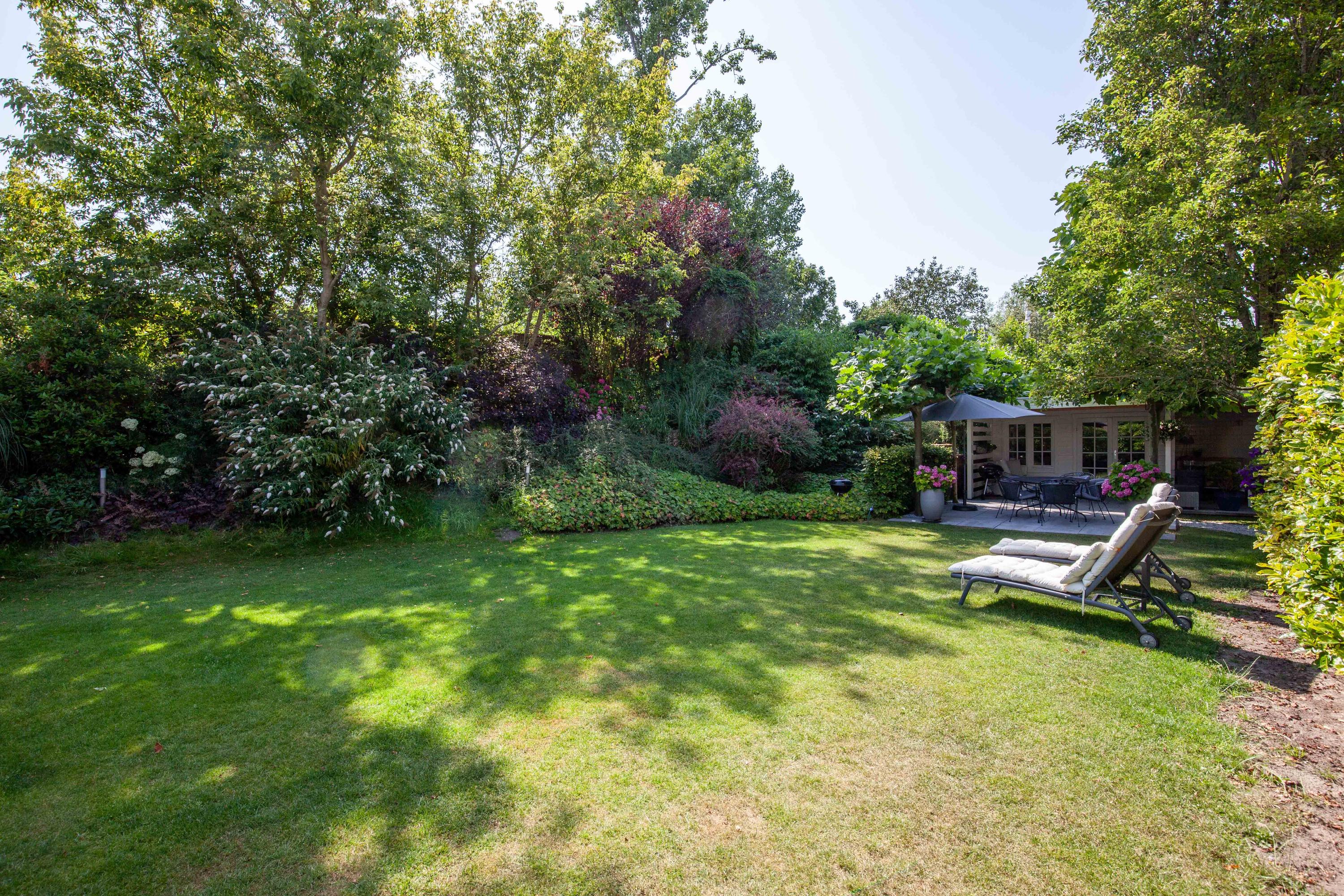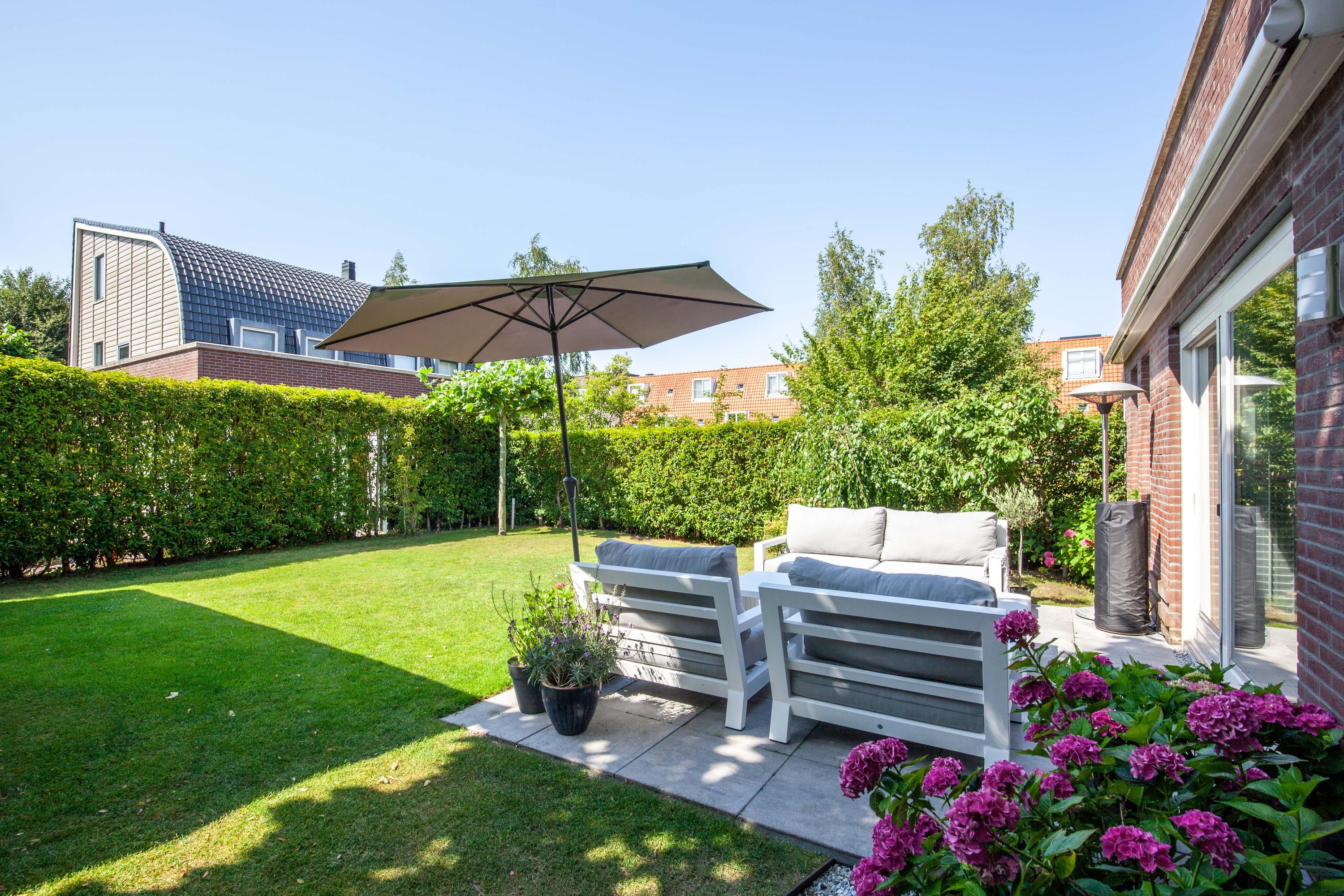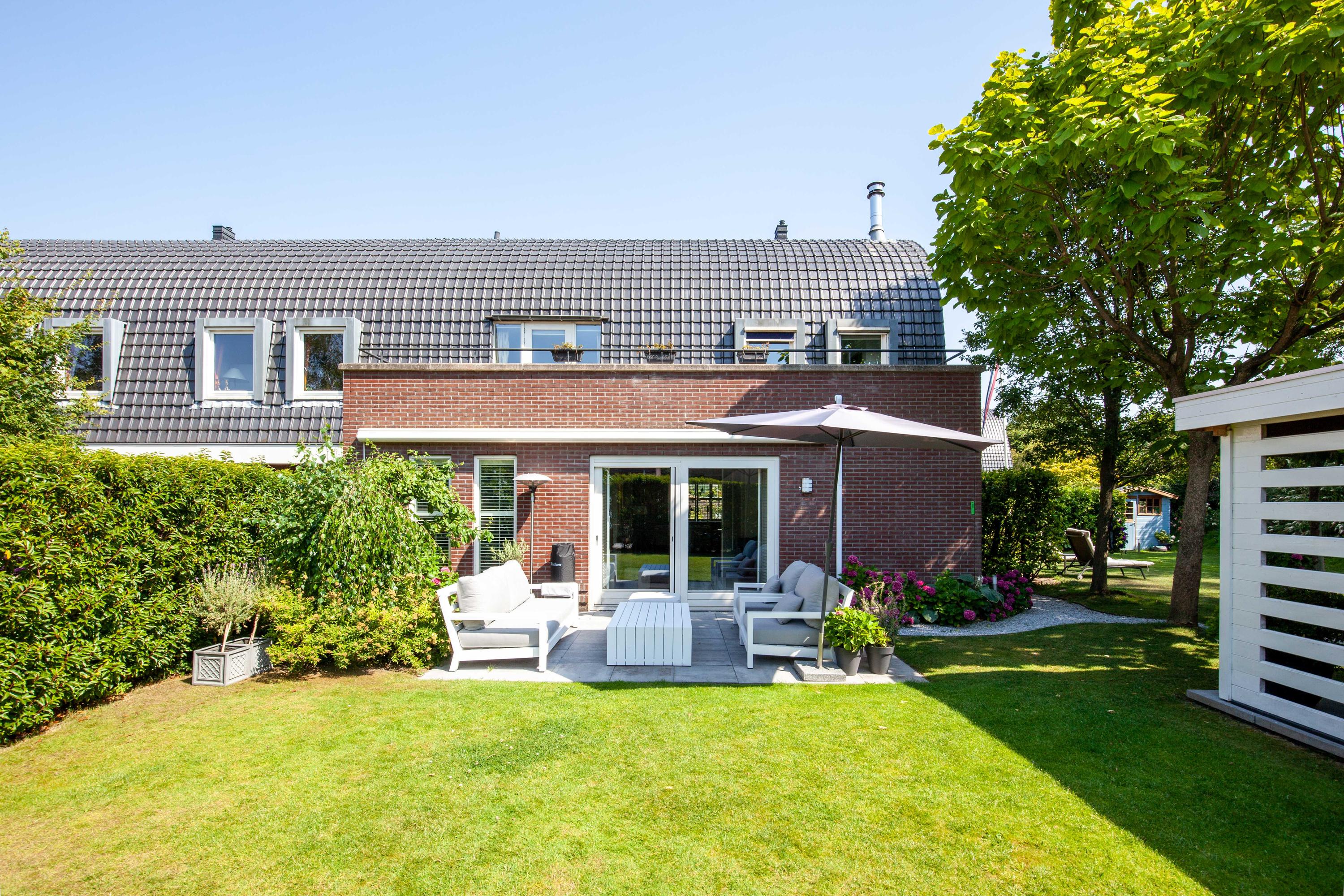 De prachtige tuin is een waar buitenparadijs, direct bereikbaar via de schuifpui in de woonkamer en via de zijkant van de woning via een fraai open hekwand. De tuin biedt veel privacy en geniet de gehele dag van zon, ideaal om volop van buiten te genieten. Aan de achterzijde van de woning ligt een ruim terras met een sfeervolle zithoek, compleet met een uitvalscherm over de gehele breedte van de woning, ideaal om van zowel zon als schaduw te genieten. Achterin de tuin staat een charmant tuinhuis met overkapping, perfect voor een eethoek met barbecue. Het tuinhuis is voorzien van een nette houten vloer, elektriciteit en water, waardoor het uitstekend te gebruiken is als werkruimte, hobbyruimte of voor opslag. Aansluitend aan de overkapping bevindt zich een extra terras met zitruimte, beschut door een natuurlijke overkapping van vier prachtige platanen, waardoor een idyllische plek ontstaat om te ontspannen of gasten te ontvangen.