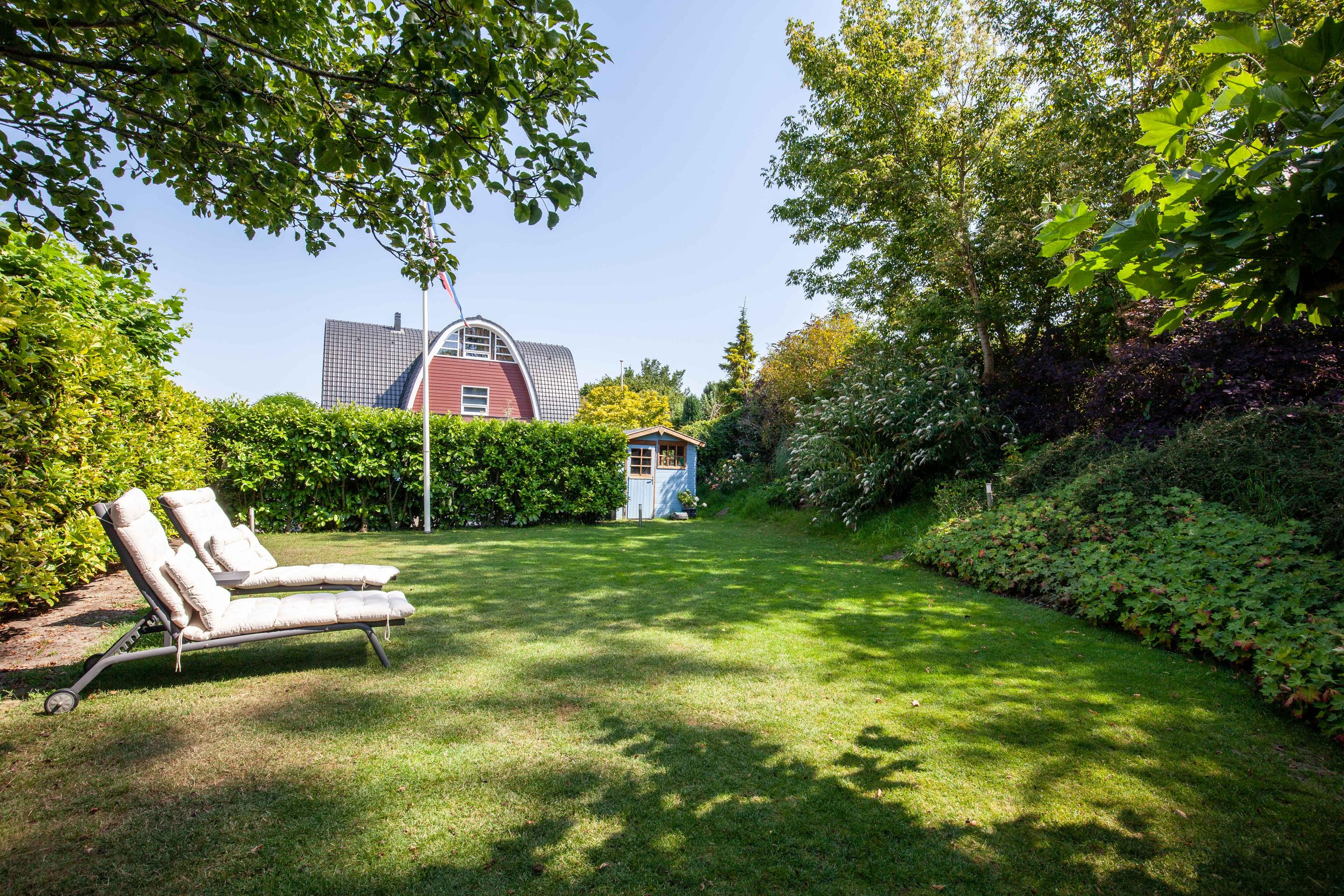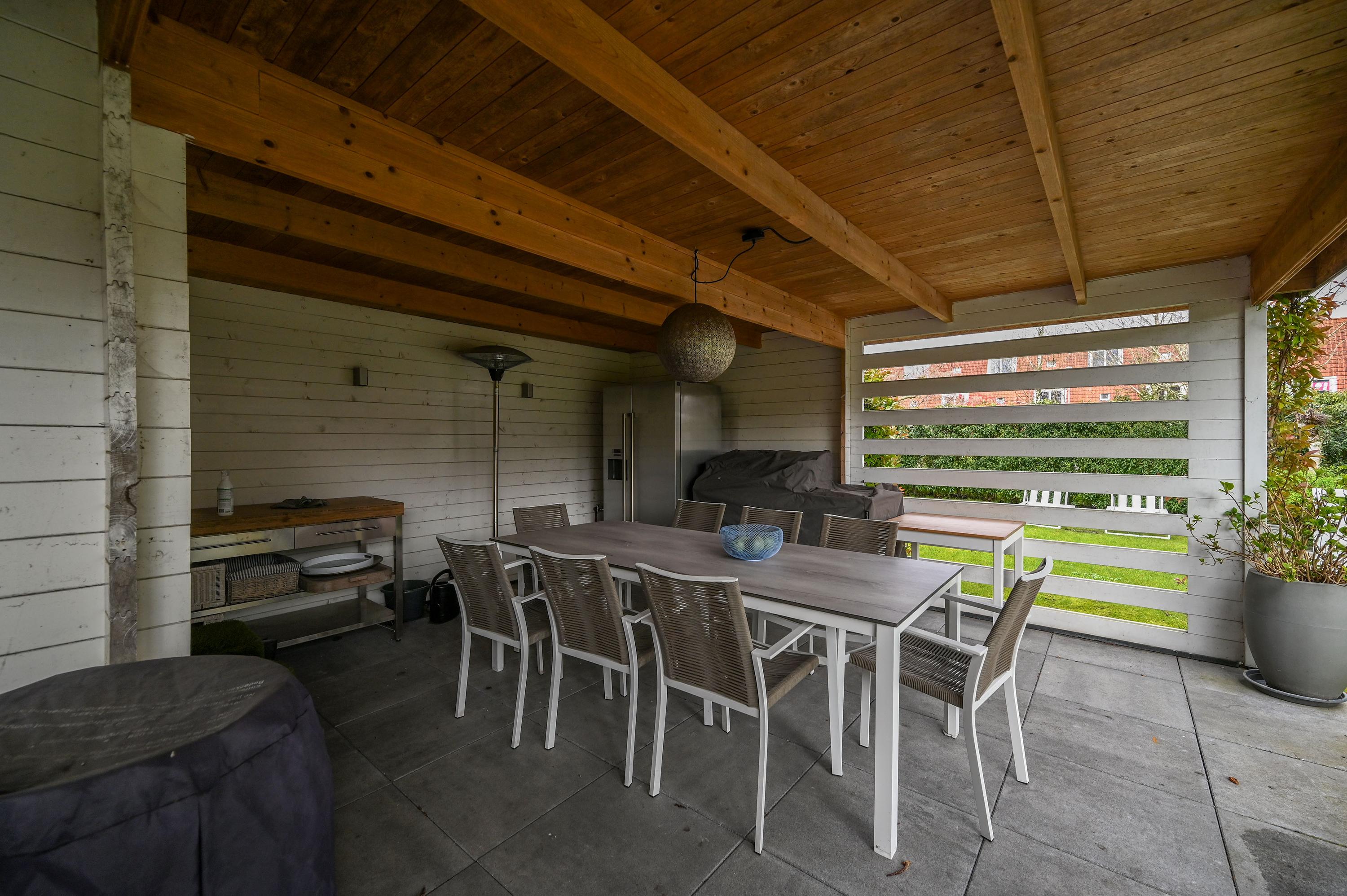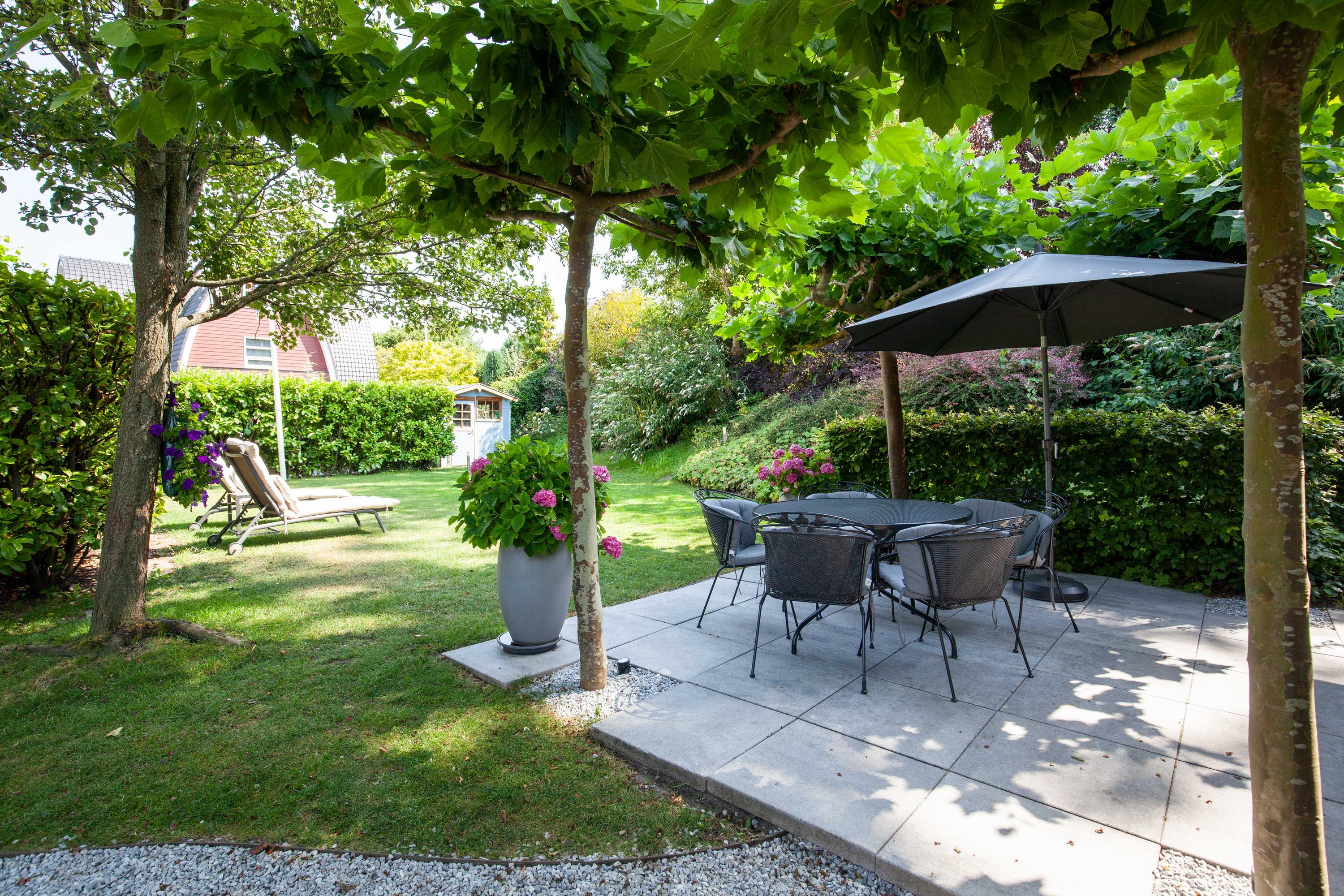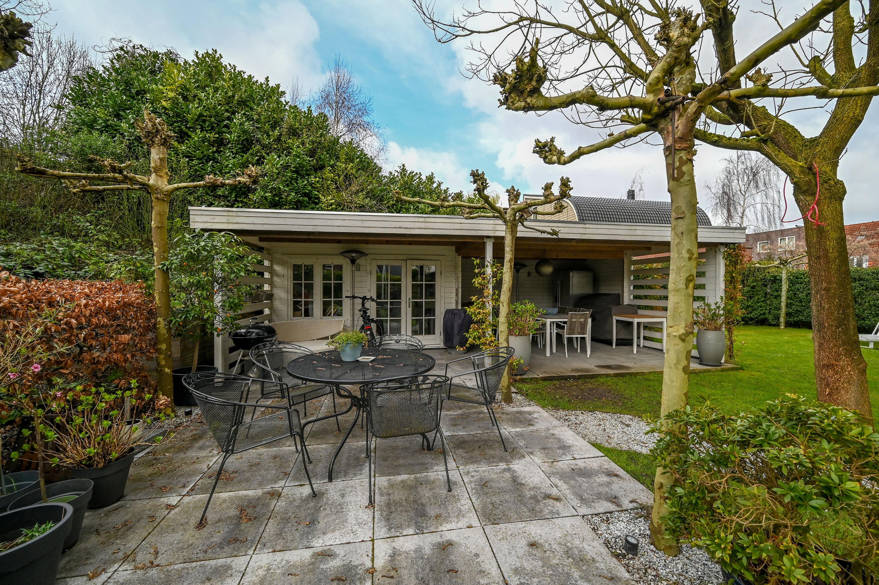 De prachtige tuin is een waar buitenparadijs, direct bereikbaar via de schuifpui in de woonkamer en via de zijkant van de woning via een fraai open hekwand. De tuin biedt veel privacy en geniet de gehele dag van zon, ideaal om volop van buiten te genieten. Aan de achterzijde van de woning ligt een ruim terras met een sfeervolle zithoek, compleet met een uitvalscherm over de gehele breedte van de woning, ideaal om van zowel zon als schaduw te genieten. Achterin de tuin staat een charmant tuinhuis met overkapping, perfect voor een eethoek met barbecue. Het tuinhuis is voorzien van een nette houten vloer, elektriciteit en water, waardoor het uitstekend te gebruiken is als werkruimte, hobbyruimte of voor opslag. Aansluitend aan de overkapping bevindt zich een extra terras met zitruimte, beschut door een natuurlijke overkapping van vier prachtige platanen, waardoor een idyllische plek ontstaat om te ontspannen of gasten te ontvangen.