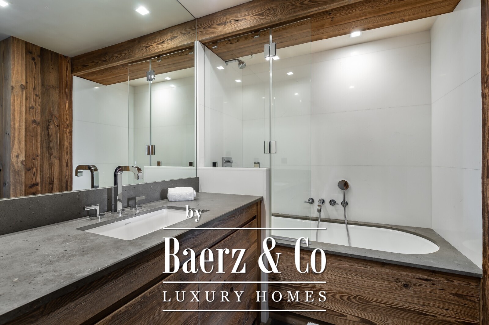 This magnificent apartment is located in a small luxury residence in the heart of the old village, one of the most sought-after areas of Val-d'Isère. This apartment offers spacious rooms, a beautiful living room with a fireplace, three double bedrooms, a dormitory, an indoor parking space, and two cellars. The high-quality materials and tasteful decor give it a warm atmosphere in a distinctly Alpine style. The apartment's south-facing aspect allows for sunshine throughout the day.