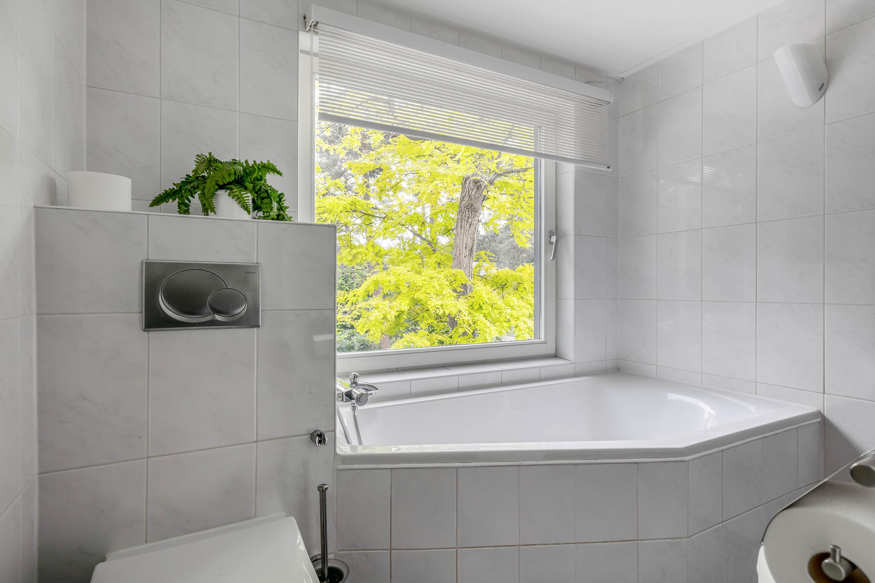 De tweede geheel betegelde badkamer, aansluitend gelegen aan slaapkamer 2, is compleet uitgerust met een inloopdouche, een heerlijk ligbad, een thermostaatkraan, een dubbele vaste wastafel met mengkraan en een doorstroomboiler.