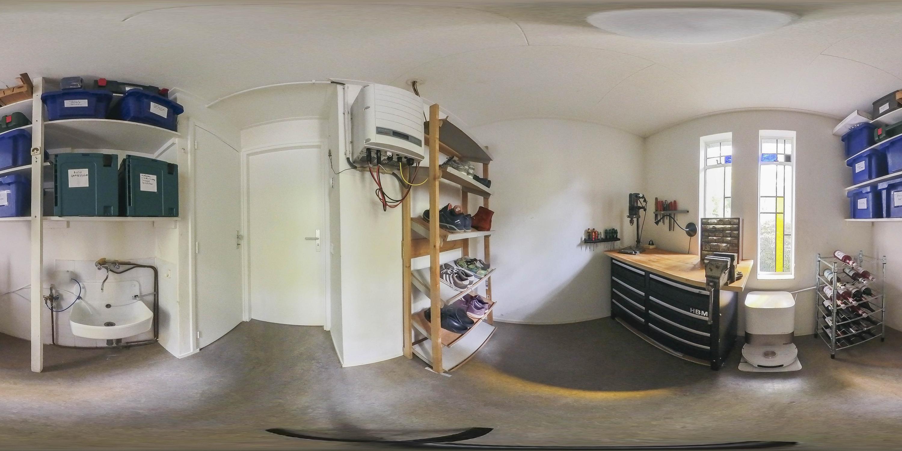Hier vind je niet alleen een handige berging met vernieuwde meterkast 3x25A en 12 groepen, uitstortgootsteen, plus de omvormer voor de zonnepanelen, maar ook een washok met aanrecht/spoelbak, plek voor wasmachine en -droger, opbergkasten en een geheel betegeld toilet met fonteintje en mechanische afzuiging.