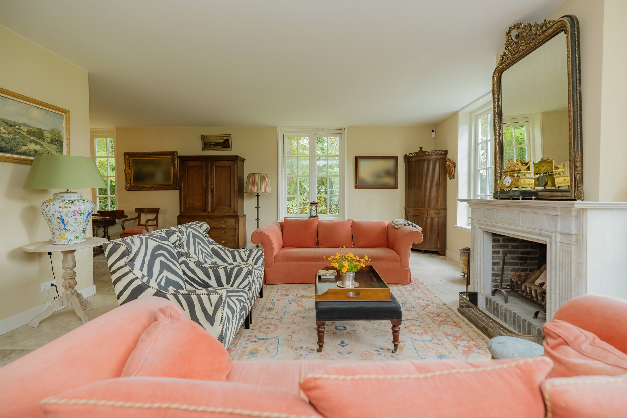 De royale, sfeervolle woonkeuken heeft een hoog plafond, een entresol, moderne inbouwapparatuur waaronder een Amerikaanse koelkast en een luxe AGA inductiefornuis met 4 ovens. Aansluitend is er een praktische bijkeuken. De dakramen en de houtkachel maken de keuken tot een fijne, warme plek om te koken en te eten. Vanuit de keuken loopt u zo de veranda op, waar een houtkachel ervoor zorgt dat u het hele jaar kunt genieten van het buitenleven.