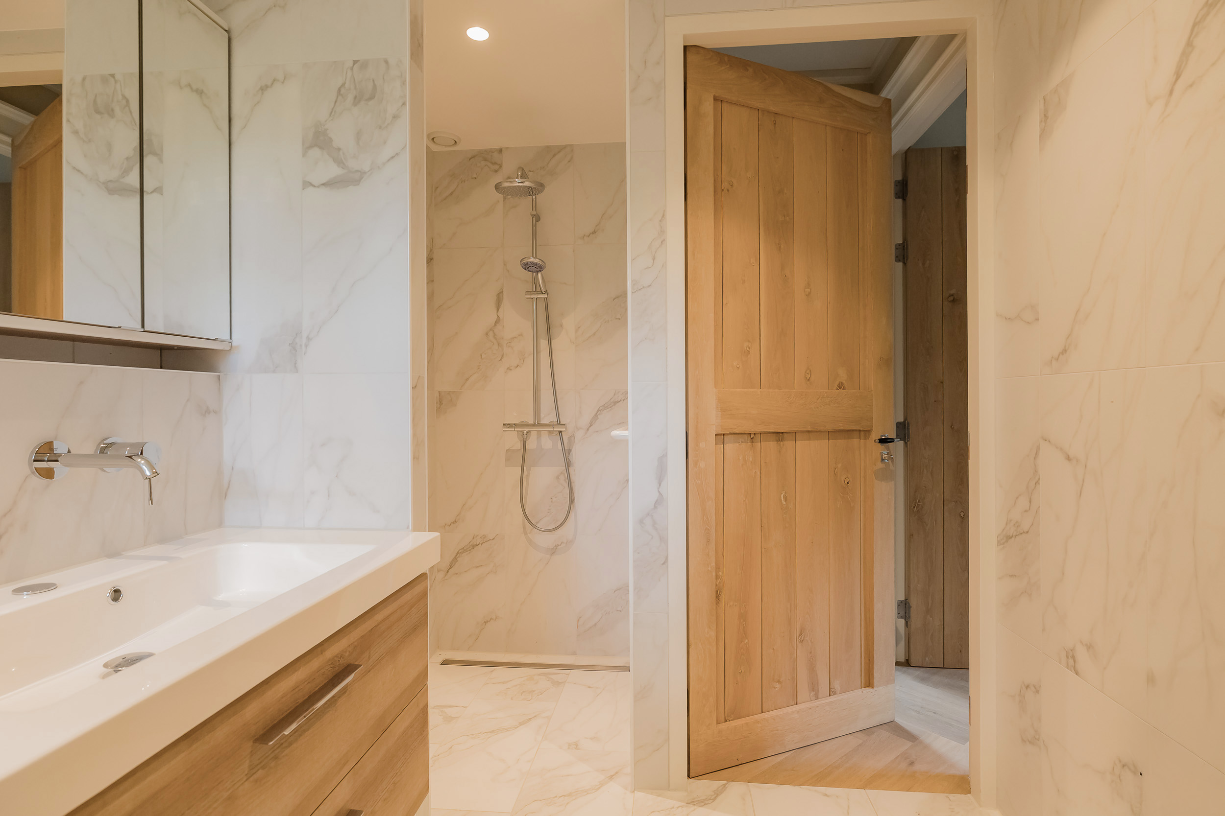 De bovenverdieping heeft een ruime overloop met dakramen voor extra licht. De royale hoofdslaapkamer beschikt over een slim geplaatste kleedkamer en een eigen luxe badkamer met ligbad, inloopdouche, groot wastafelmeubel, een toilet en een urinoir. Daarnaast zijn er nog twee ruime slaapkamers en een tweede badkamer, perfect voor gezin of gasten. Via de overloop is de entresol bereikbaar welke ook gebruikt kan worden als logeerkamer en dakkapellen zorgen op de verdieping voor extra ruimte en lichtinval. Bovendien is er nog een vliering.