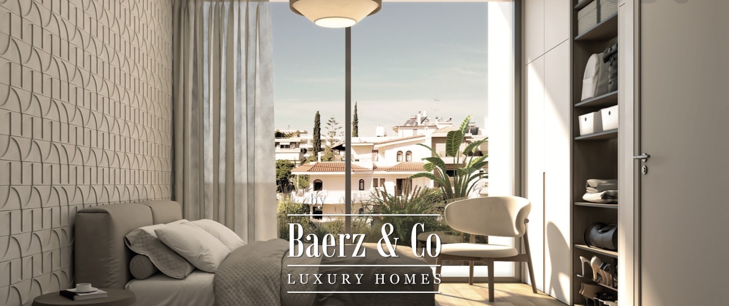 Het appartement beslaat twee zorgvuldig vormgegeven woonlagen, met drie royaal bemeten slaapkamers en vier tot in detail afgewerkte badkamers. Luxe, hoogwaardige materialen geven elk oppervlak een ingetogen elegantie, terwijl grote raampartijen het interieur laten baden in natuurlijk licht, wat de open, luchtige sfeer versterkt en een panoramisch uitzicht biedt op de Egeïsche Zee en de stadslichten.