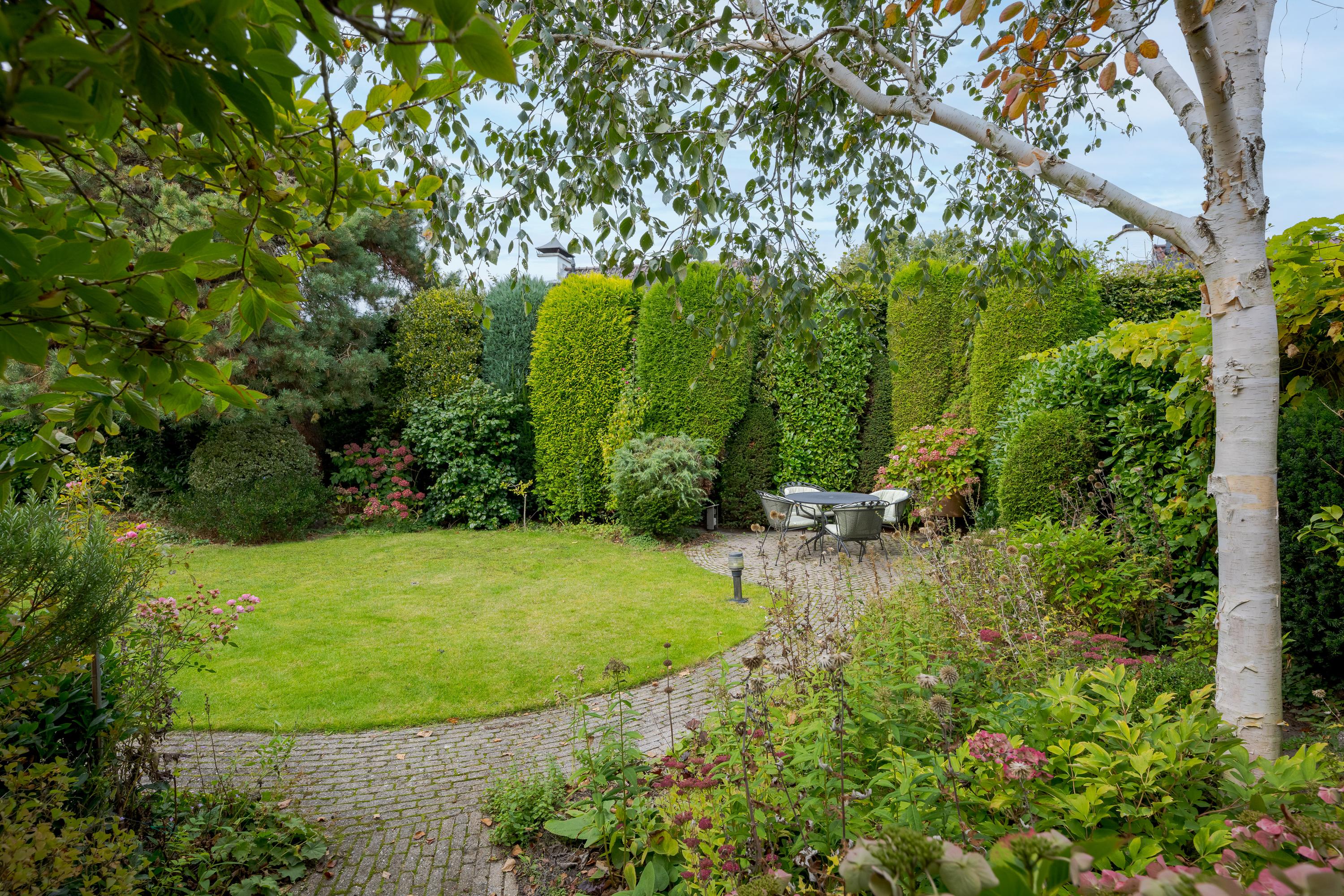 De fraai aangelegde tuin rondom biedt diverse terrassen en zithoeken, waar u de hele dag kunt kiezen tussen zon of schaduw. De volwassen beplanting zorgt voor volledige privacy en een groen uitzicht het hele jaar door.