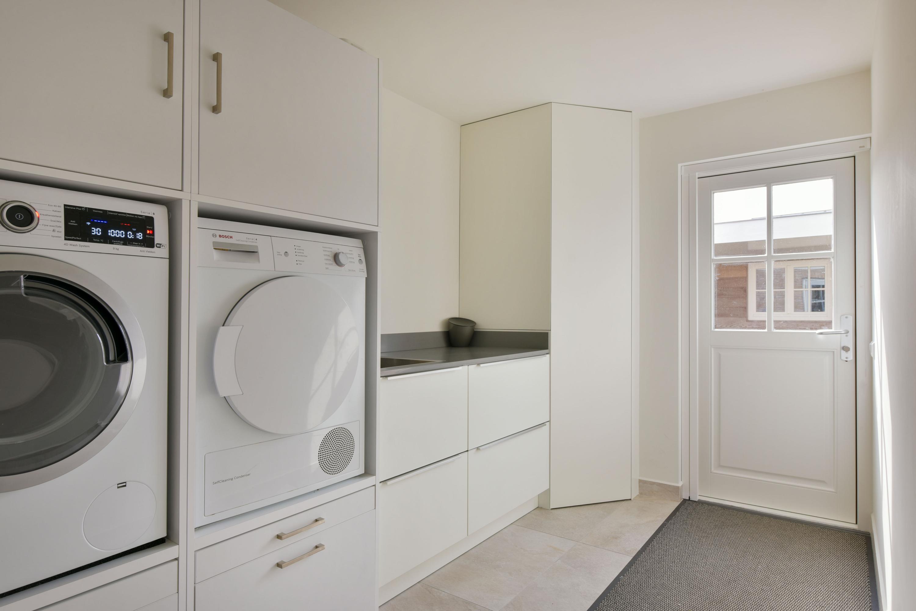 Een aparte ruimte voor de wasmachine en de wasdroger, een klein keukenblok en de netjes weggewerkte CV-installatie van 2020 maken de begane grond compleet. Vanuit deze bijkeuken heb je direct toegang tot de tuin.