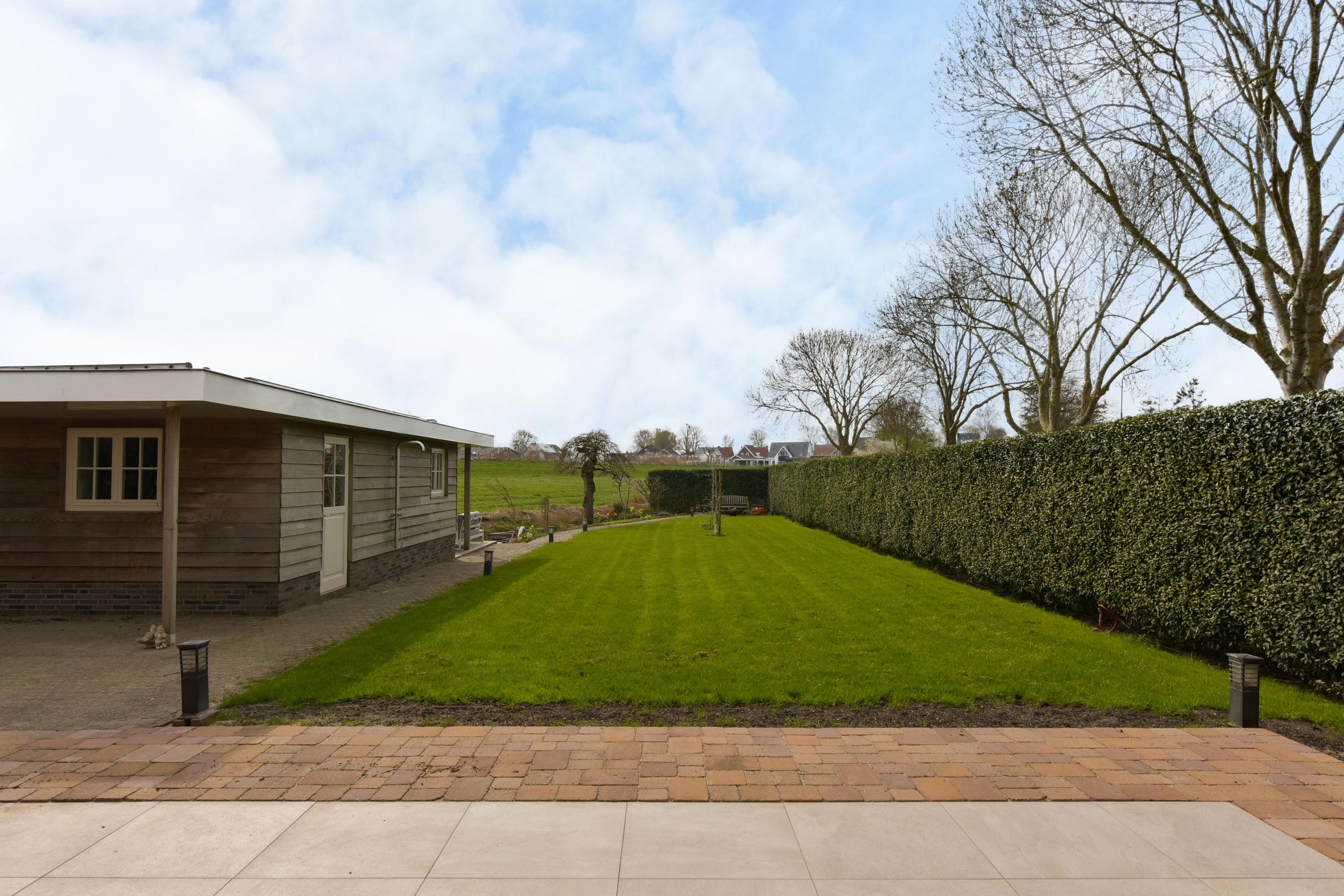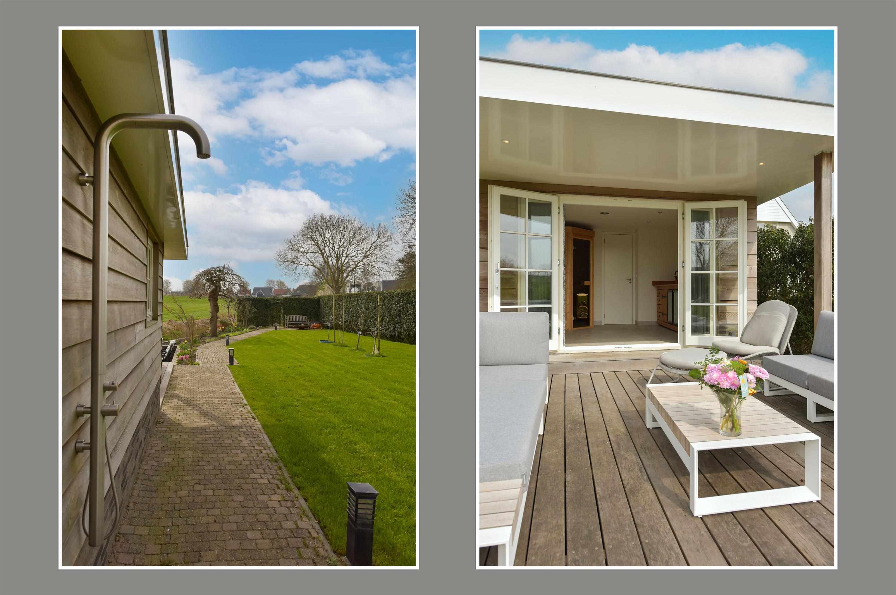 Het bijgebouw biedt bijzonder veel bergruimte en is zelfs voorzien van vloerverwarming. Aan de voorzijde een praktische berging waar ook de omvormer hangt van de PV installatie. Aan de achterzijde bevindt zich een luxe relaxruimte met sauna met een biokachel zodat er gekozen kan worden tussen een Finse sauna, een stoom sauna, kruidensauna en een geurensauna, regendouche, toilet en een houten keukenblok met twee horeca koelkasten, een plek waar ontspanning centraal staat. Het lager gelegen, aangrenzende terras biedt een prachtig uitzicht over het water en het omliggende groen en nodigt uit tot lange, ontspannen avonden. Achterin de tuin vind je diverse fruitbomen, waaronder een pruimenboom en een walnotenboom, en een volledig uitgeruste moestuin met water en elektriciteit. Door de gehele tuin is sfeervolle verlichting aangebracht en via een praktische achterom is de tuin ook buitenom bereikbaar. Een fantastische tuin waarin je kunt relaxen, kinderen eventueel een plek kunnen vinden om uitgebreid te spelen, waar je een enorm gevoel van ruimte en vrijheid in ervaart, een unieke plek! Vrijwel de gehele woning is bovendien voorzien van plissé horren, wat bijdraagt aan het comfort in de warmere maanden.