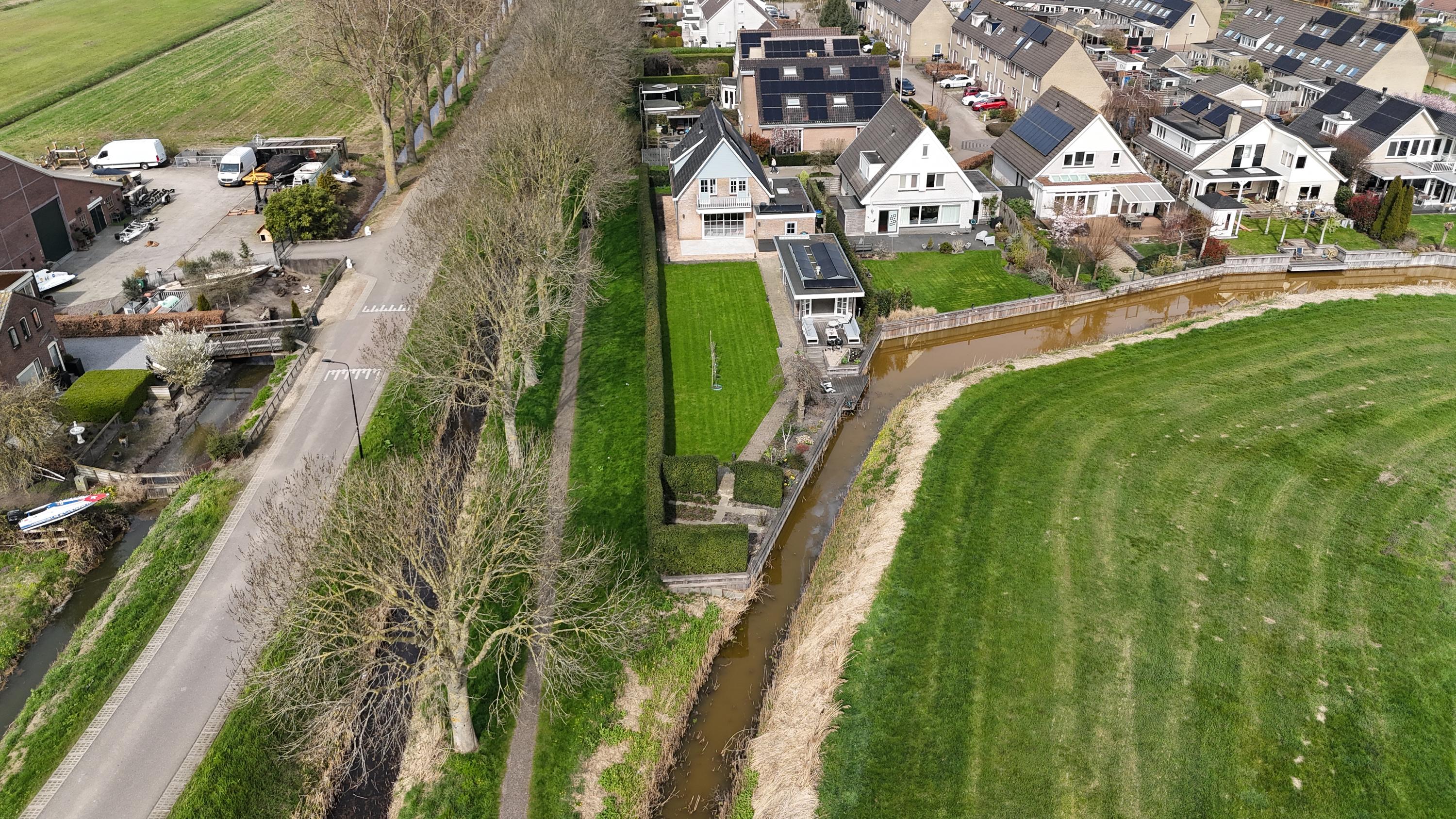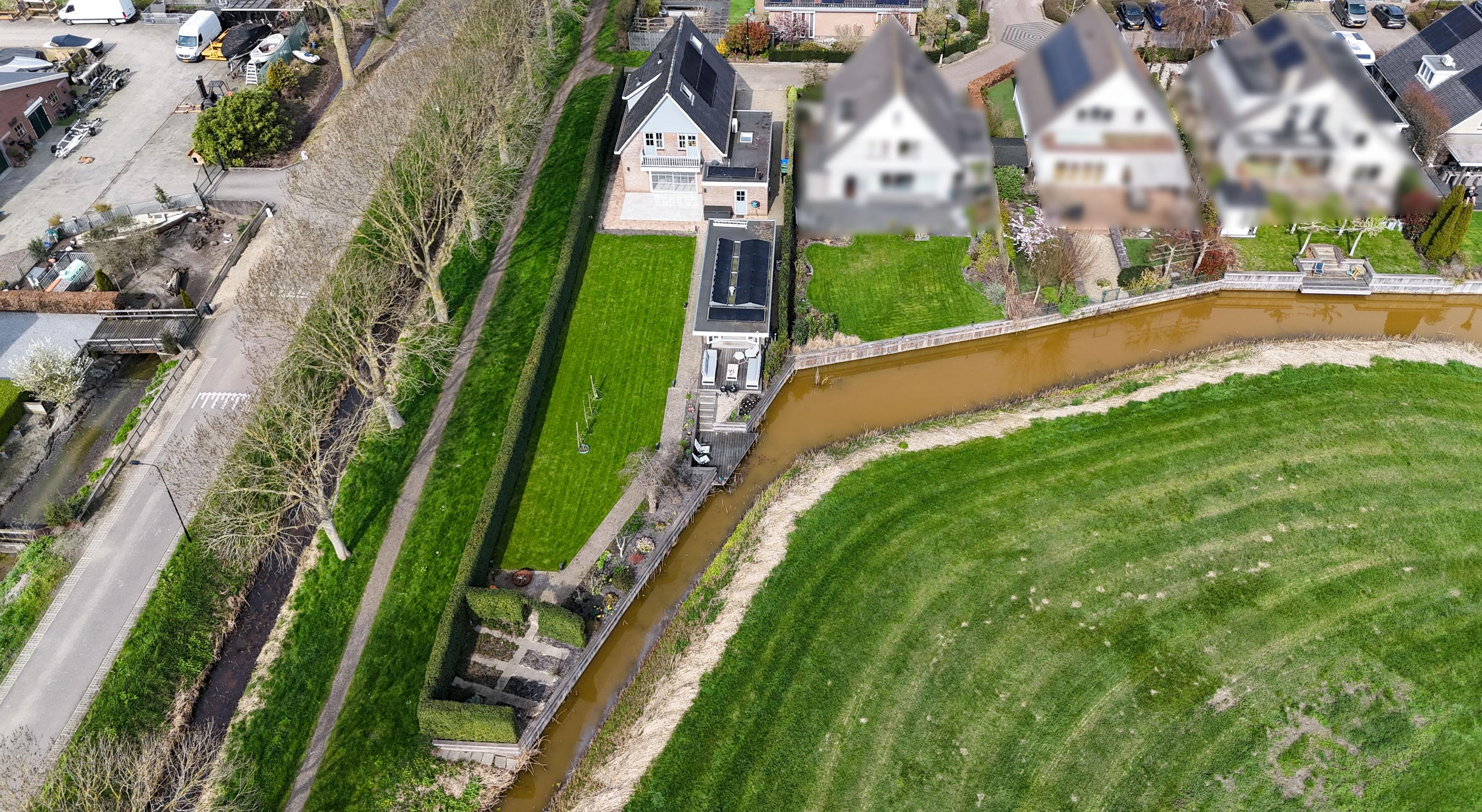 De tuin rondom de woning is met zorg aangelegd en perfect onderhouden. Dankzij een geavanceerd sproei- en druppelsysteem, gevoed door een pomp vanuit de sloot, blijft het groen in optimale conditie. Het ruime terras op het zuiden, voorzien van grote keramische tegels die naadloos aansluiten bij de vloer binnen, vormt een heerlijke plek om te genieten van zonnige dagen. Het elektrische zonnescherm is eenvoudig via een app te bedienen.