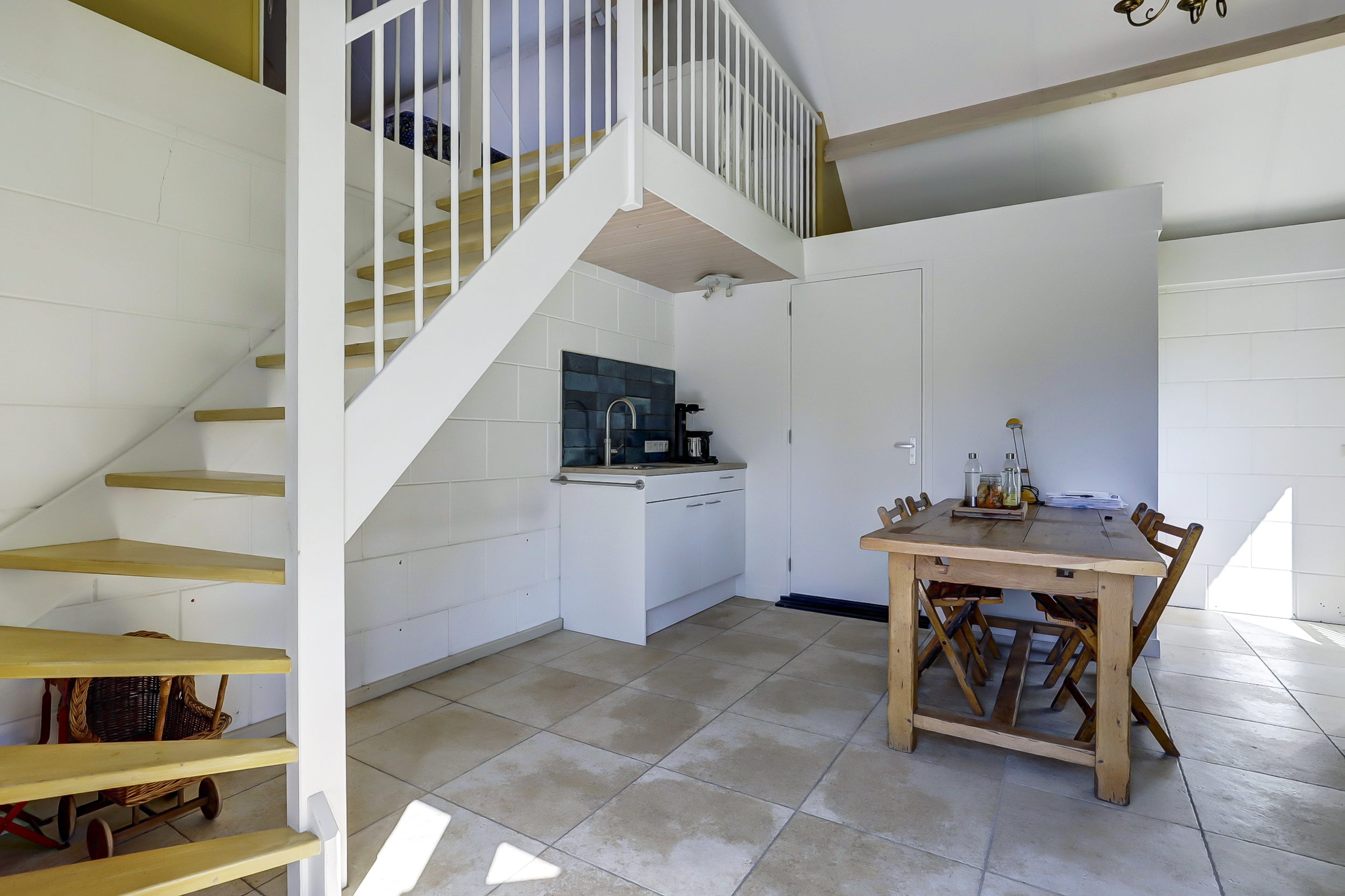 In de tuin staat de vrijstaande B&B, compleet met een eigen ontbijtkeuken (incl. Quooker) en badkamer met douche, wastafel en WC. Ook hier is een afgescheiden wijnklimaatkast aanwezig, dus u heeft in dit huis twee uitstekende mogelijkheden om uw wijncollectie op peil te houden.