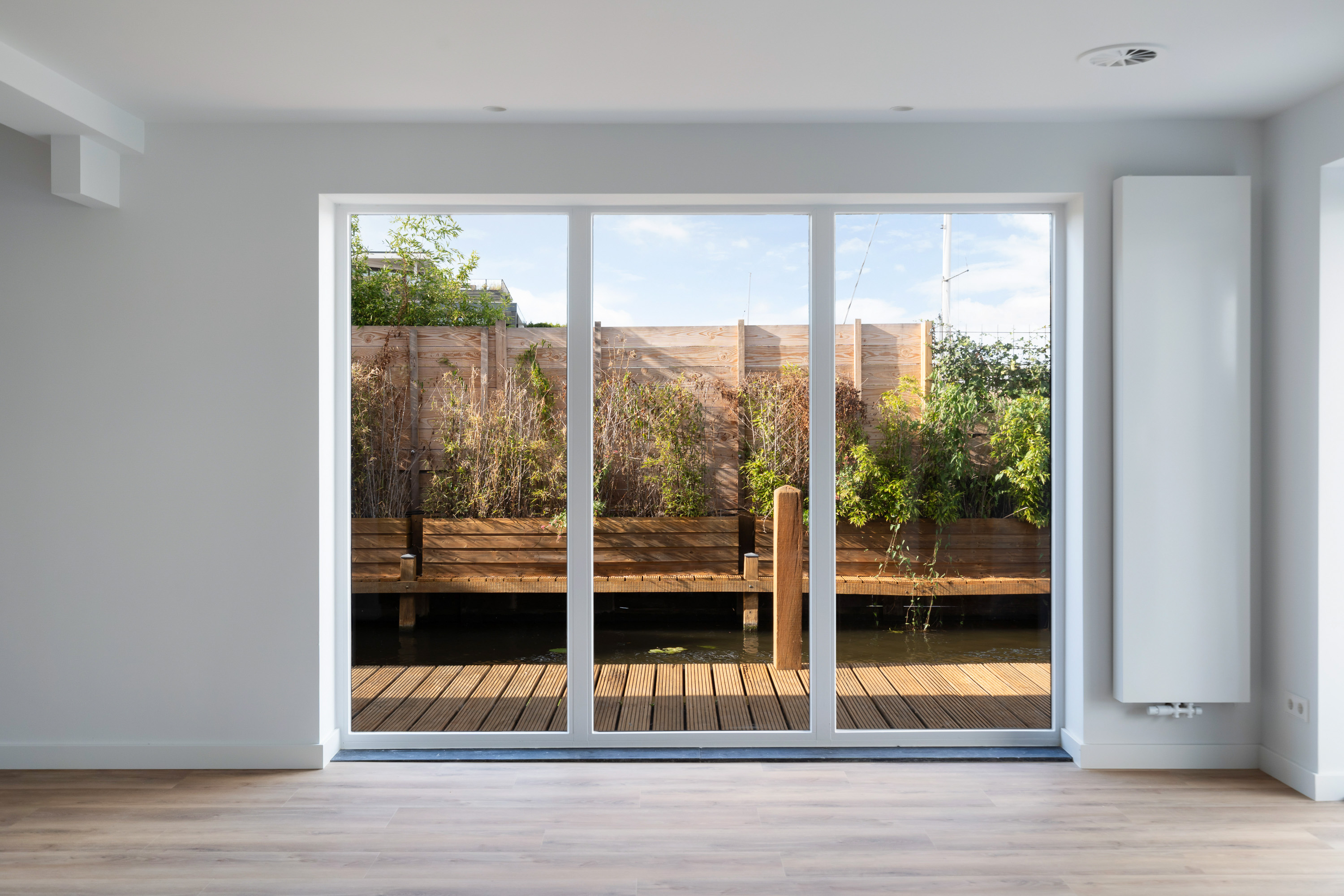 De woonkamer is een licht en royaal geheel, met een prachtig uitzicht over het water. De grote ramen zorgen voor veel daglicht en brengen buiten naar binnen. Onze stylist helpt u graag met het inrichten van deze ruimte en alle overige ruimtes. Wij assisteren u ook graag met het schetsen van uw droomkeuken.