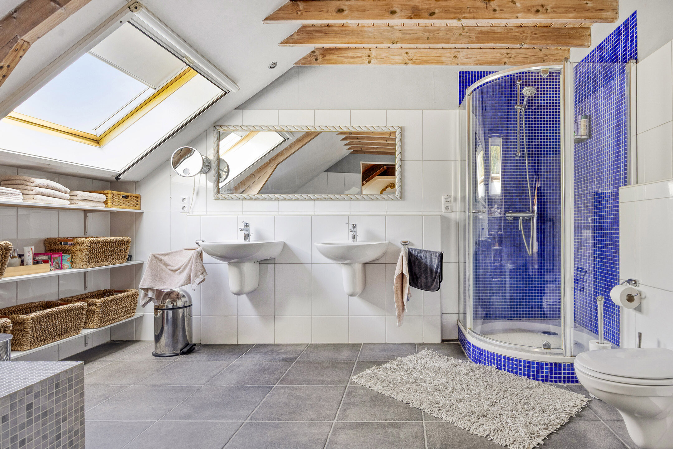 betegelde badkamer en-suite voorzien van een ligbad, douchecabine, 2e wandcloset, bidet, een dubbele wastafel en vloerverwarming als gestuurd vanuit de CV;